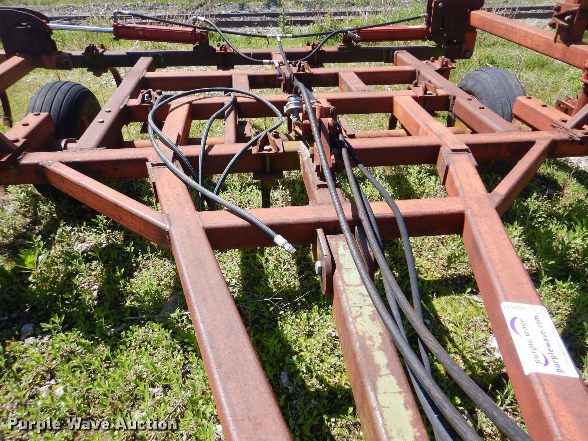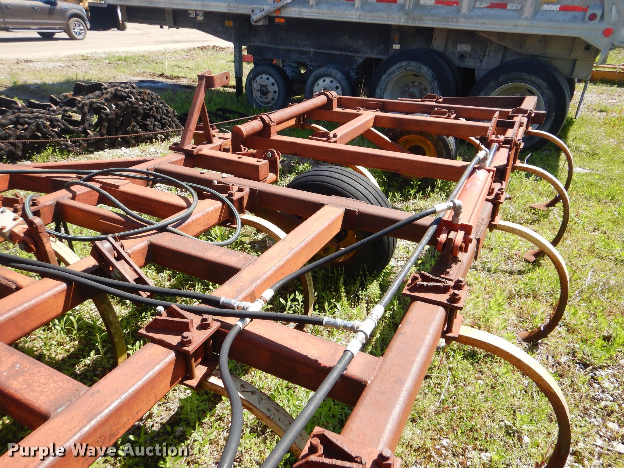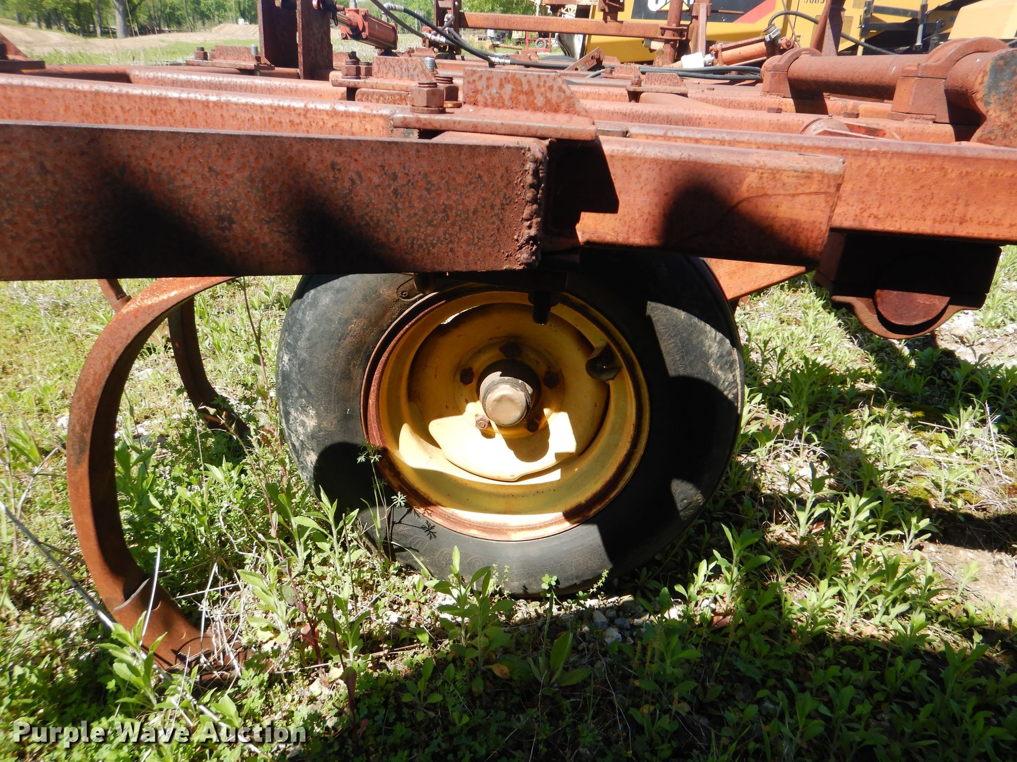 Purple Wave is selling a used Tillage Other in Oklahoma. This item is a Sunflower chisel with the following: 28' overall width, Hydraulic lift and fold, Three bar tine harrow, (22) shanks, 11L-15SL tires