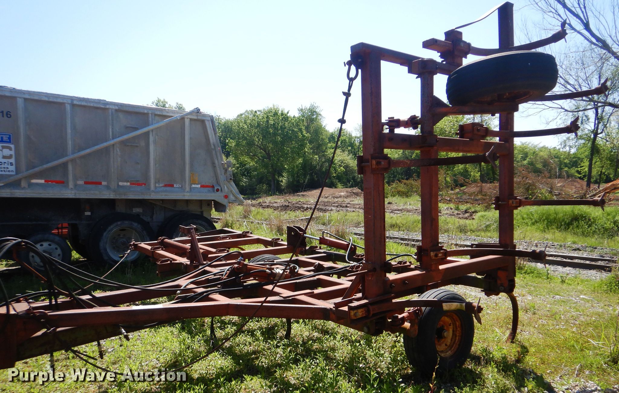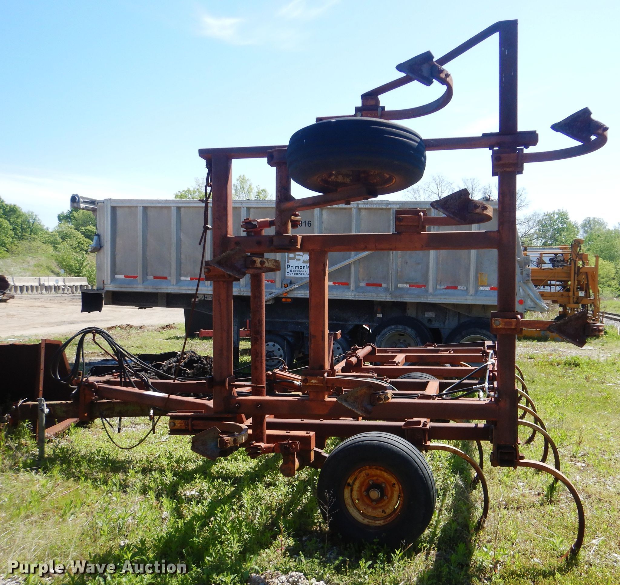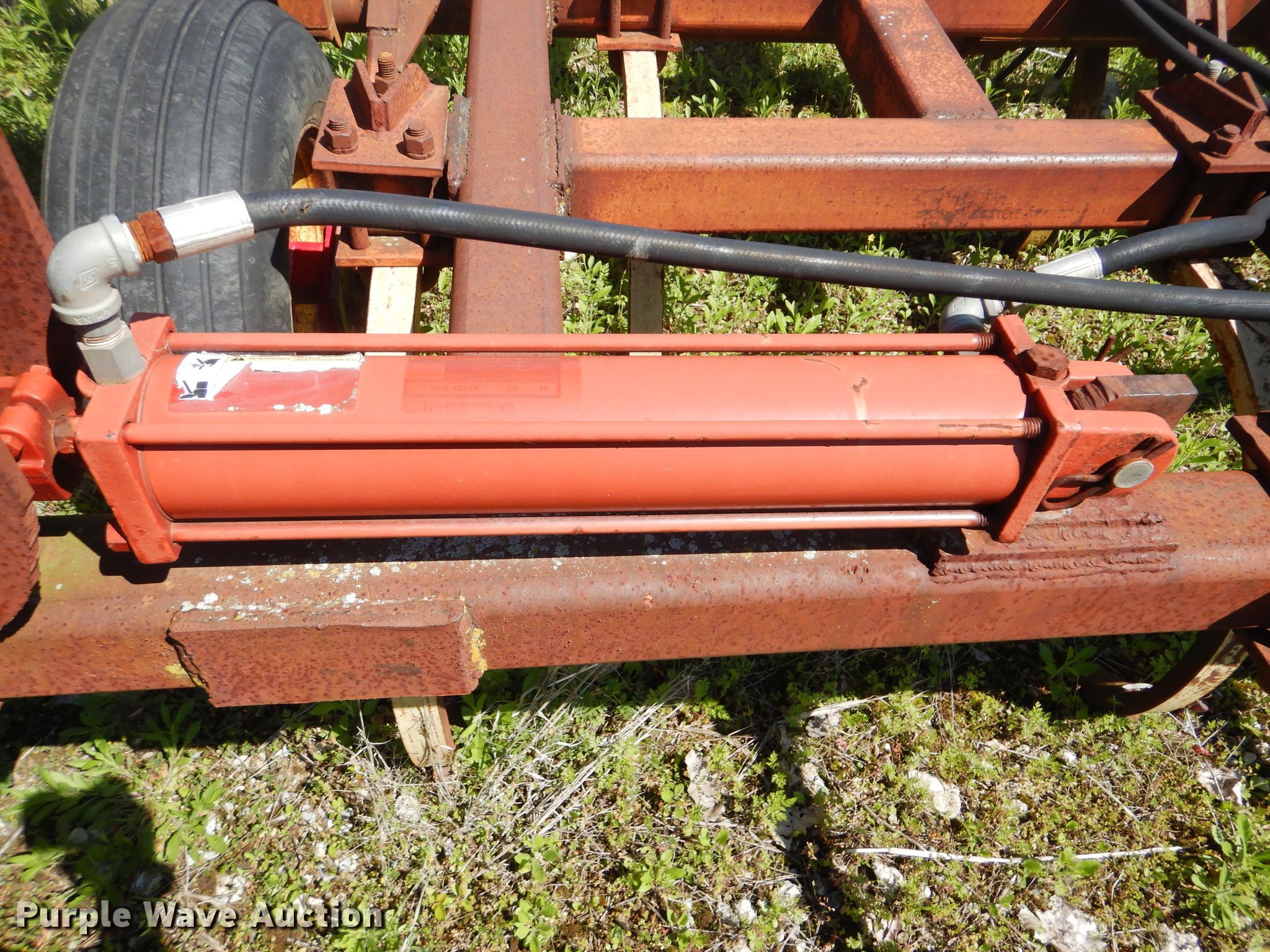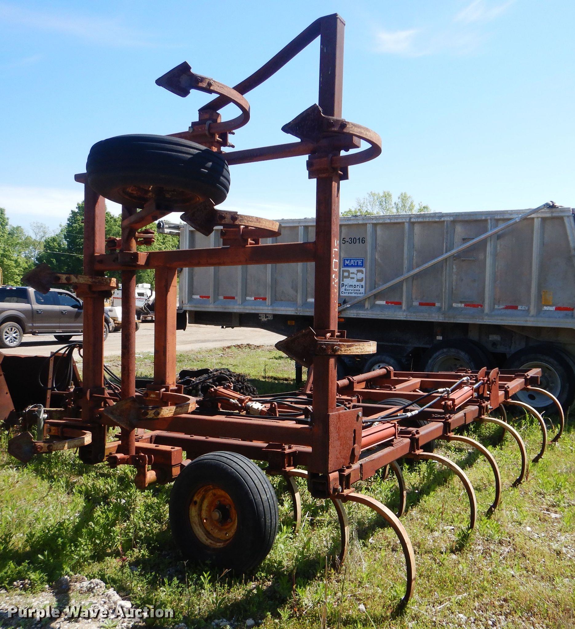 Purple Wave is selling a used Tillage Other in Oklahoma. This item is a Sunflower chisel with the following: 28' overall width, Hydraulic lift and fold, Three bar tine harrow, (22) shanks, 11L-15SL tires