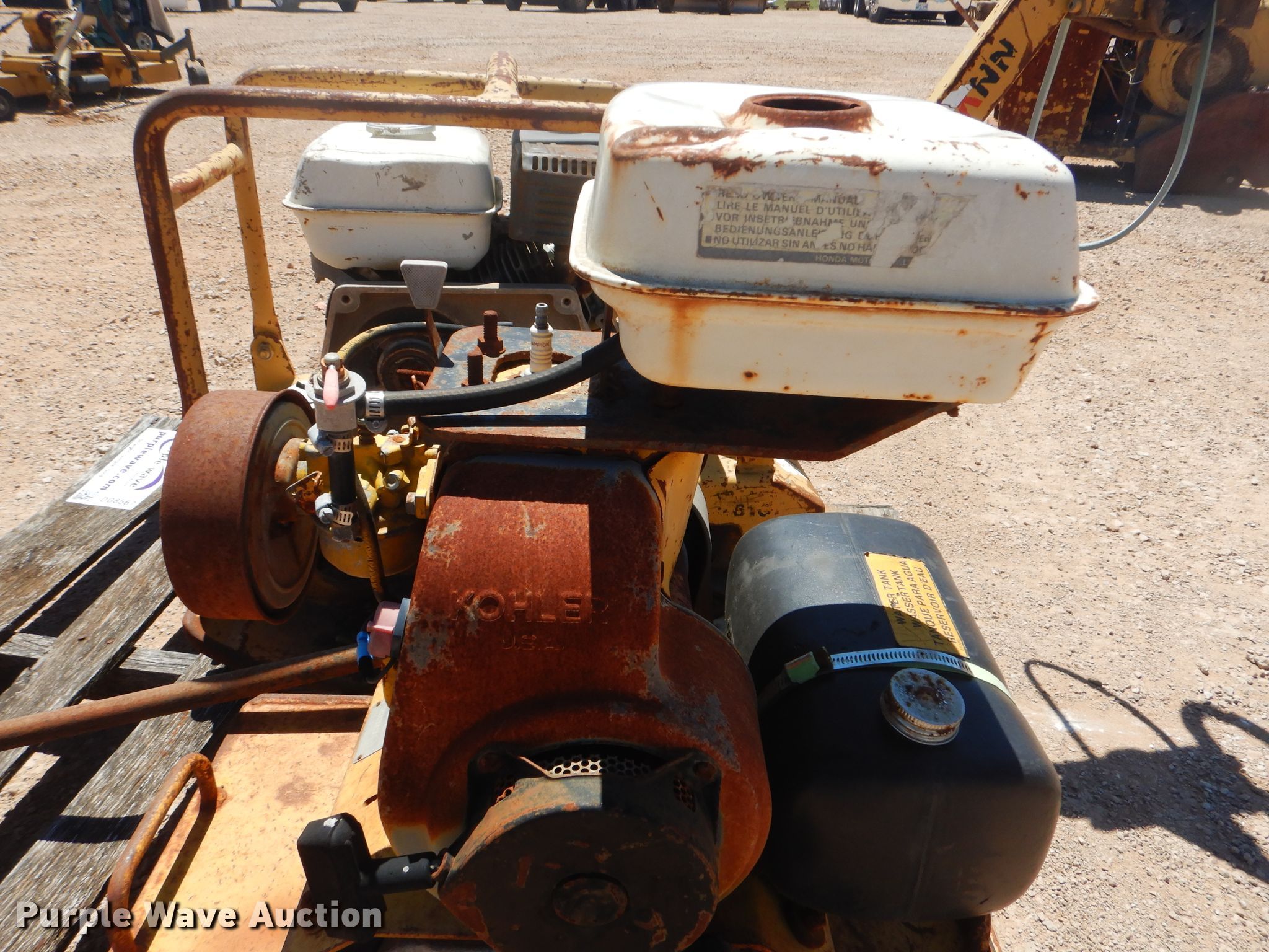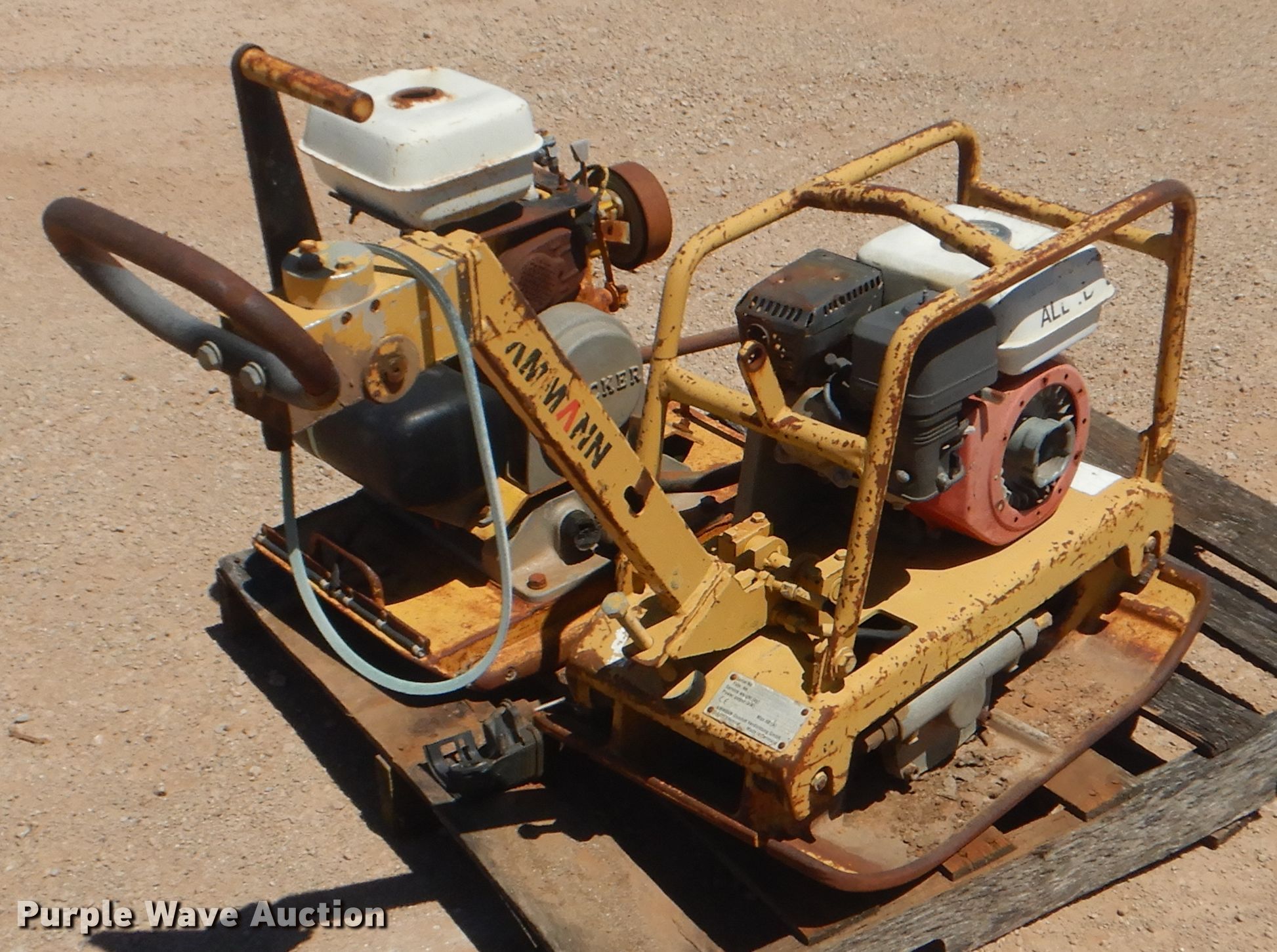 Purple Wave is selling a used Walk Behind Compactor in Oklahoma. This item is a (2) plate compactors with the following: Wacker VPH160K, Kohler gas engine, 21"W plate, Serial 236305985, Ammann, Honda gas engine, 21"W plate, Serial DVP2610, Unknown operating condition