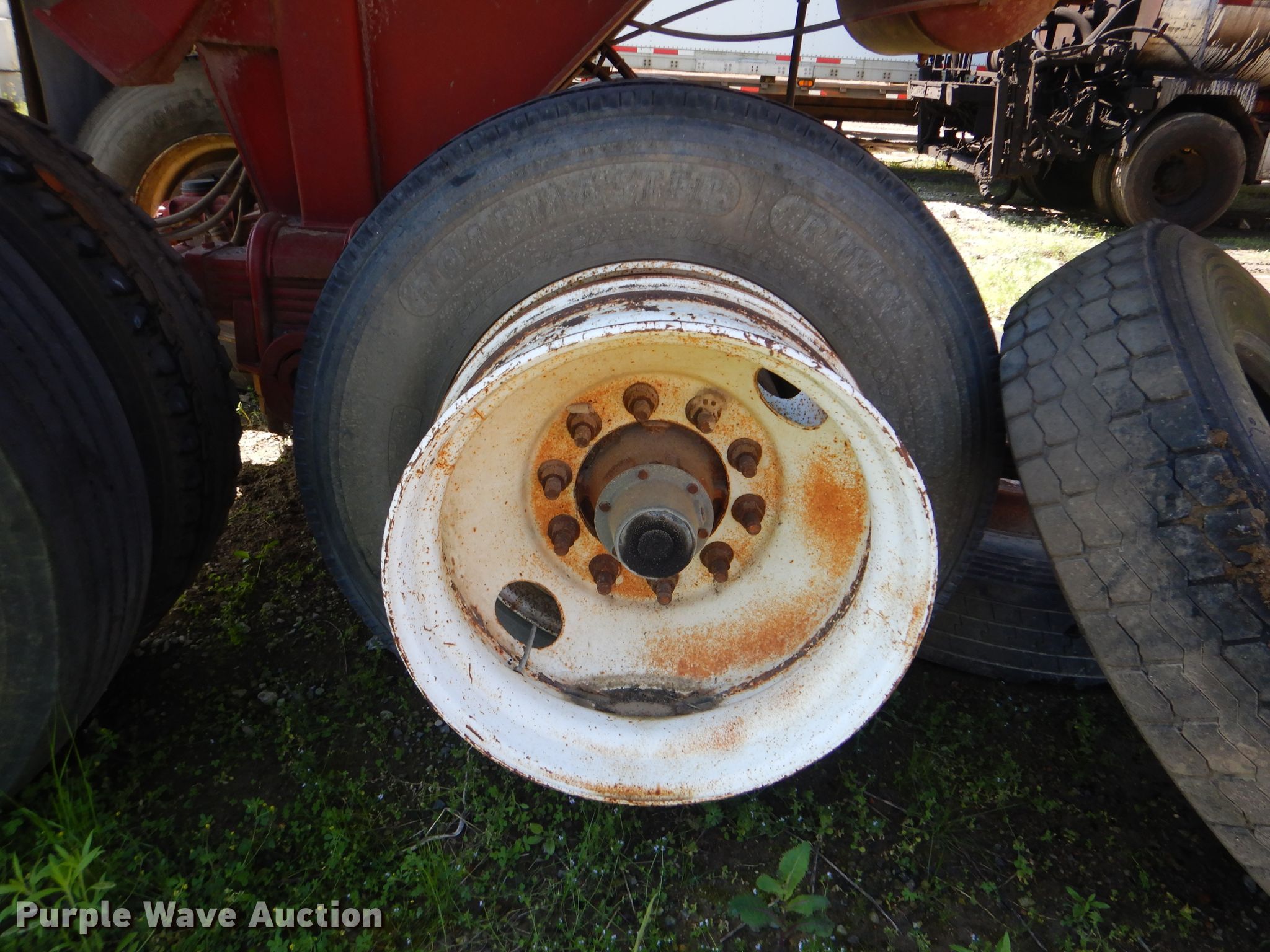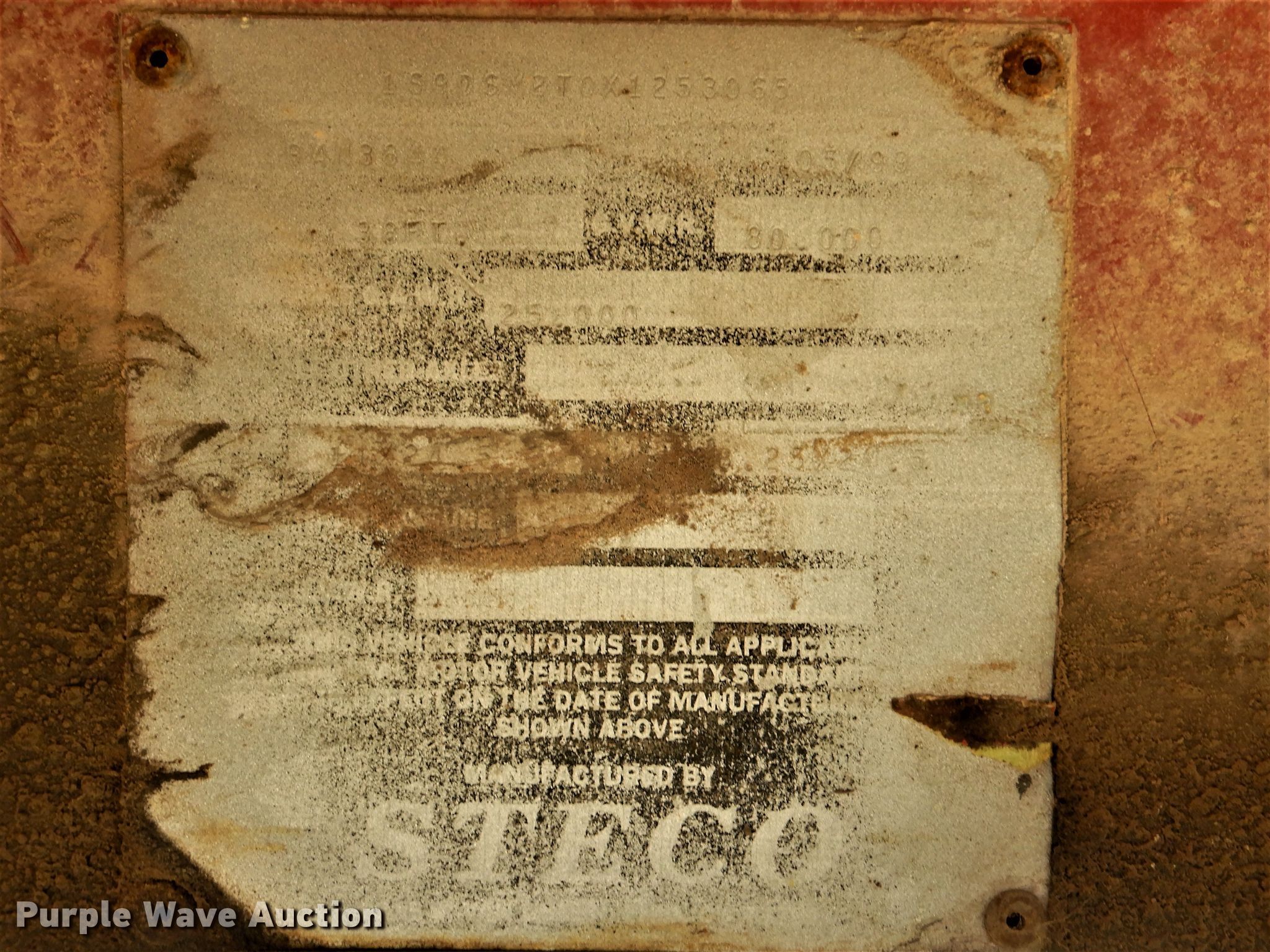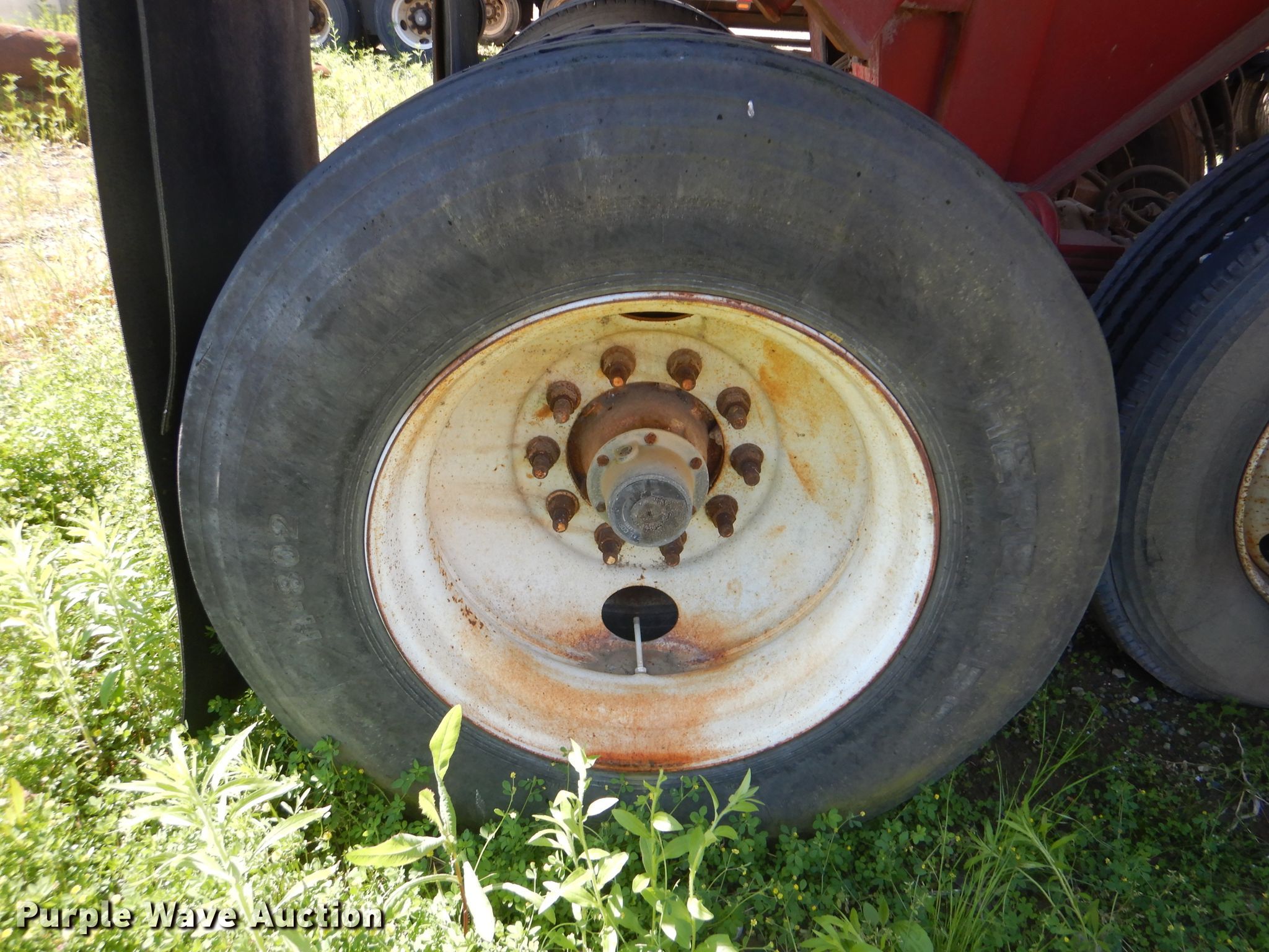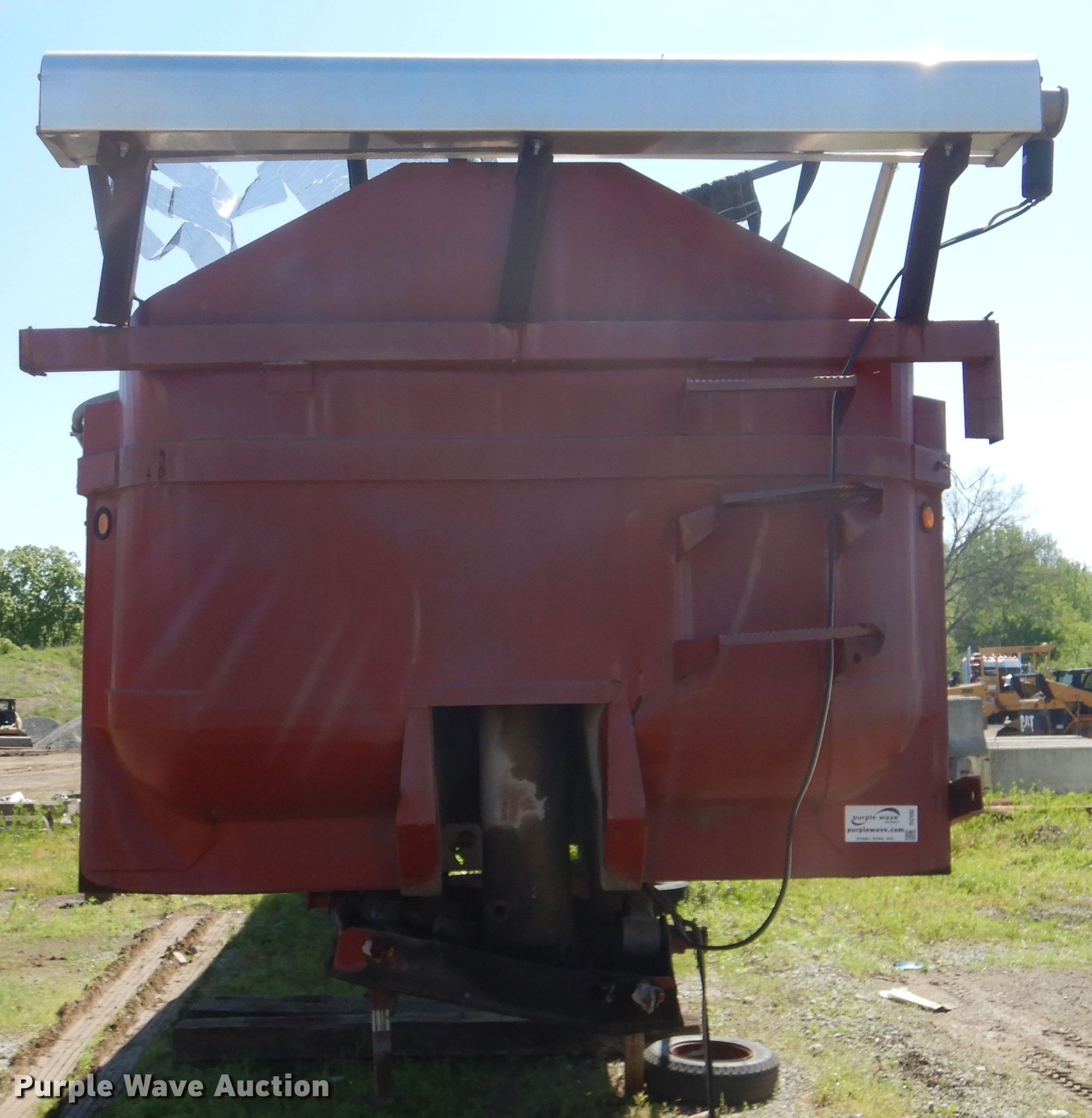 Purple Wave is selling a used End Dump Rock Trailer in Oklahoma. This item is a 1999 Steco end dump trailer with the following: 38'L x 8'W overall, 36" side height, 12" side board height, Single hydraulic cylinder, End gate, Roll tarp, Steel construction, Dual leg landing gear, Spring suspension, Air brakes, Tandem axle, 11R24.5 tires, GVWR 80,000 lbs, GAWR 25,000 lbs, Some side boards missing, Rust holes