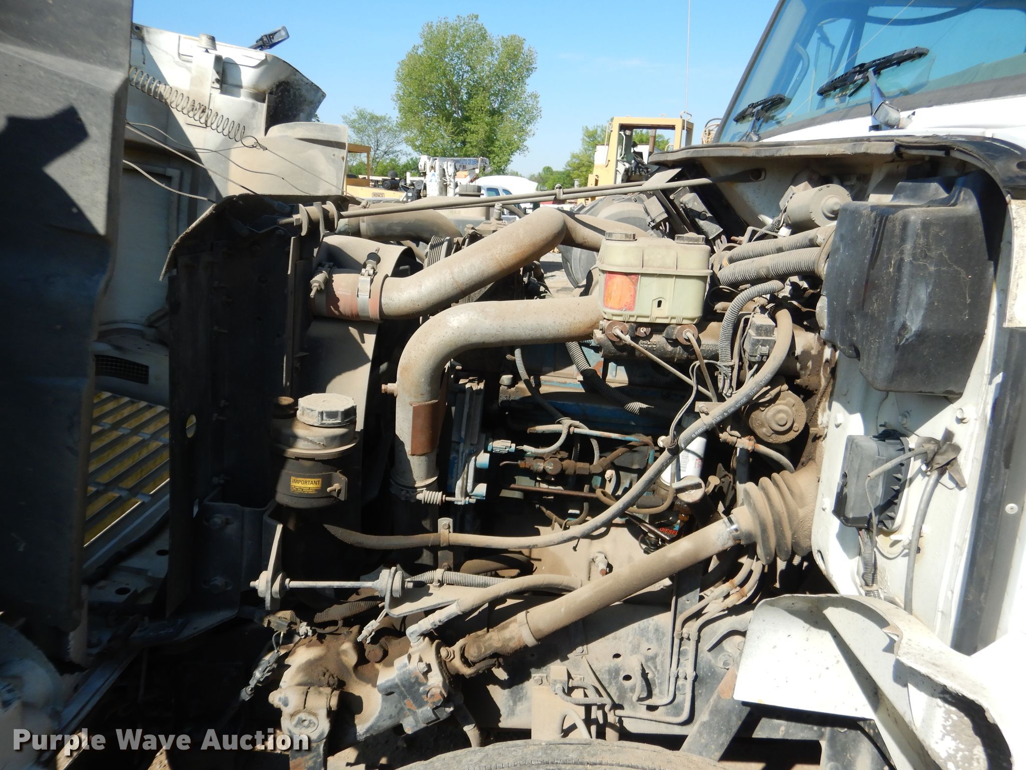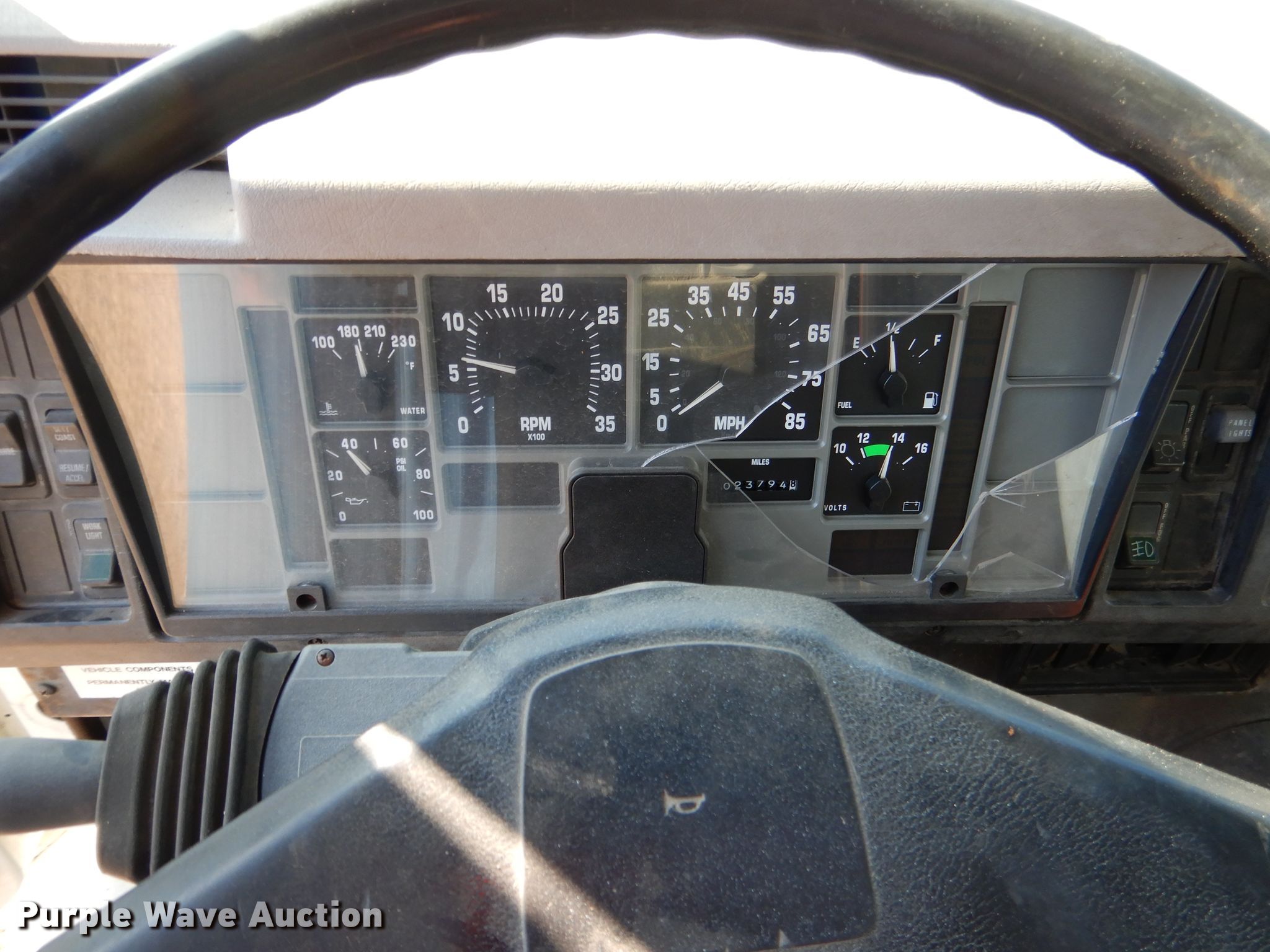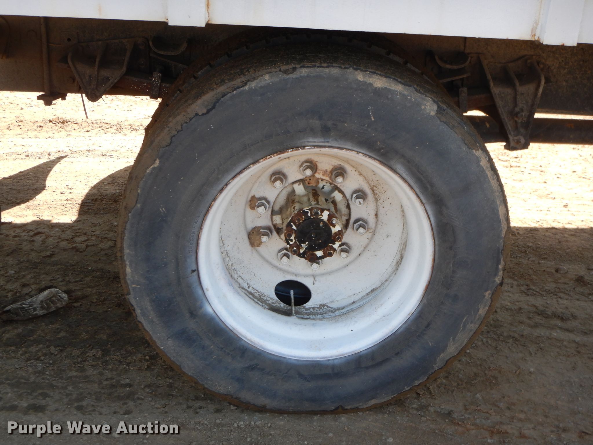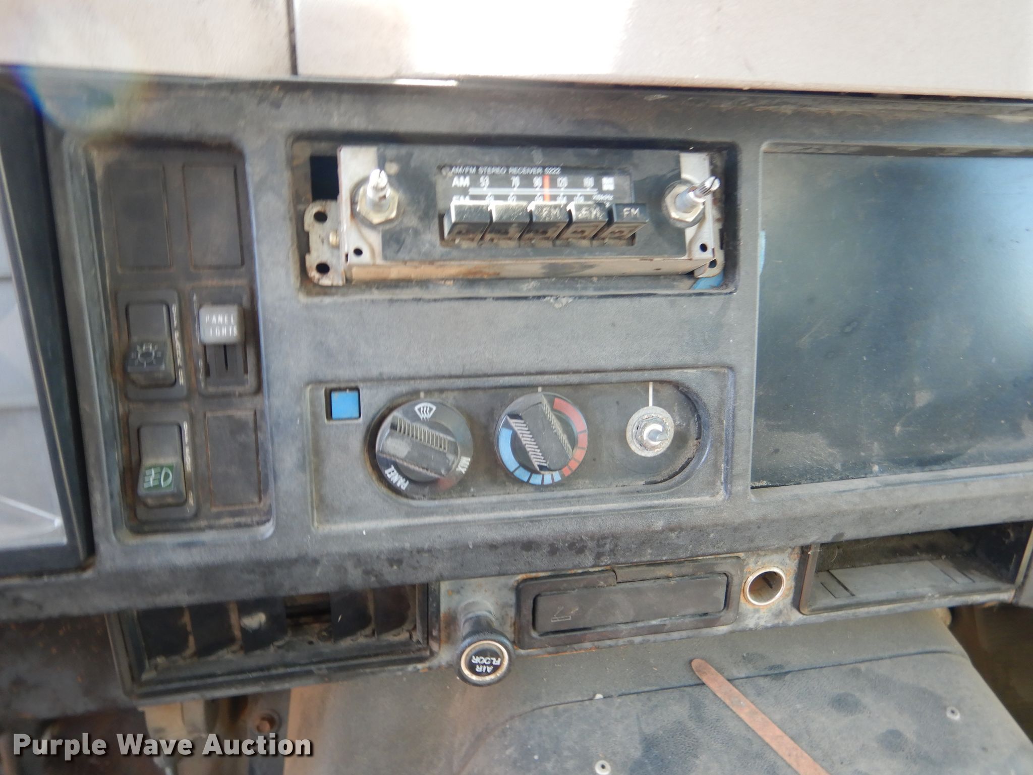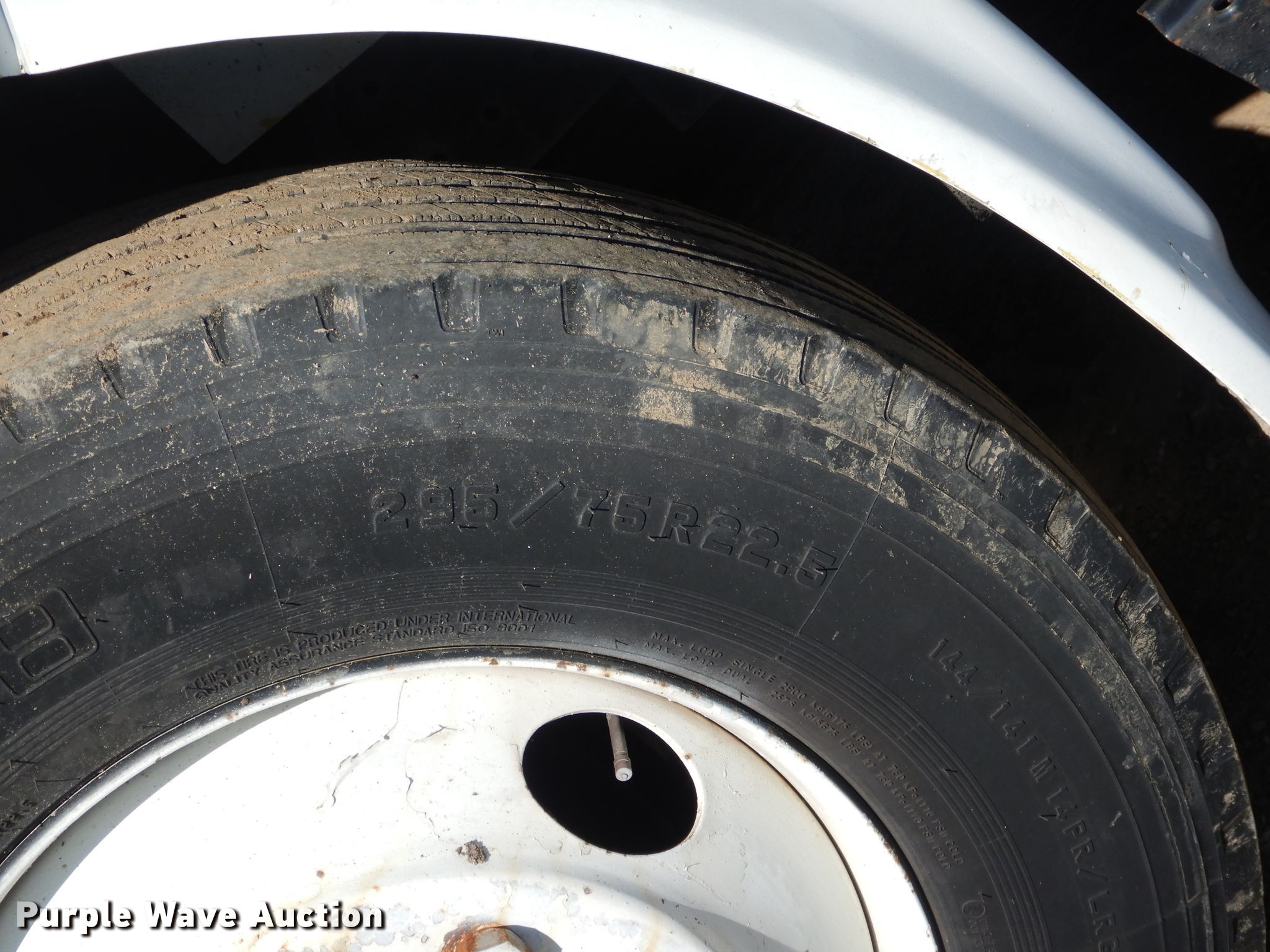 Purple Wave is selling a used Flat Bed Truck in Oklahoma. This item is a 1997 International 4700 flatbed truck with the following: 23,794 miles on odometer, International DT466 7.6L L6 diesel engine, Eight speed manual transmission, Single axle, AC and heat, 24.5'L x 8'3"W flatbed, 5' side height, Spring suspension, Hydraulic brakes, 295/75R22.5 tires