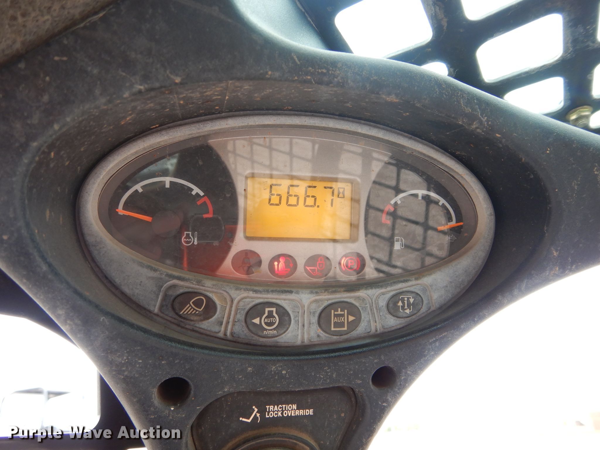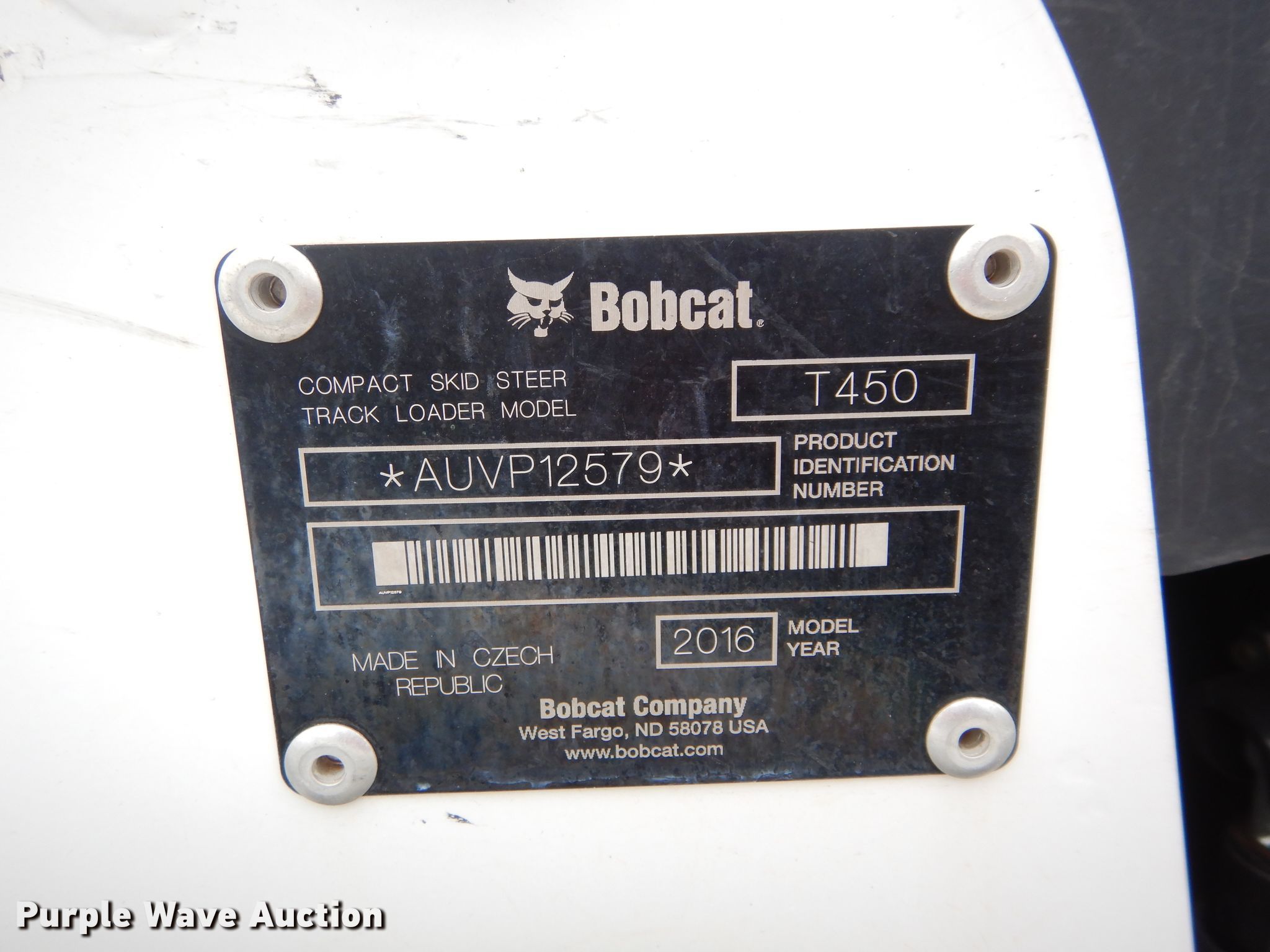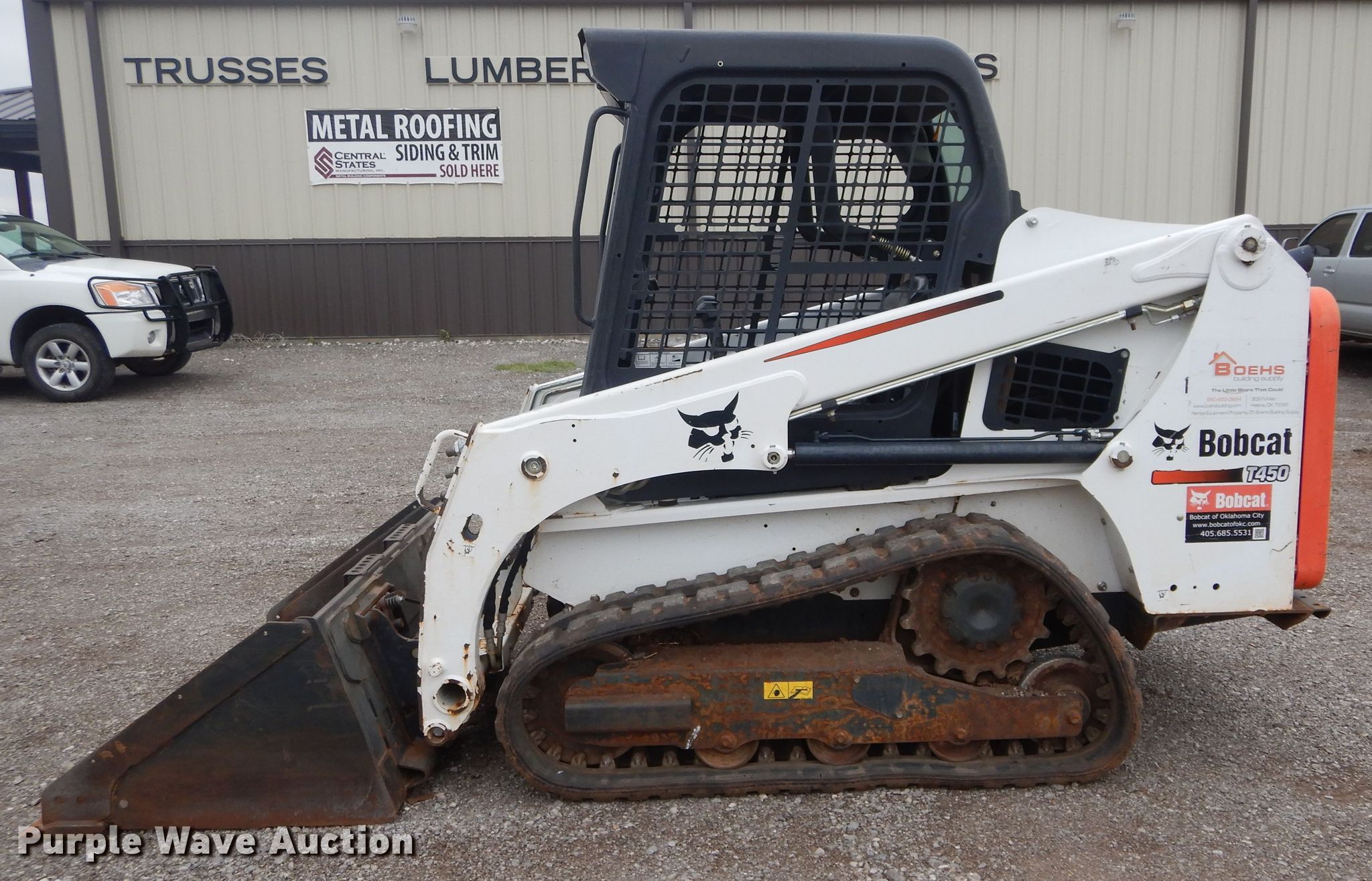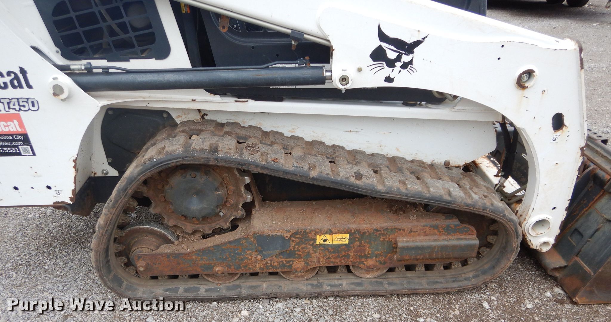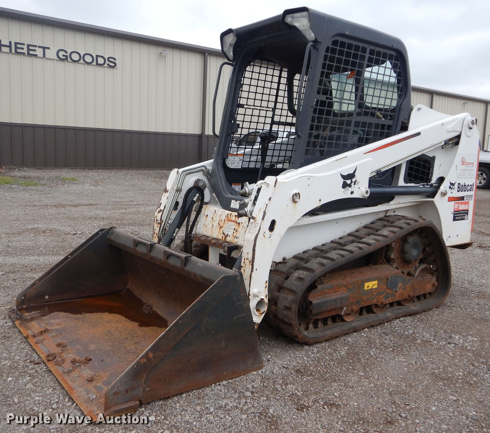 Purple Wave is selling a used Tracked Skid Steer Loader in Oklahoma. This item is a 2016 Bobcat T450 tracked skid steer loader with the following: 666 hours on meter, Serial: AUVP12579