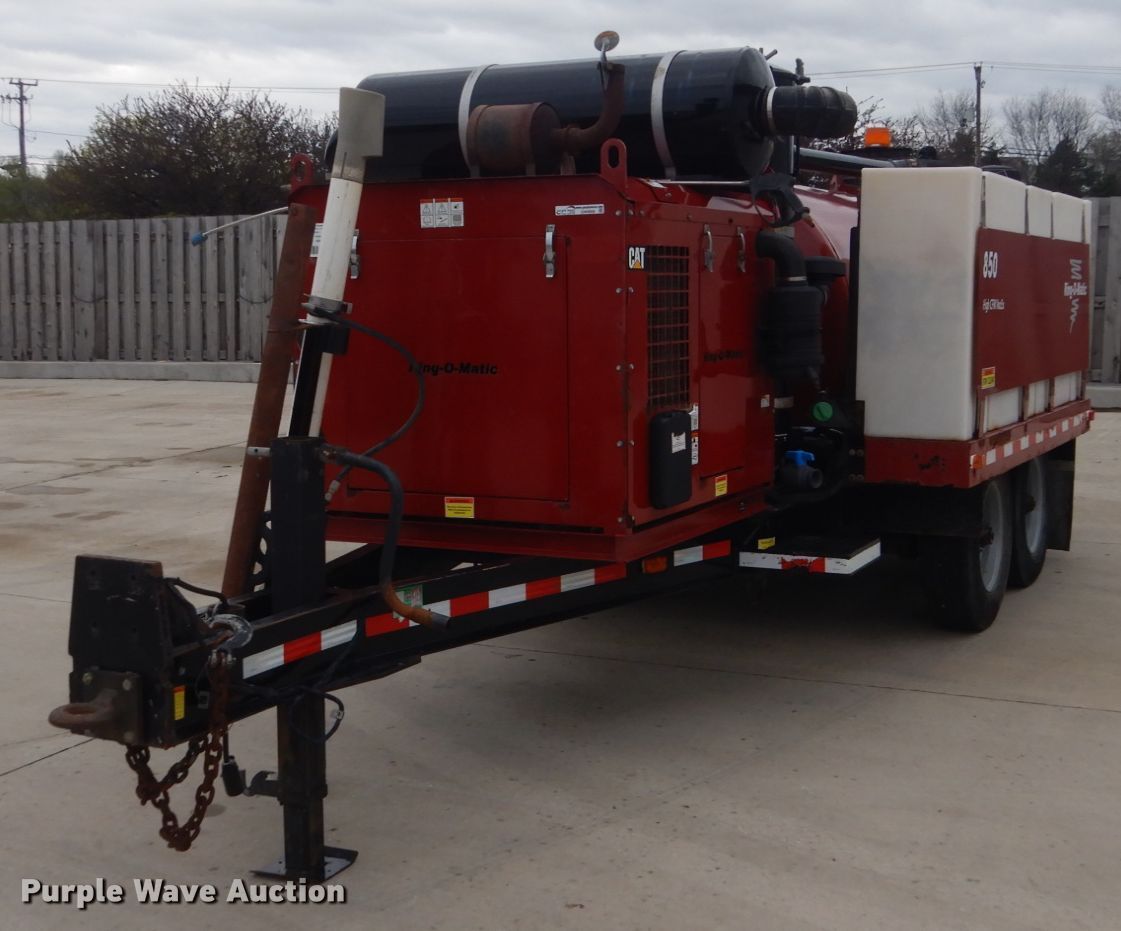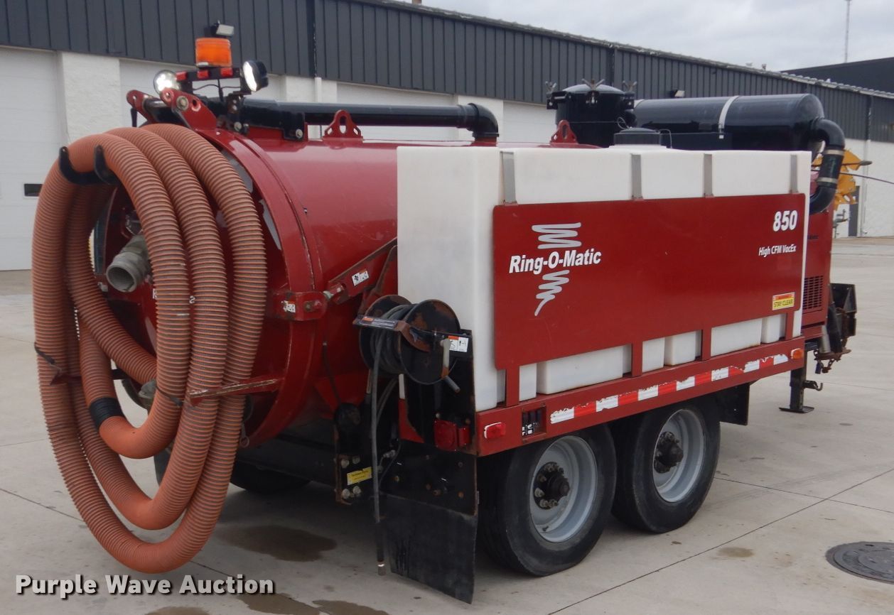 Purple Wave is selling a used Vacuum Excavator in Illinois. This item is a 2014 Ring-o-matic 850 vacuum excavator with the following: 1,021 hours on meter, Caterpillar 2.2L four cylinder diesel engine, 800 gallon spoils tank, Hydraulic dump, 6" diameter valve, 4" diameter hose, (2) 250 gallon poly tanks, Six gallon per minute capacity at 3,500 psi, Single leg landing gear, Torsion suspension, Electric brakes, Tandem axle, 235/75R17.5 tires