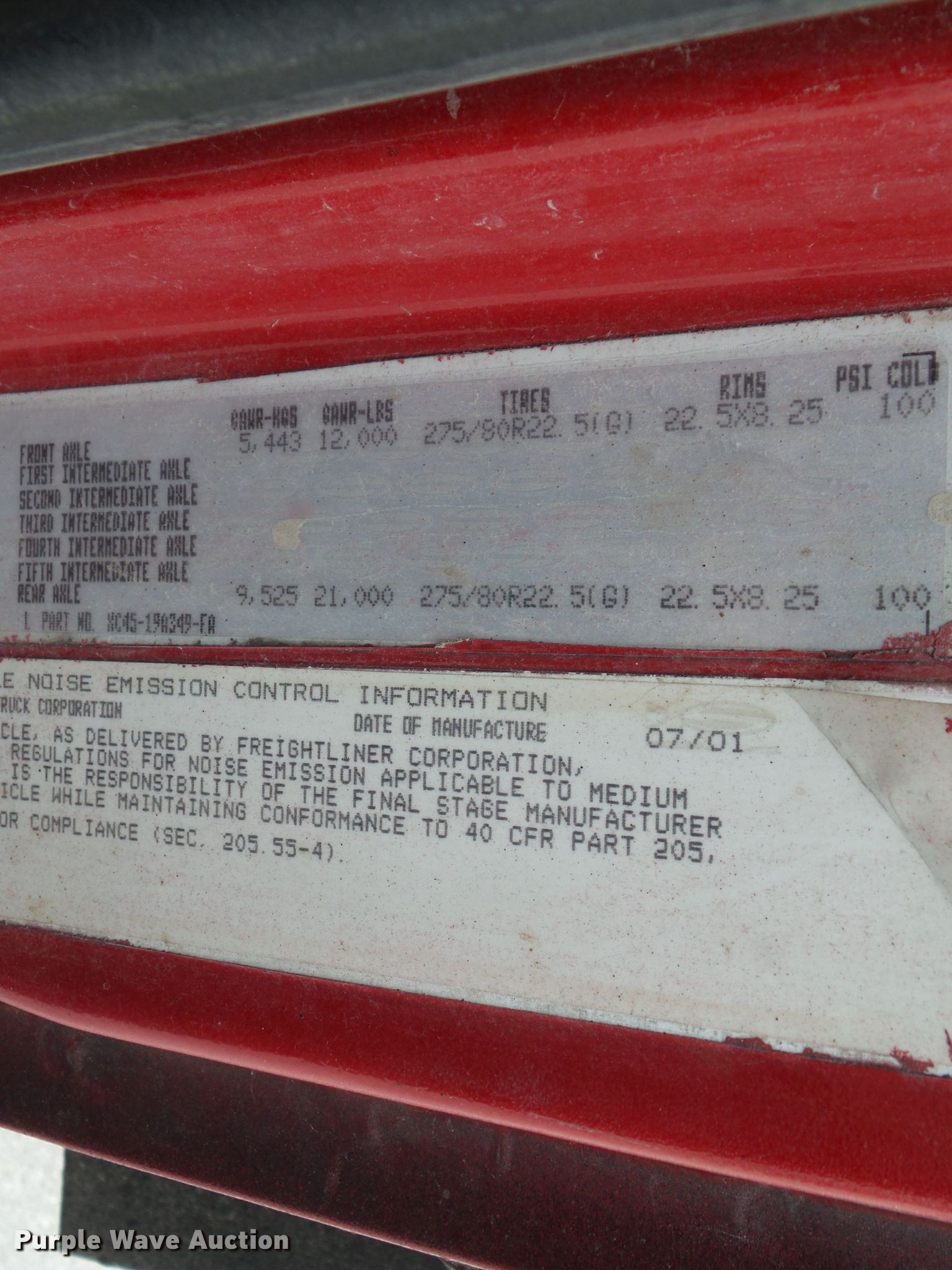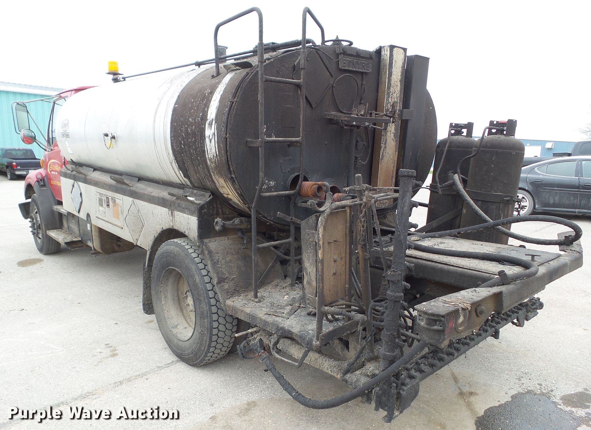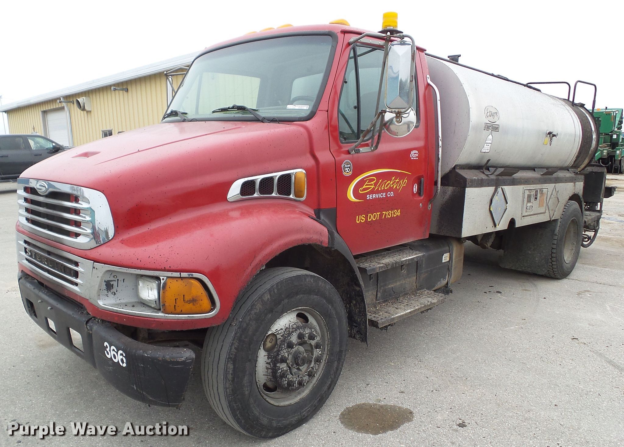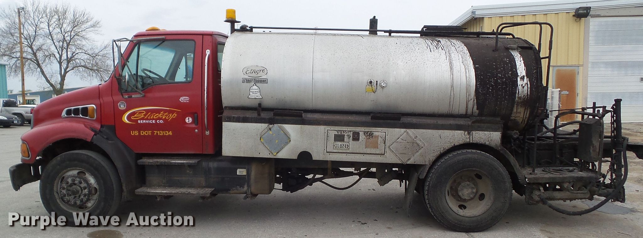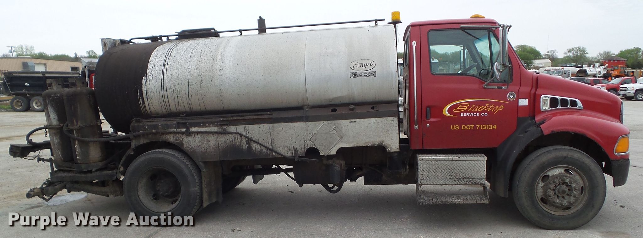 Purple Wave is selling a used Oil Distributor Truck in Iowa. This item is a 2001 Sterling Acterra oil distributor truck with the following: 271,090 miles on odometer, Caterpillar 3126 7.2L L6 diesel engine, 330 HP, Serial CPXH0442HBK, Six speed manual transmission, Single axle, AC and heat, Cruise, PTO, Etnyre BT-HL oil distributor bed, 2,137 gallon capacity, 12'L, Propane burner, 11'W folding spray boom, Spray wand, In-cab controls, Spring suspension, Air brakes, 275/80R22.5 front tires, 245/75R22.5 rear tires, GVWR 33,000 lbs, Windshield cracked