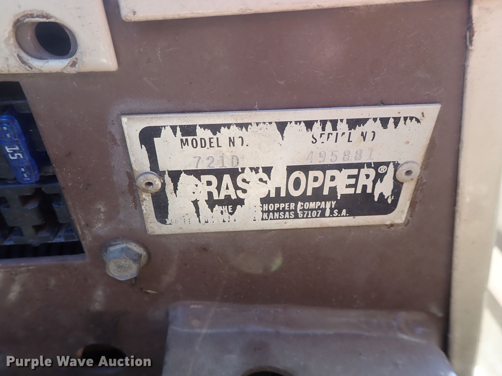 Purple Wave is selling a used Commercial Turf Mower in Kansas. This item is a Grasshopper 721D ZTR lawn mower with the following: 2,555 hours on meter, 72" cut, Three cylinder diesel engine, Hydrostatic transmission, 21x11x8 tires, Serial 495881