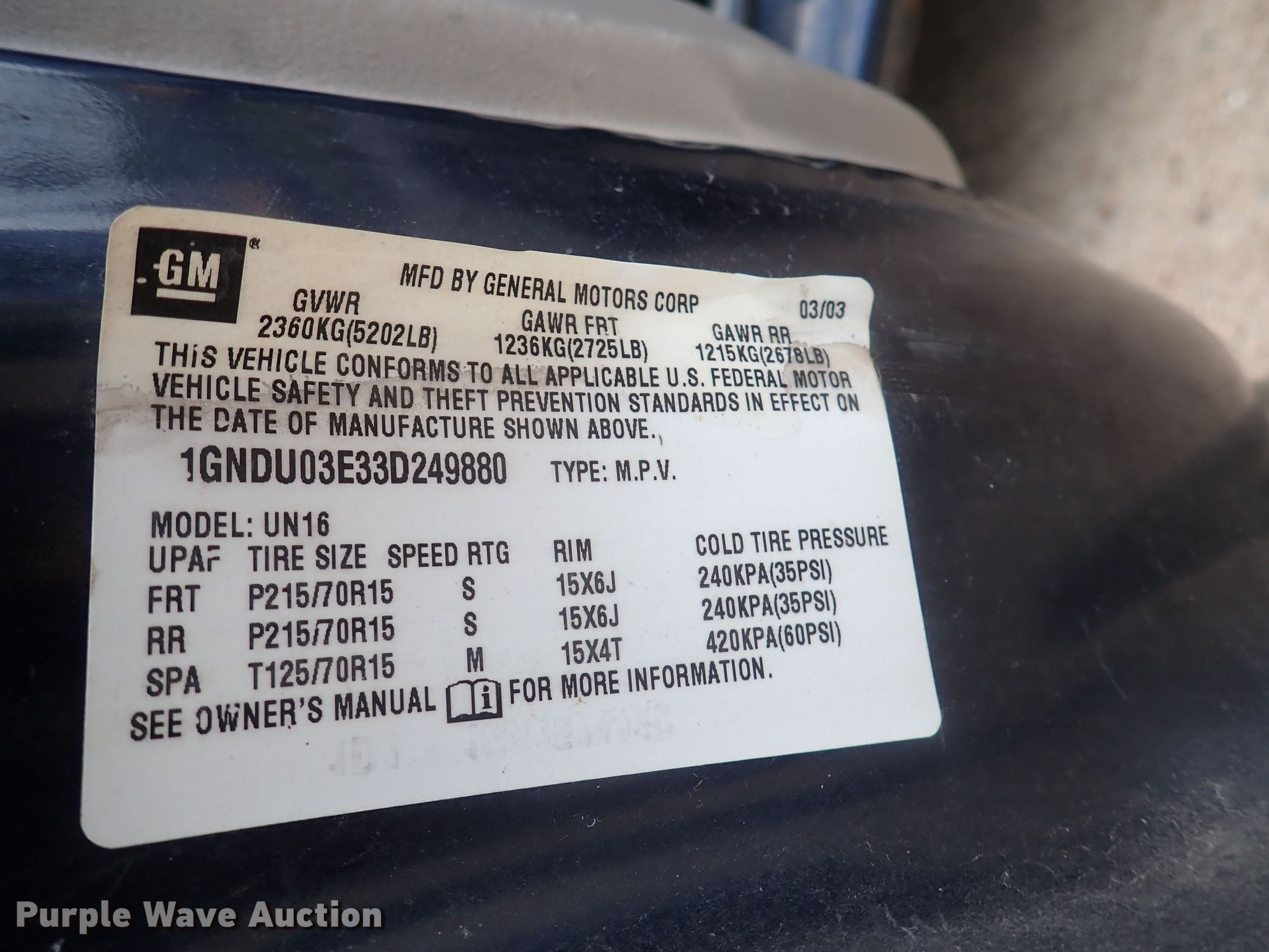 Take a look at this used 2003 Chevrolet Venture van being sold on June 2nd, 2020 in the SOLD! June 2 Government Auction made by Chevrolet. Take a look at all of the item information below or take a look at similar auctions for Passenger Vehicles.