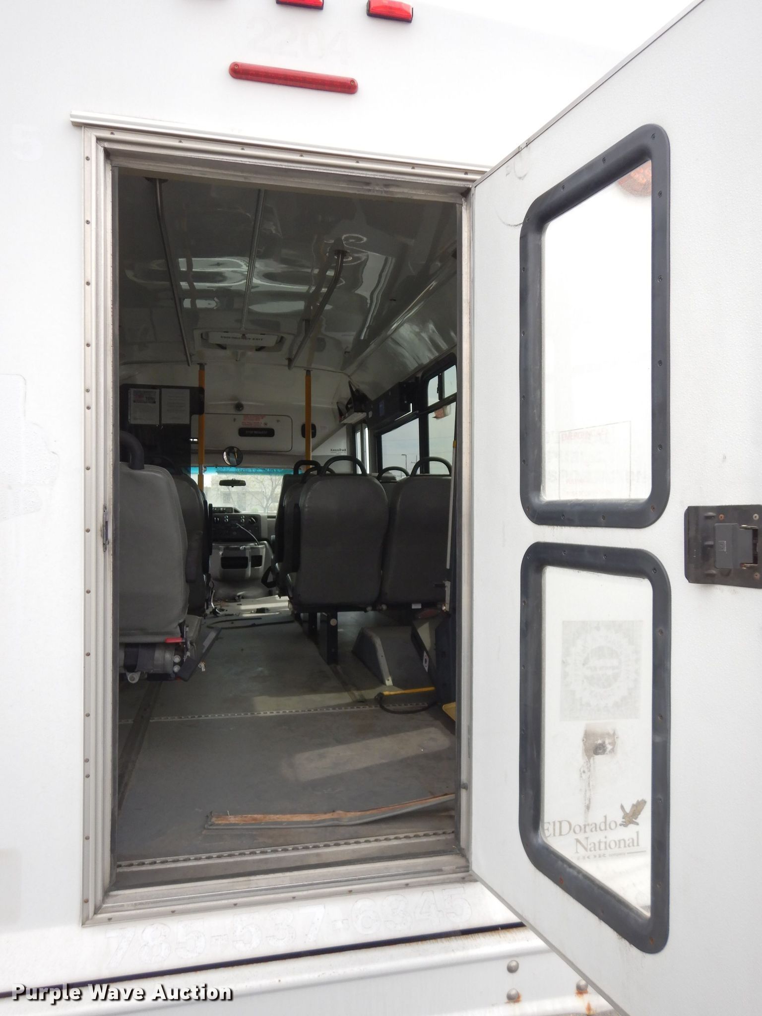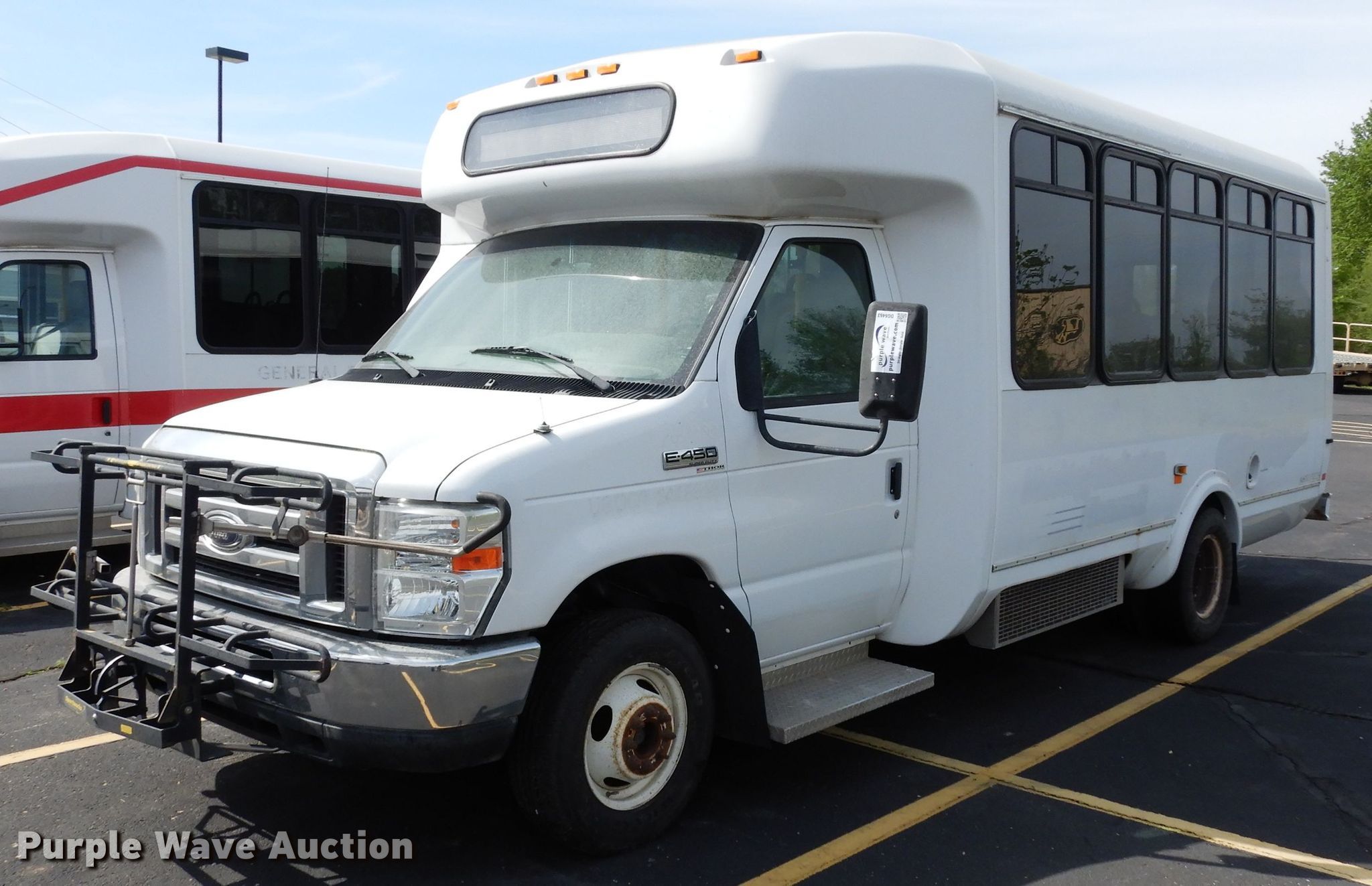 Purple Wave is selling a used Bus in Kansas. This item is a 2011 Ford Econoline E450 Super Duty Aerotech shuttle bus with the following: Unknown miles on odometer, 6.8L V10 SOHC 20V gas engine, Automatic transmission, Single axle, AC and heat, Cruise, Power seat, 14 passenger capacity, (2) child safety seats, Wheelchair lift, Front bike carrier, 155" wheelbase, Goodyear 225/75R16 tires, GVWR 14,500 lbs, No battery, Non-operational unit, Unit# 2204