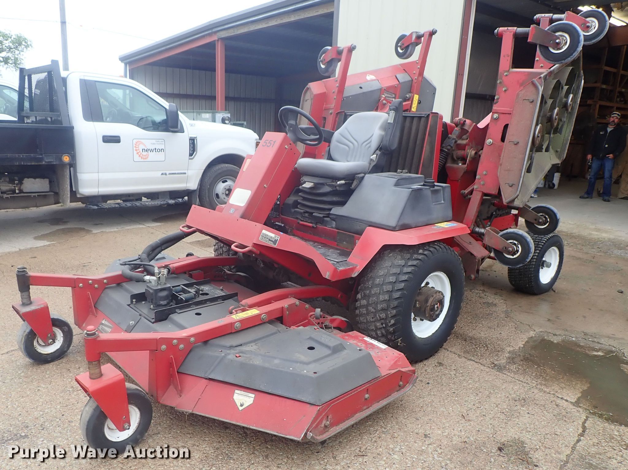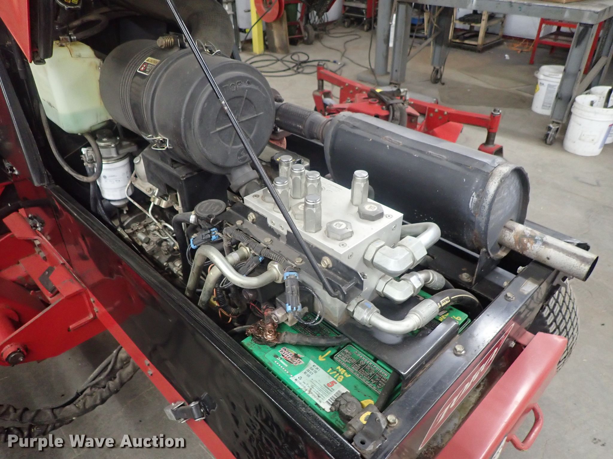 Purple Wave is selling a used Commercial Turf Mower in Kansas. This item is a Toro Groundmaster 580D lawn mower with the following: 3,059 hours on meter, 16' cut, Four cylinder diesel engine, Two speed hydrostatic transmission, Hydraulic wing fold, Accessories, 31x13.50x15 tires