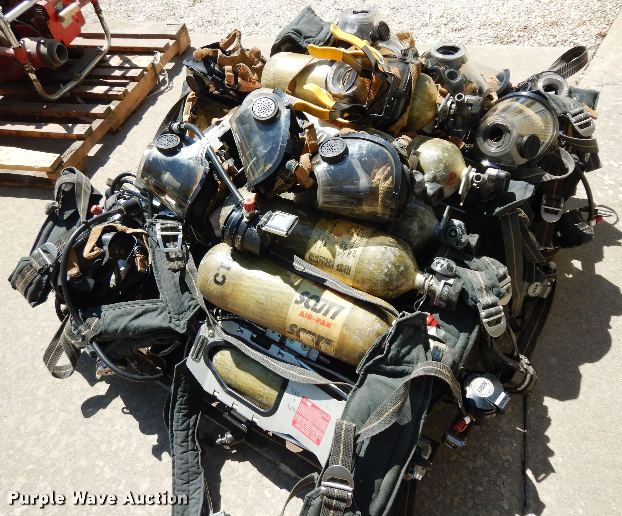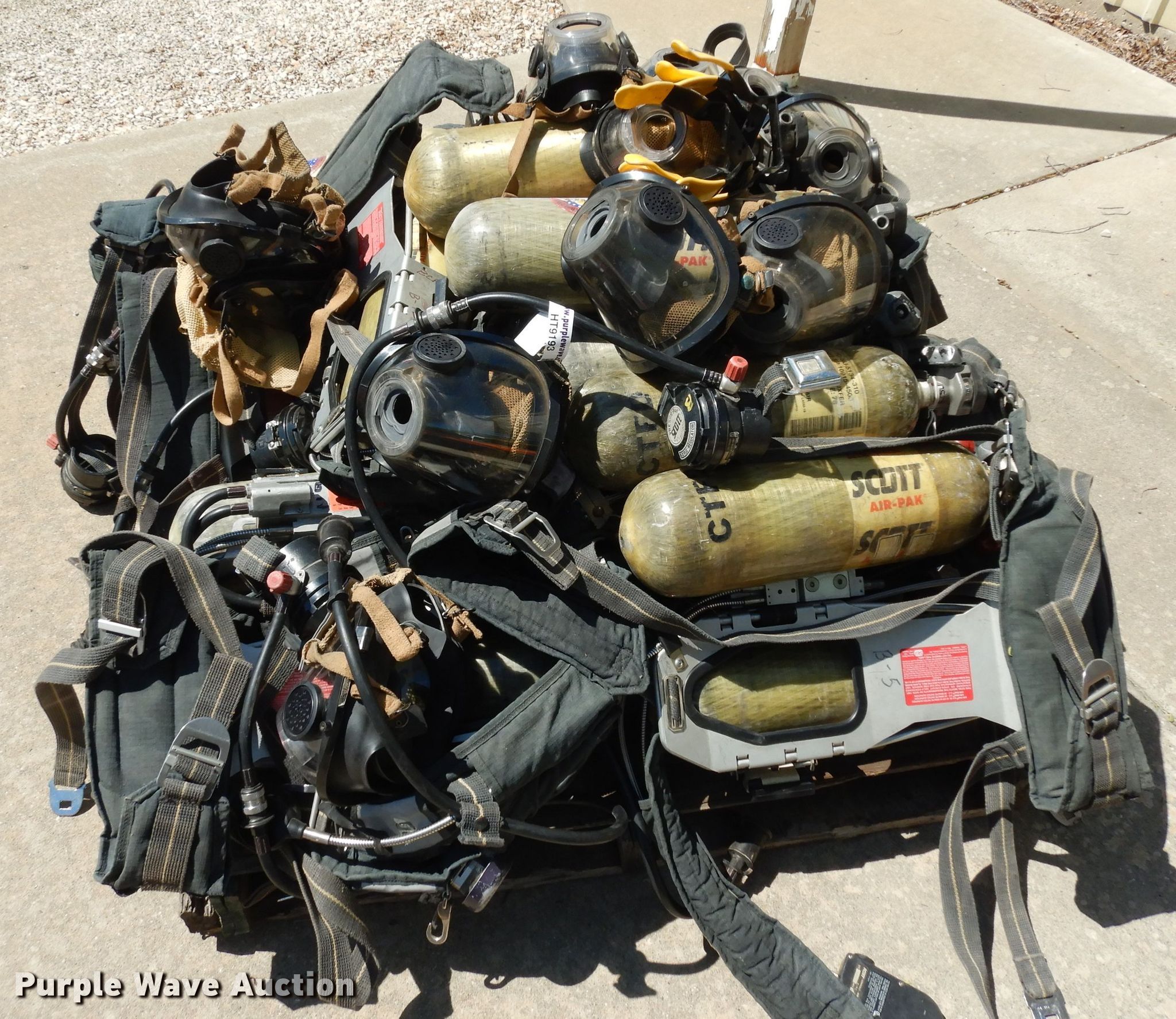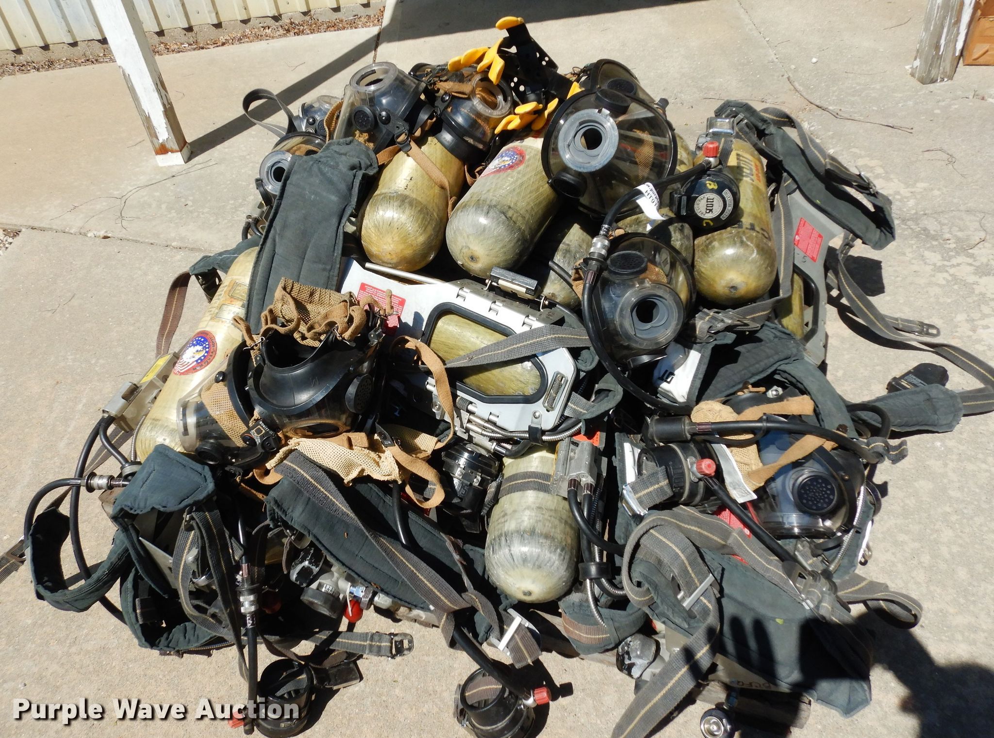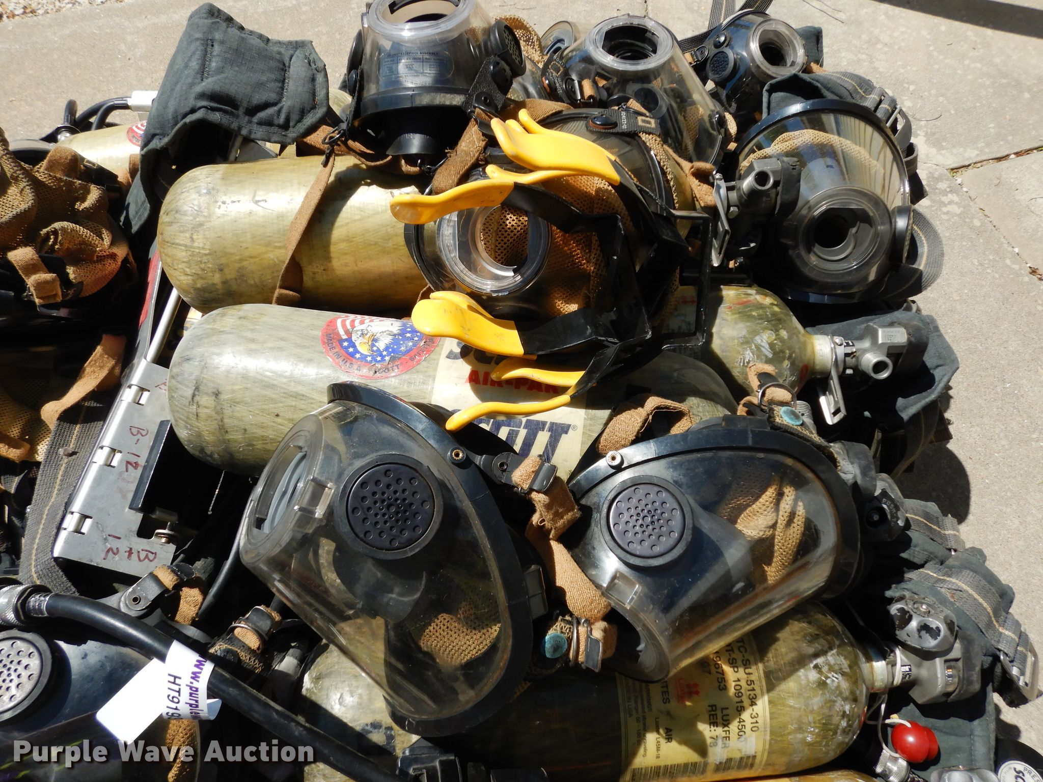 Purple Wave is selling a used Tools in Kansas. This item is a Tools with the following: (13) air paks, Need to be flow tested, (13) masks, (6) bottles, Model 4500, Units are not certified, (5) bracket mounts