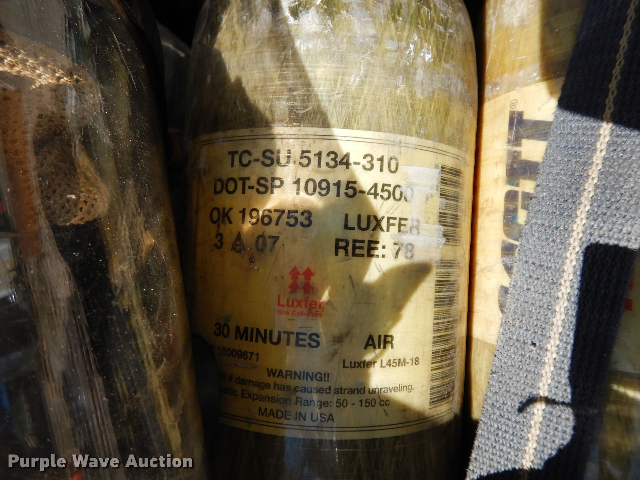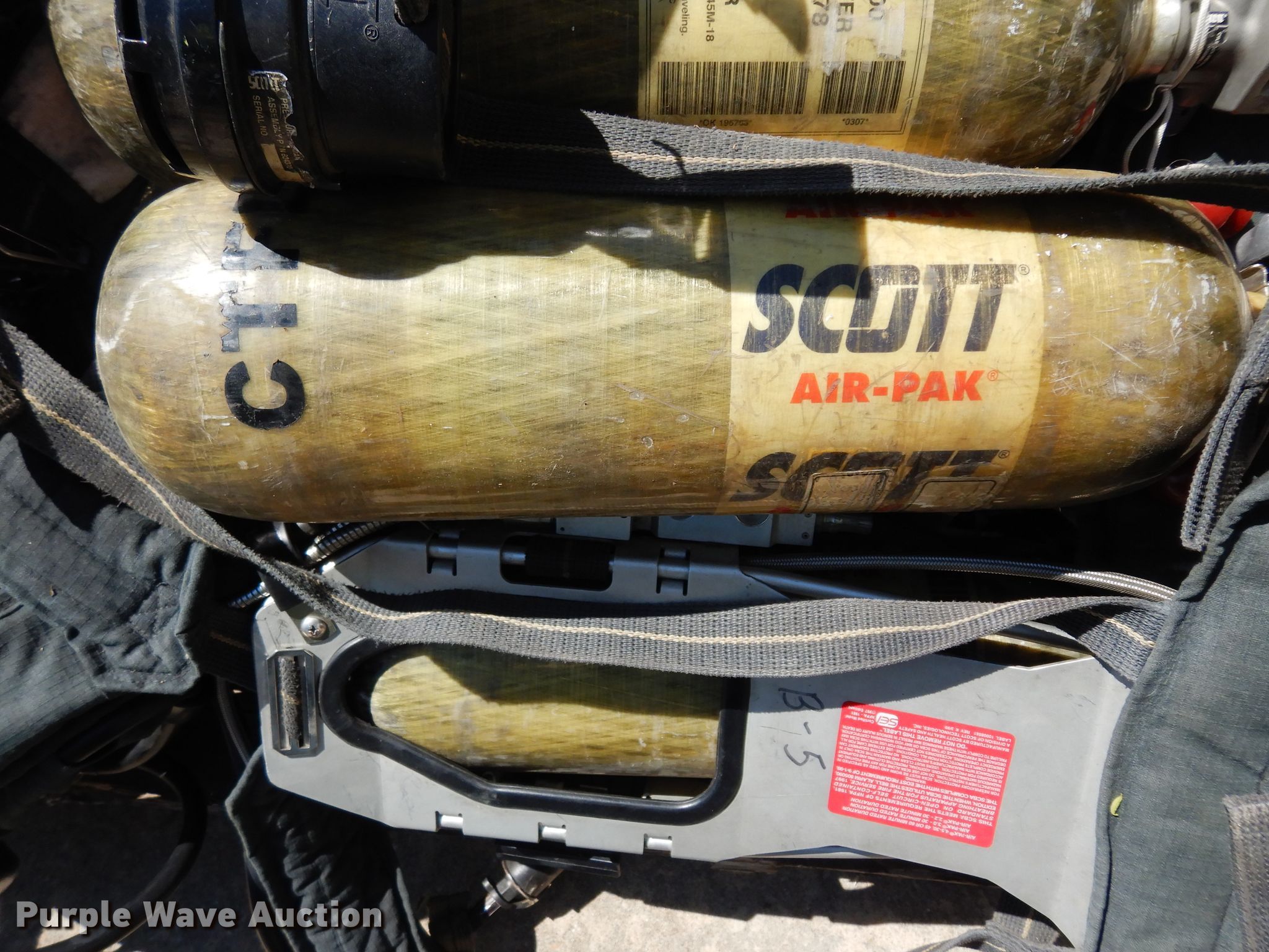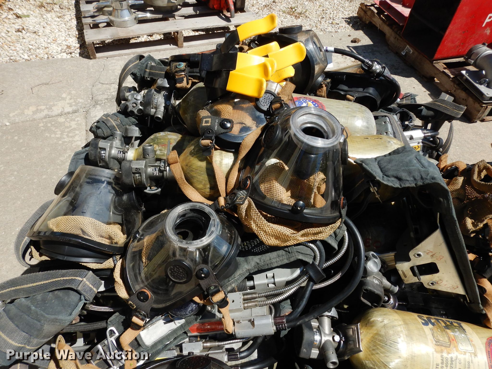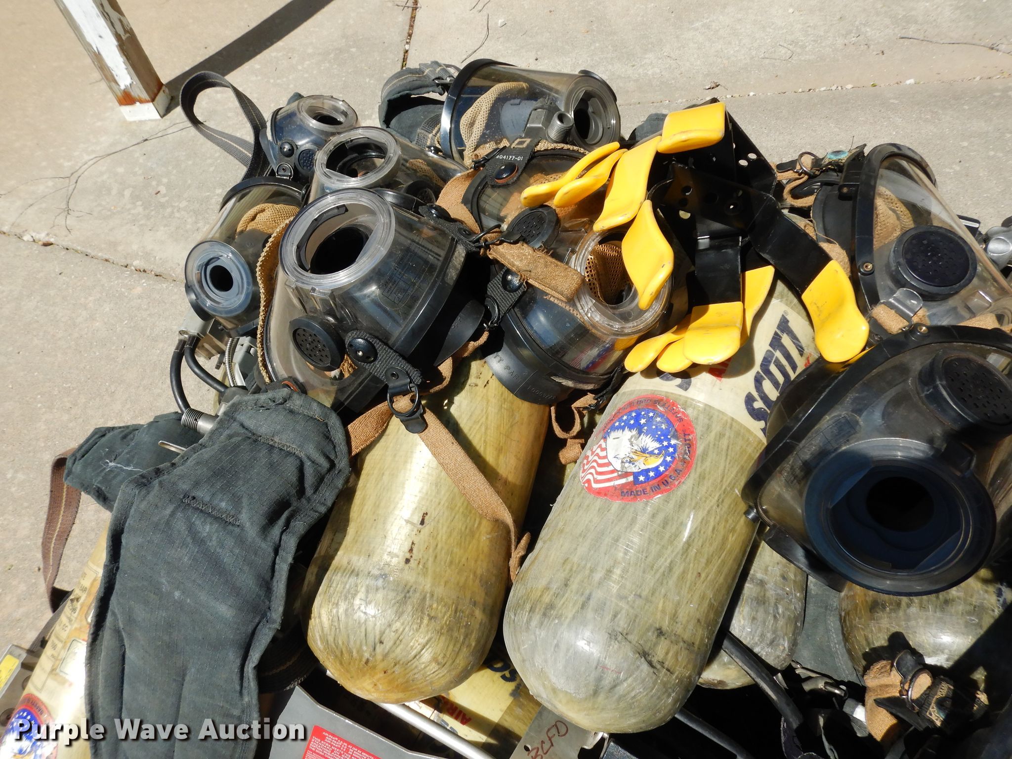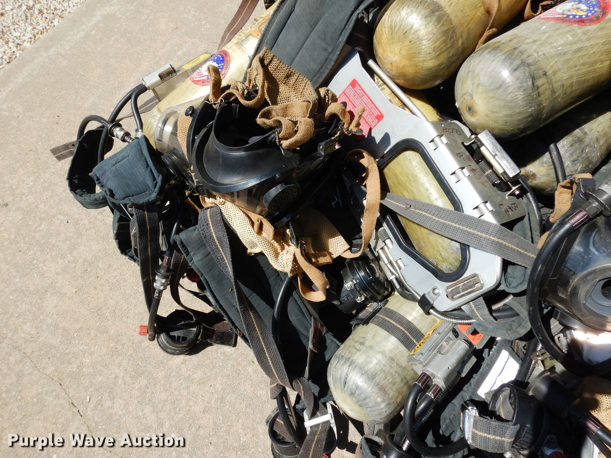 Purple Wave is selling a used Tools in Kansas. This item is a Tools with the following: (13) air paks, Need to be flow tested, (13) masks, (6) bottles, Model 4500, Units are not certified, (5) bracket mounts