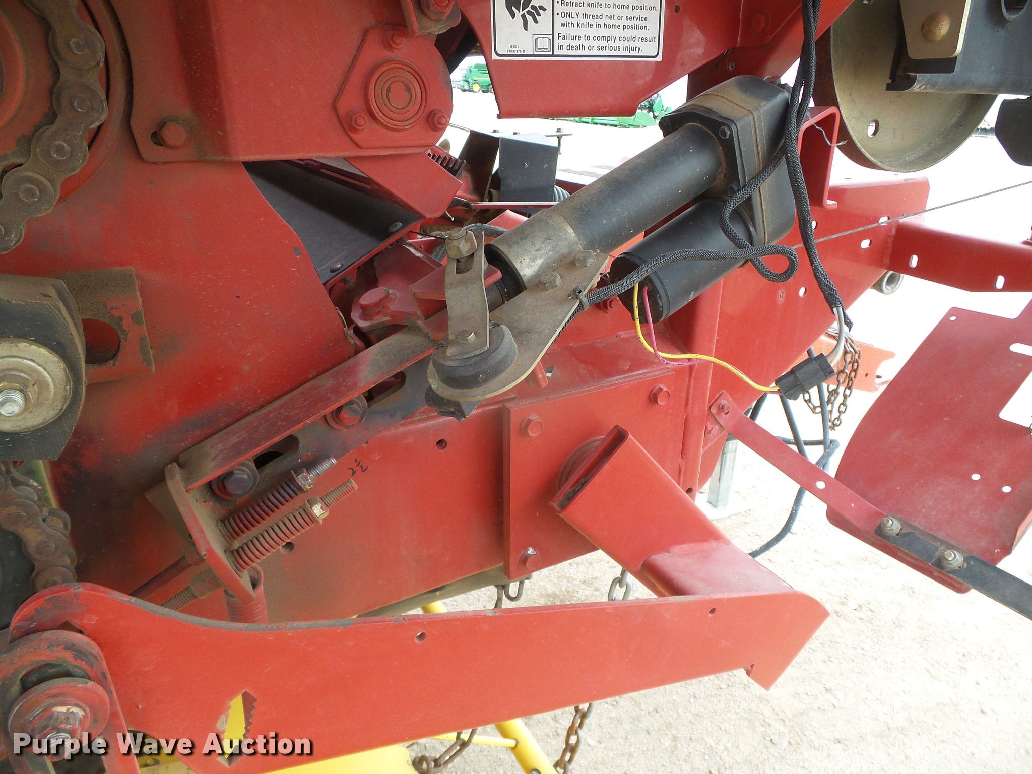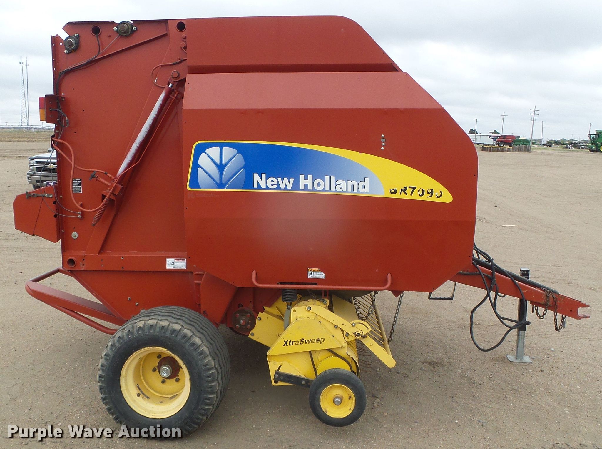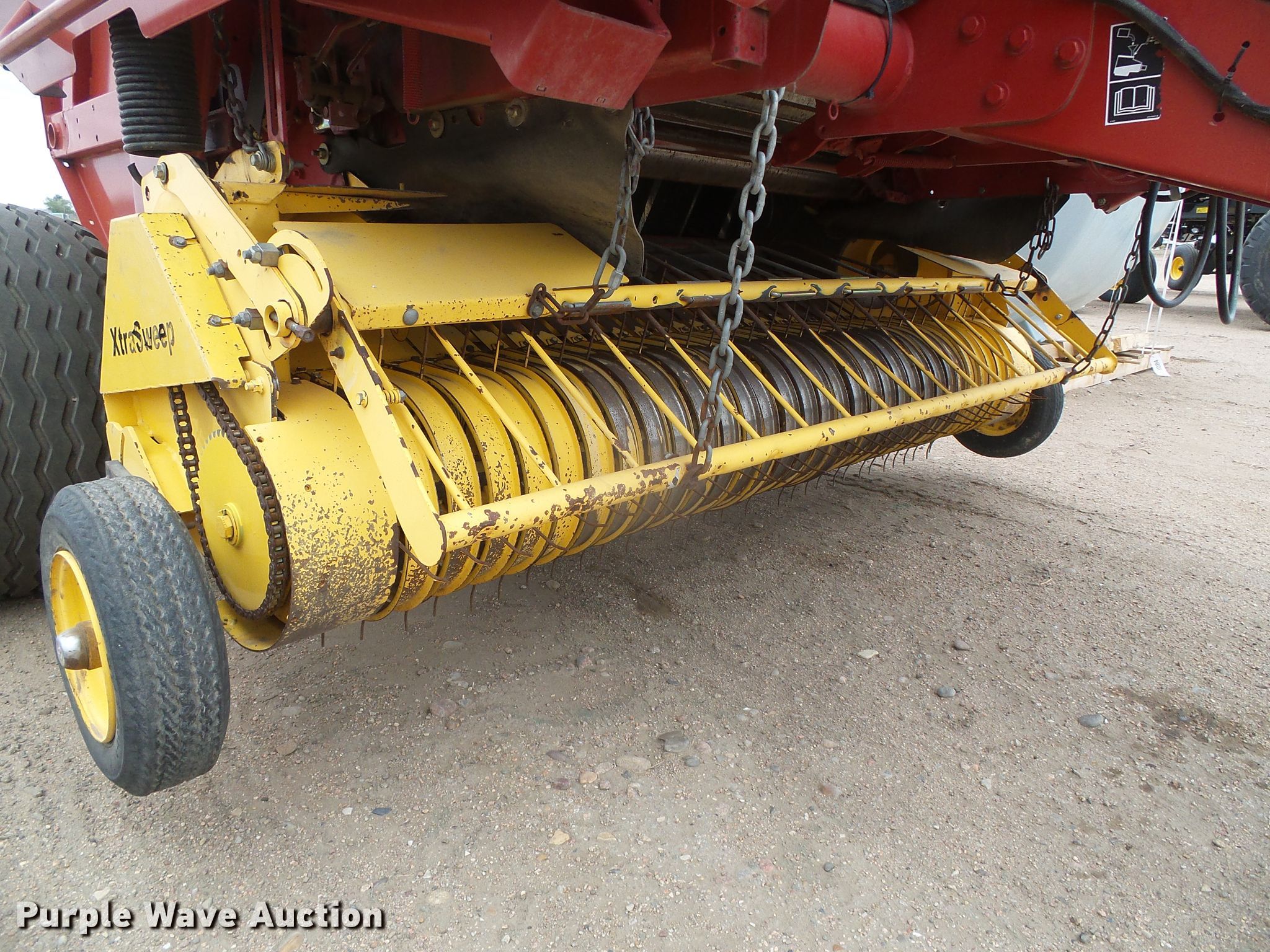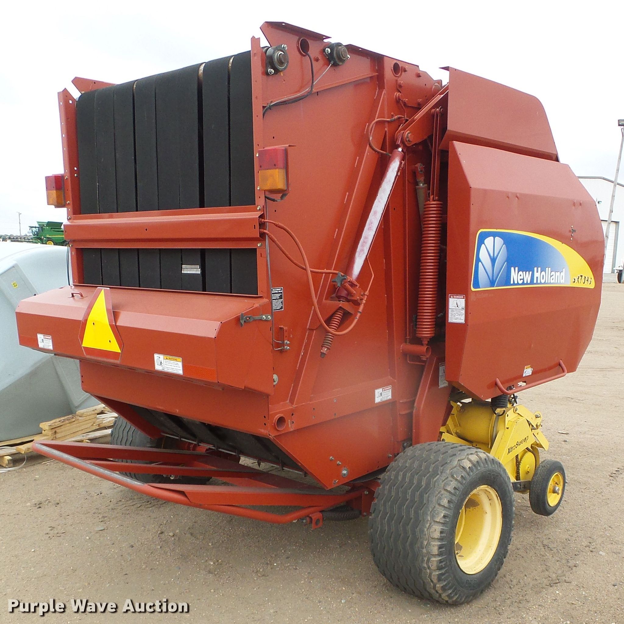 Purple Wave is selling a used Round Baler in Kansas. This item is a 2008 New Holland BR7090 round baler with the following: 5' x 6' bale capacity, 84"W XtraSweep pickup, Hydraulic pickup lift, New Holland Bale Command Plus monitor, Auto-tie, Twine tie, Net-wrap, Bale ramp, 1000 PTO, 480/45-17 tires, Serial Y8N036504, Unit# 184293