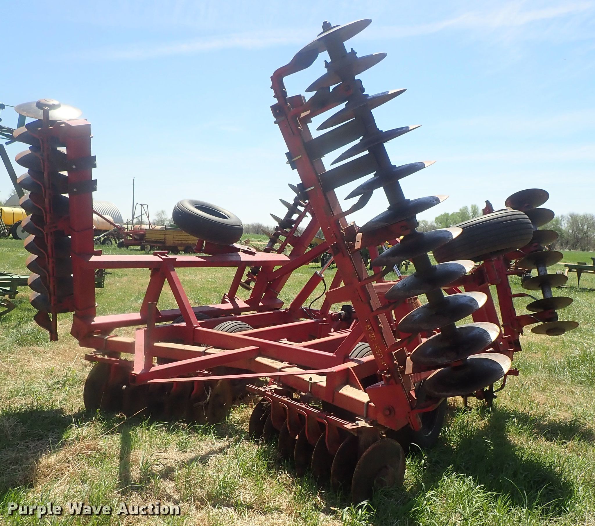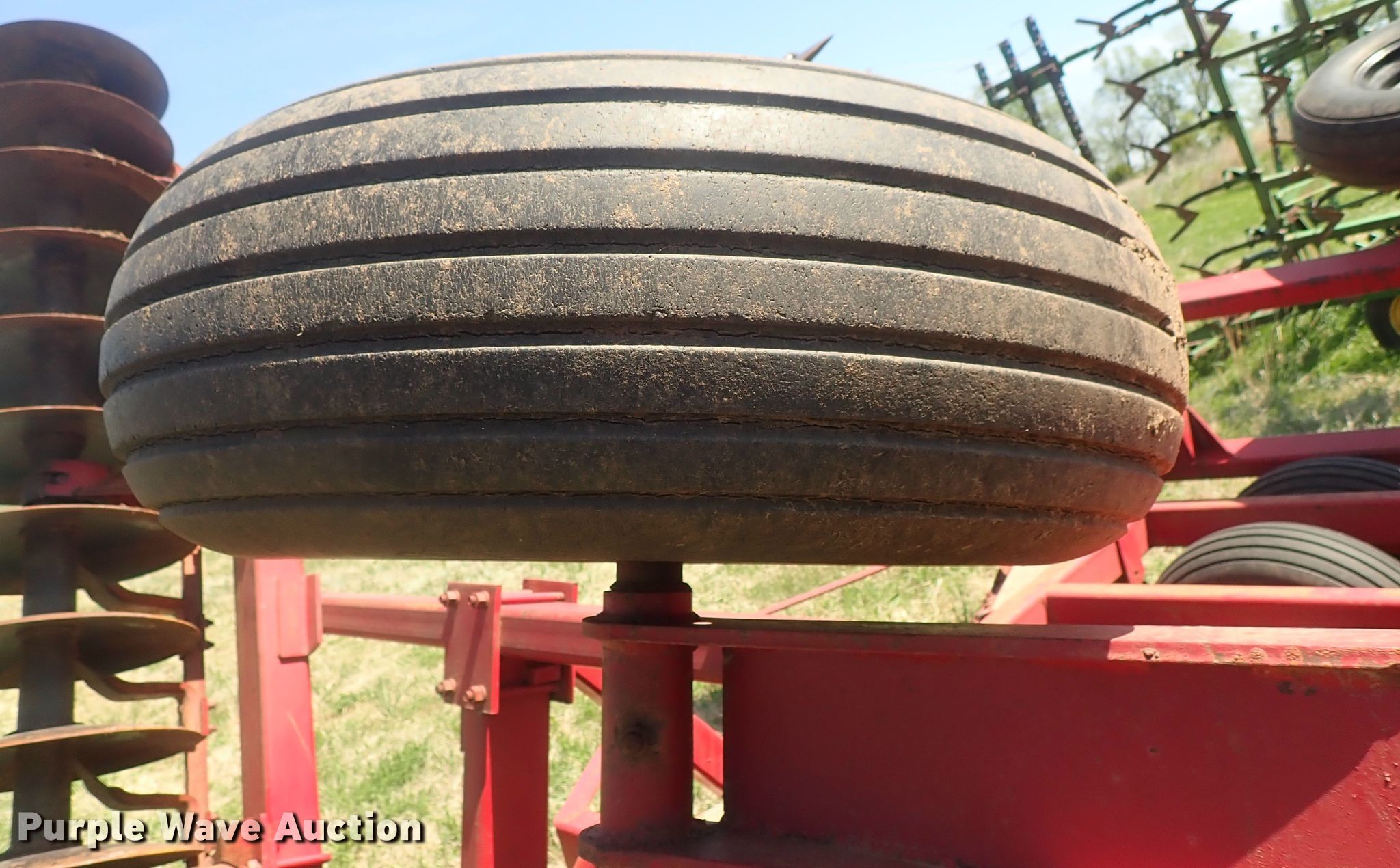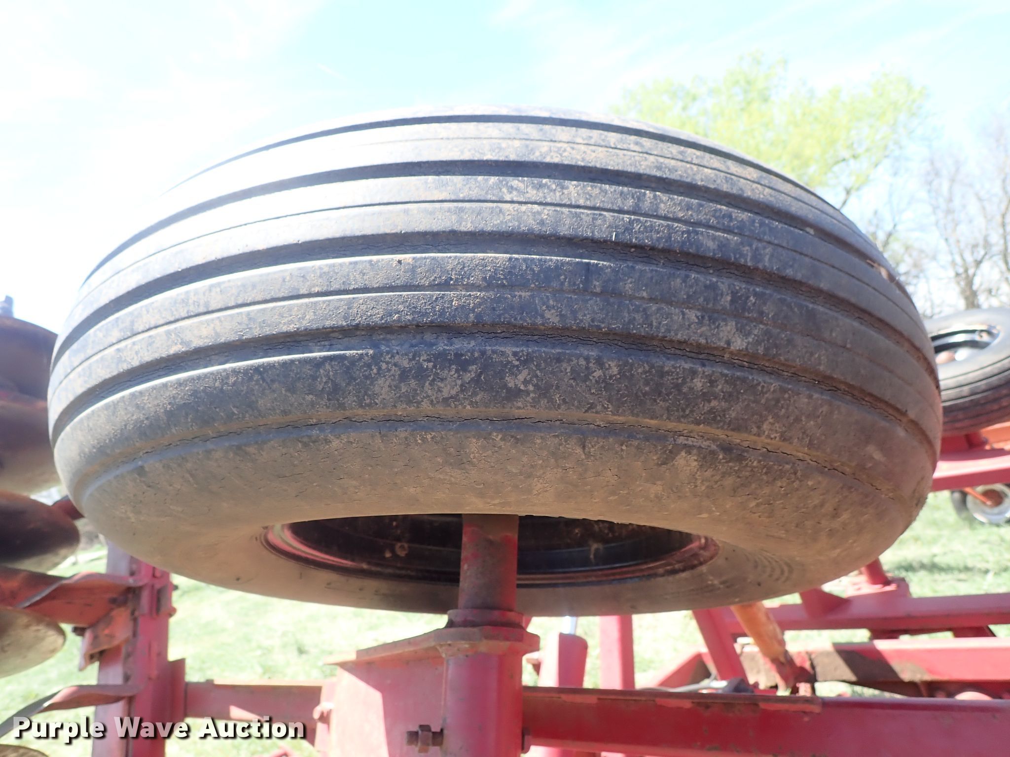Purple Wave is selling a used Disk in Kansas. This item is a Bush Hog disk with the following: 24'W, 17" diameter front disks, 20" diameter rear disks, Hydraulic lift and fold, 11L-15 tires