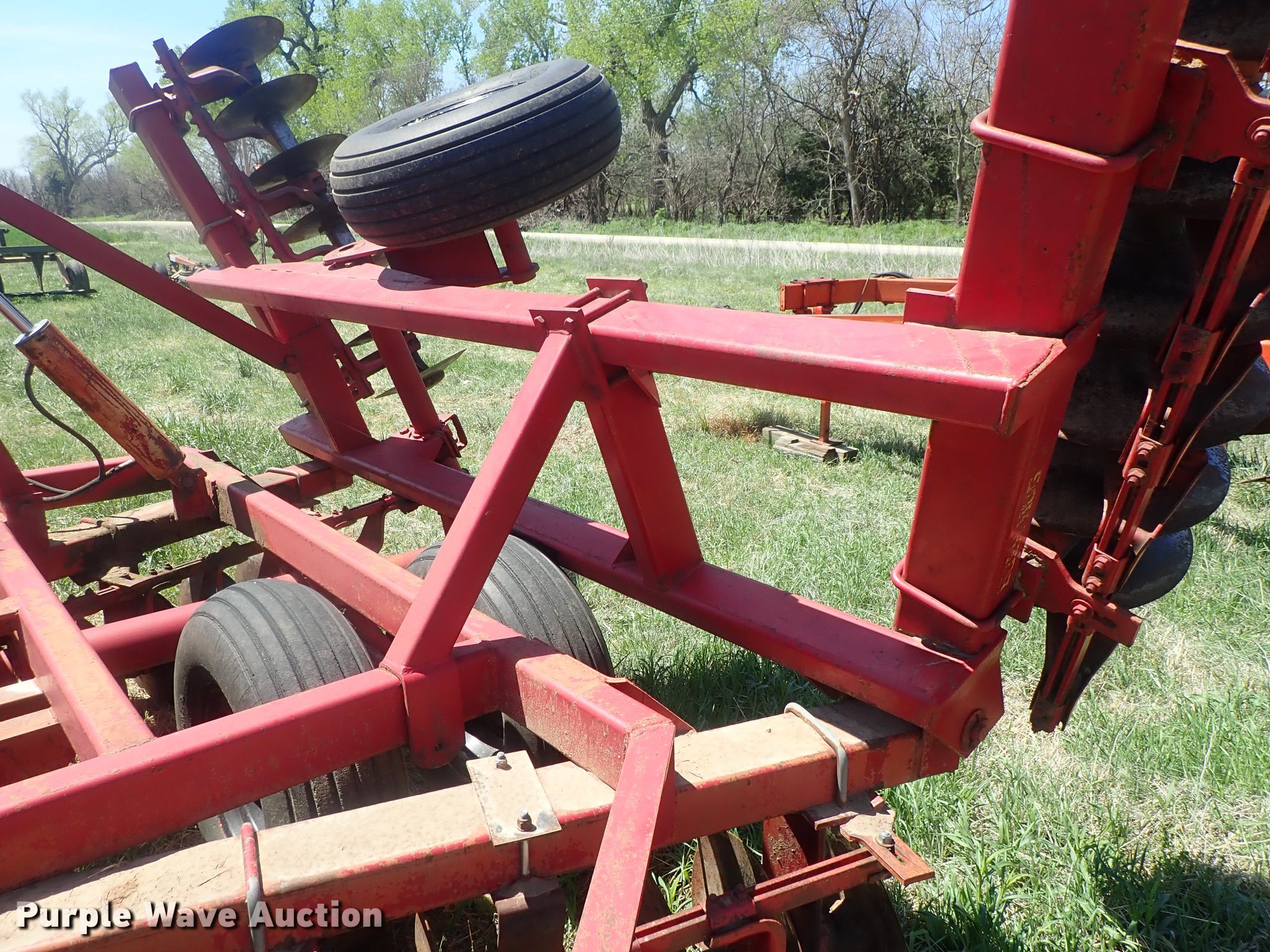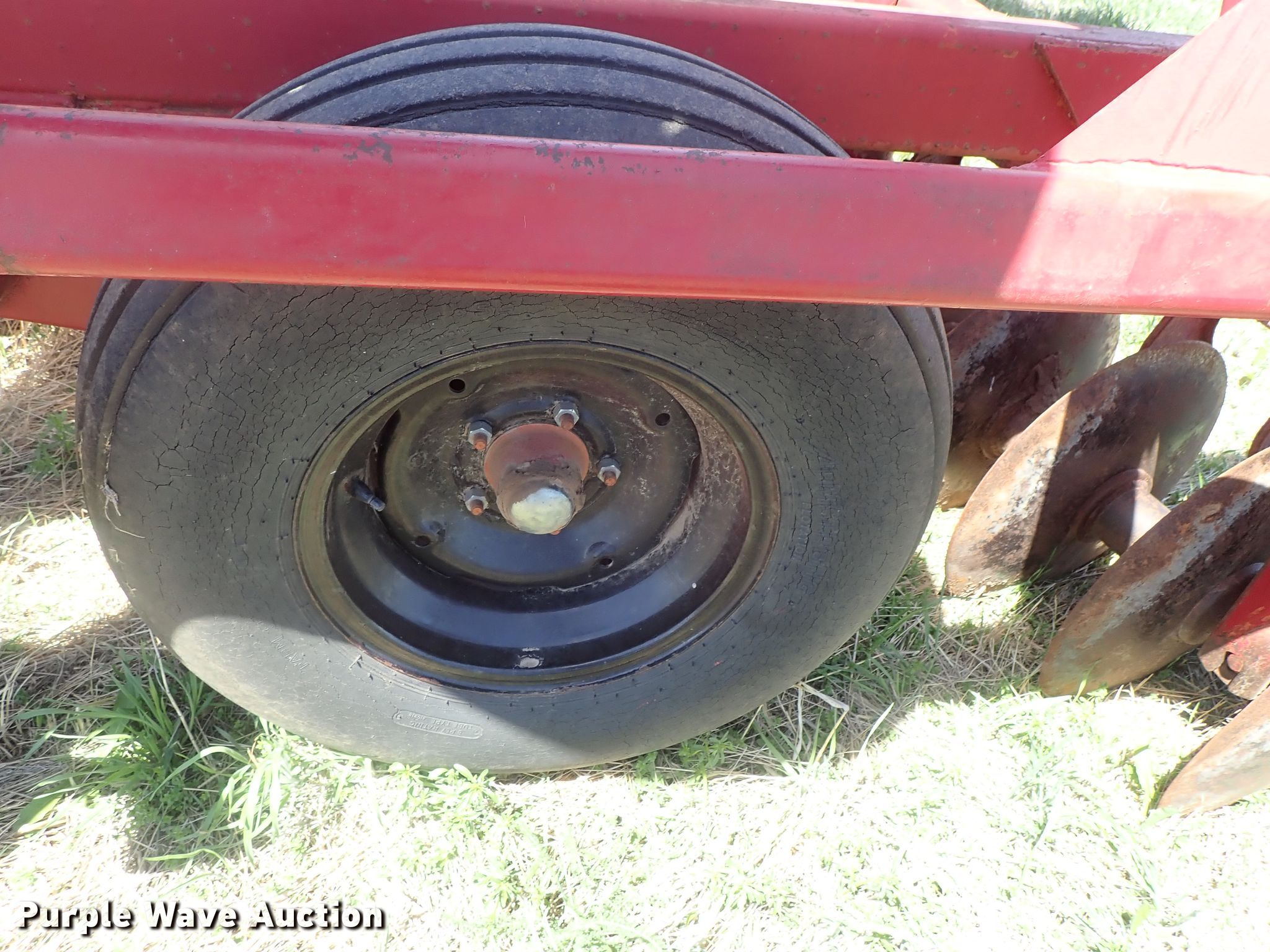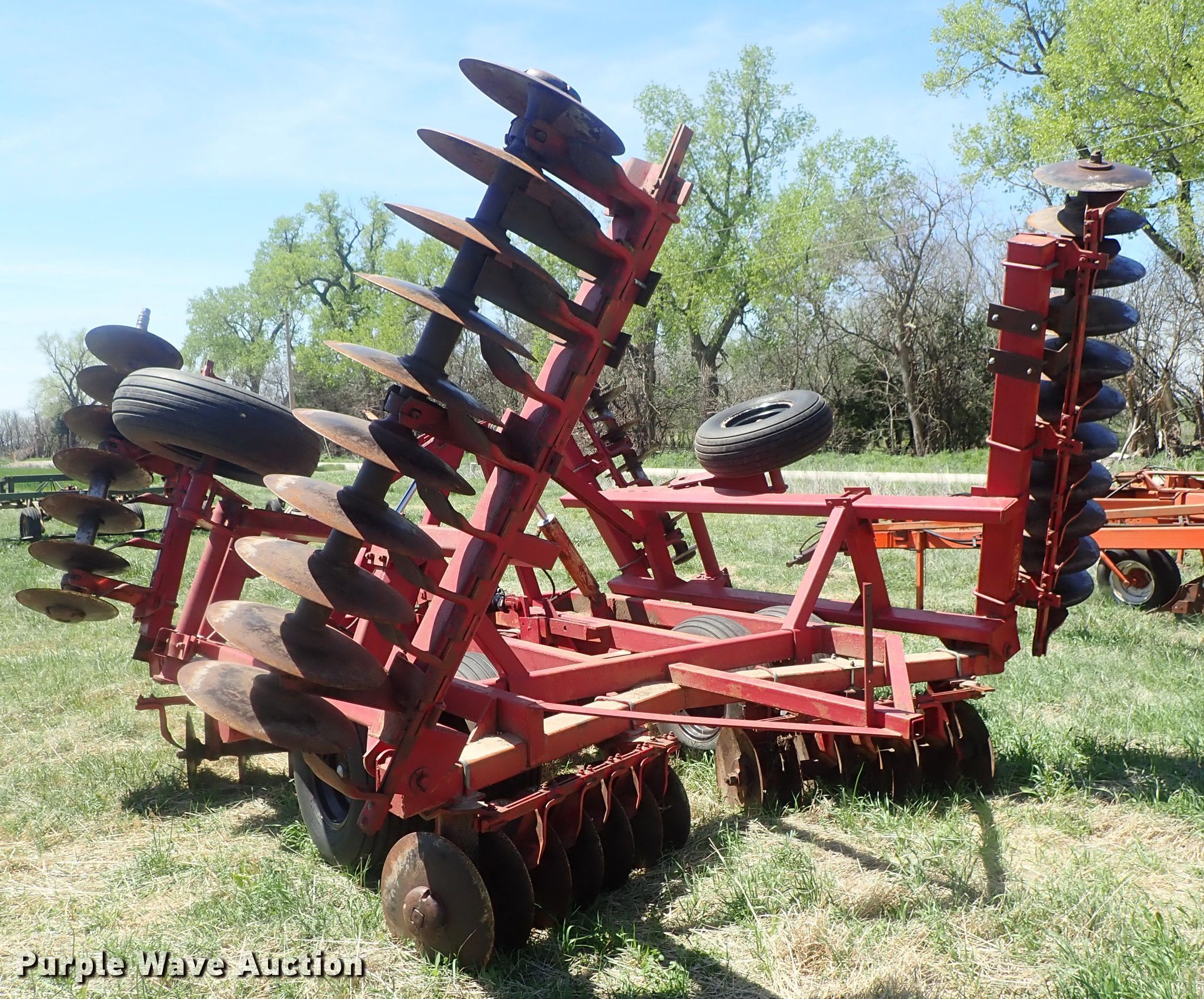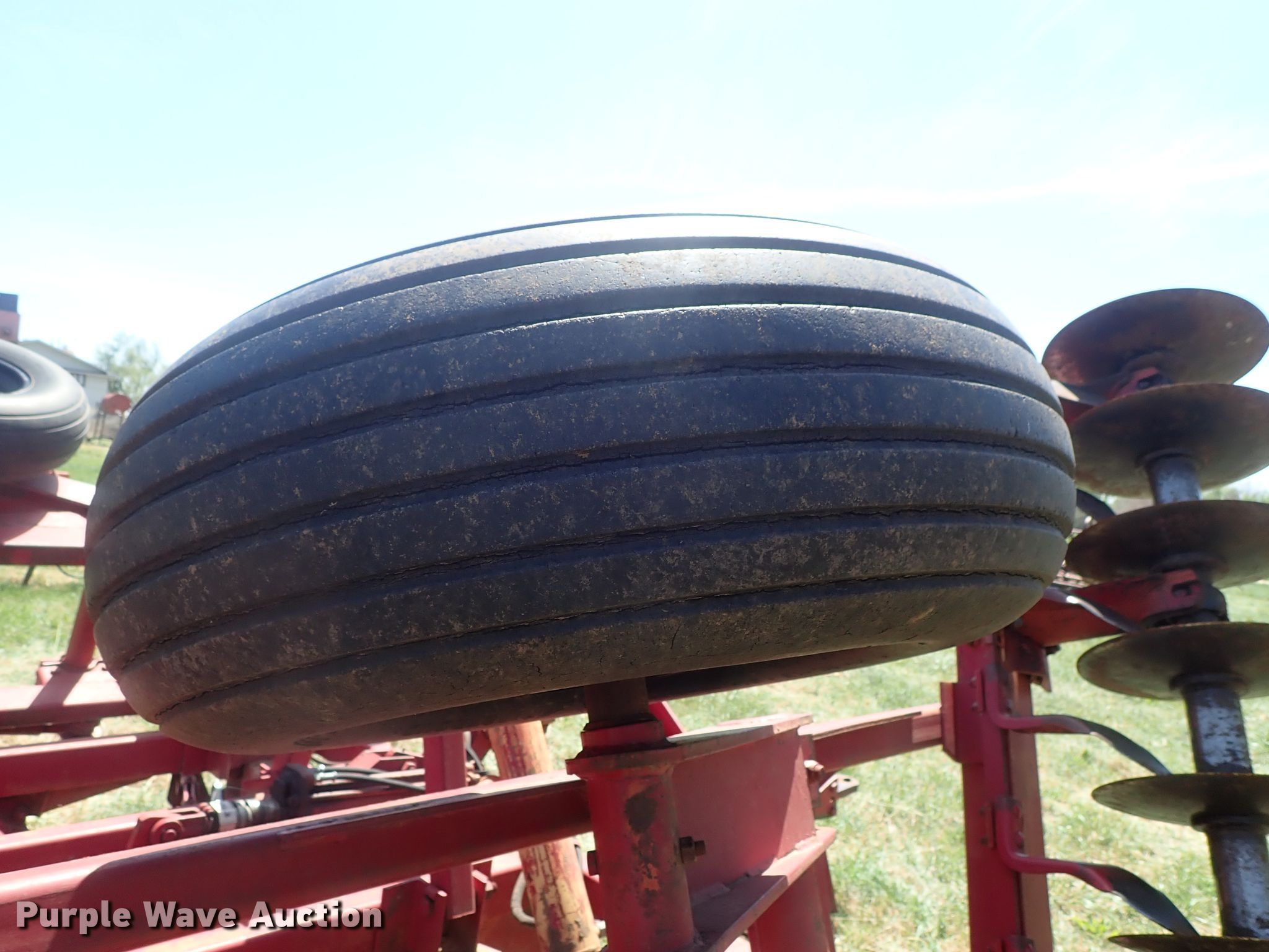 Purple Wave is selling a used Disk in Kansas. This item is a Bush Hog disk with the following: 24'W, 17" diameter front disks, 20" diameter rear disks, Hydraulic lift and fold, 11L-15 tires