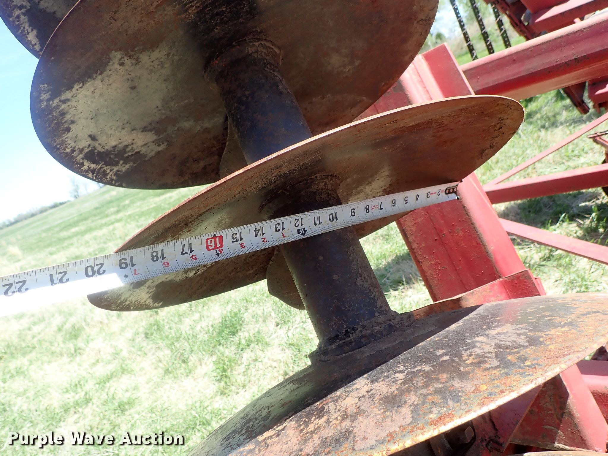 Bush Hog disk. 24'W, 17" diameter front disks, 20" diameter rear disks, Hydraulic lift and fold, 11L-15 tires. Inman, KS 67546