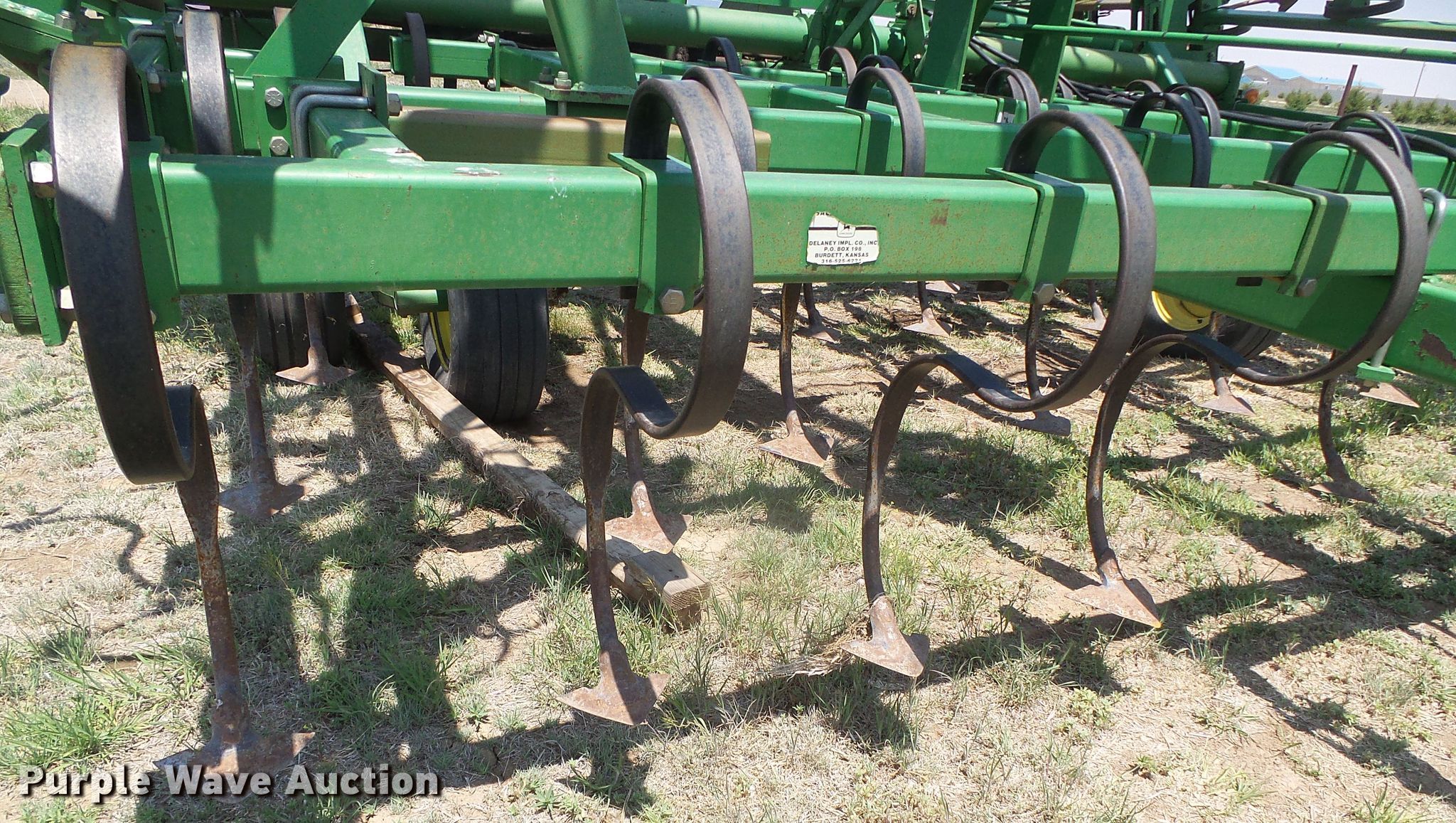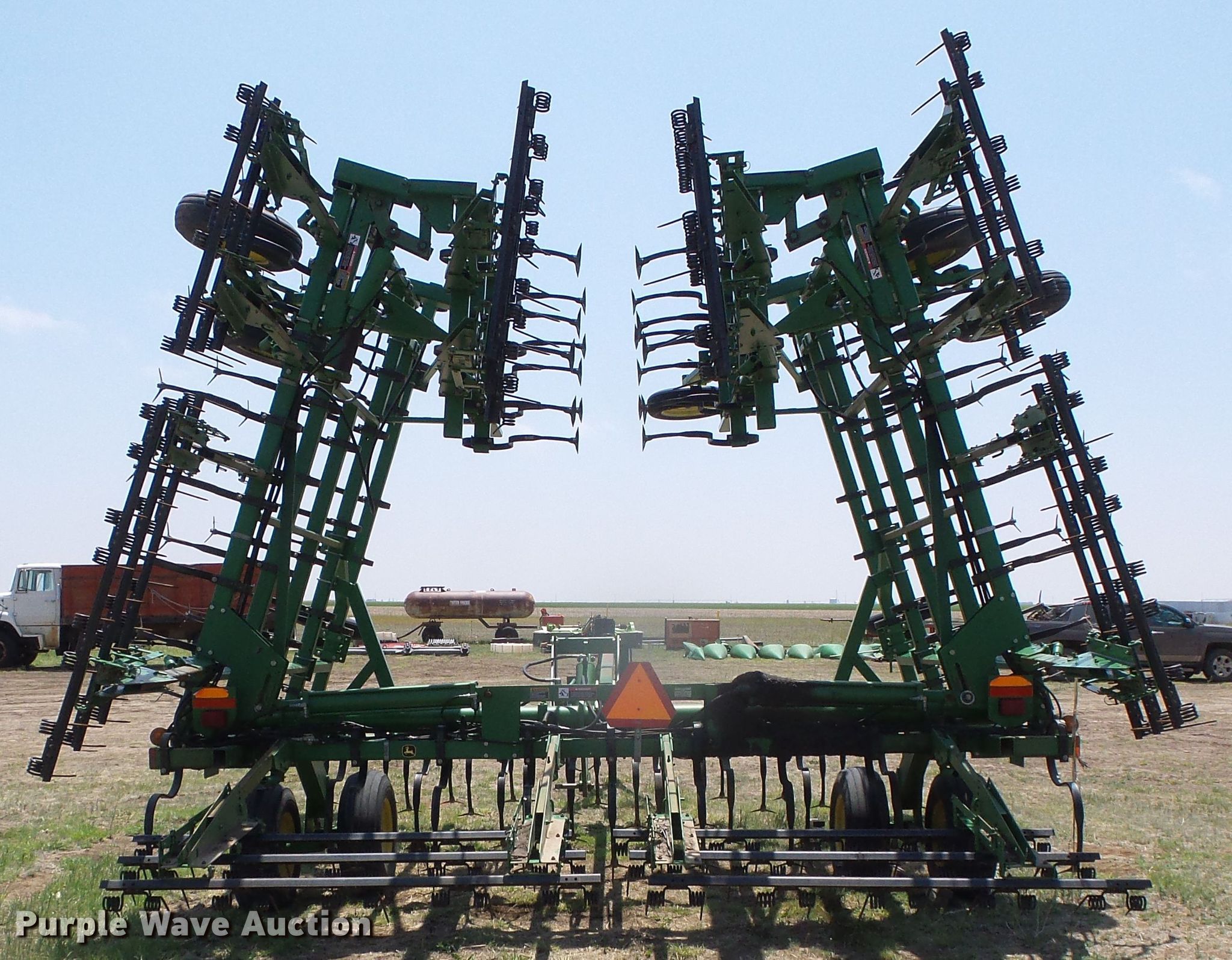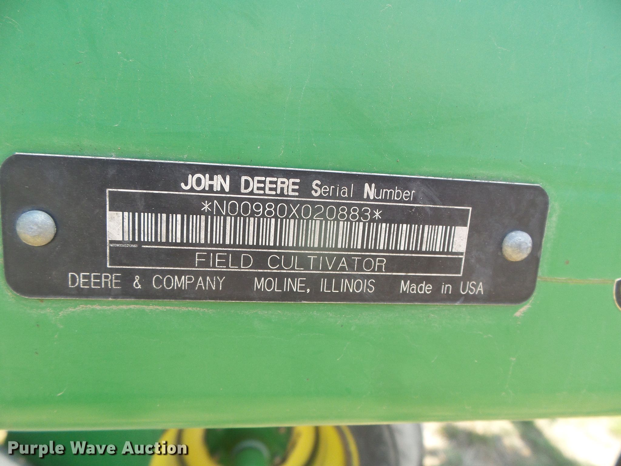 Purple Wave is selling a used Field Cultivator or Sweep Plow in Kansas. This item is a John Deere 980 field cultivator with the following: 45'W, 10" spacing, Three bar tine harrow, Manual leveler, Hydraulic lift and fold, 11L-15 tires, Serial N00980X020883