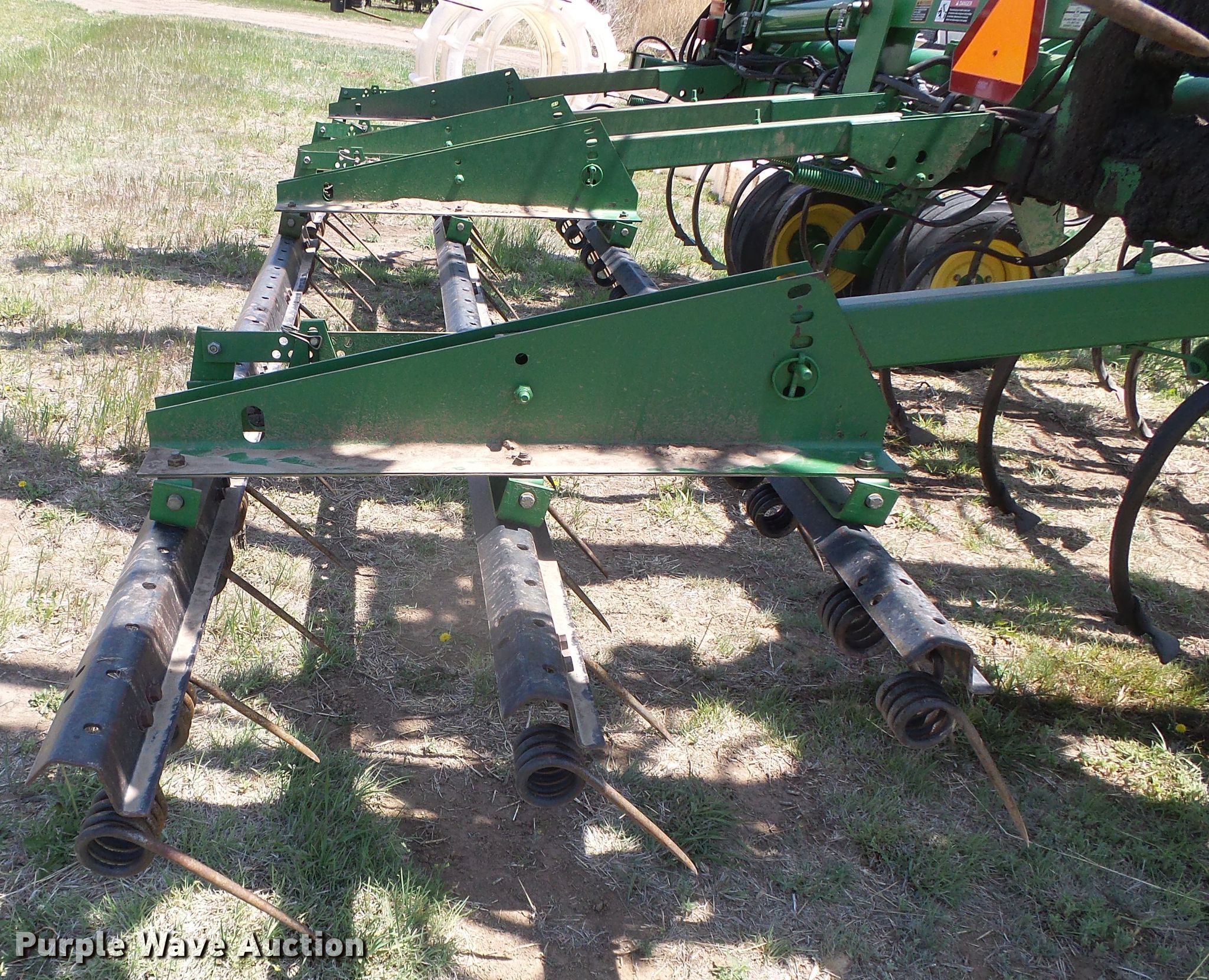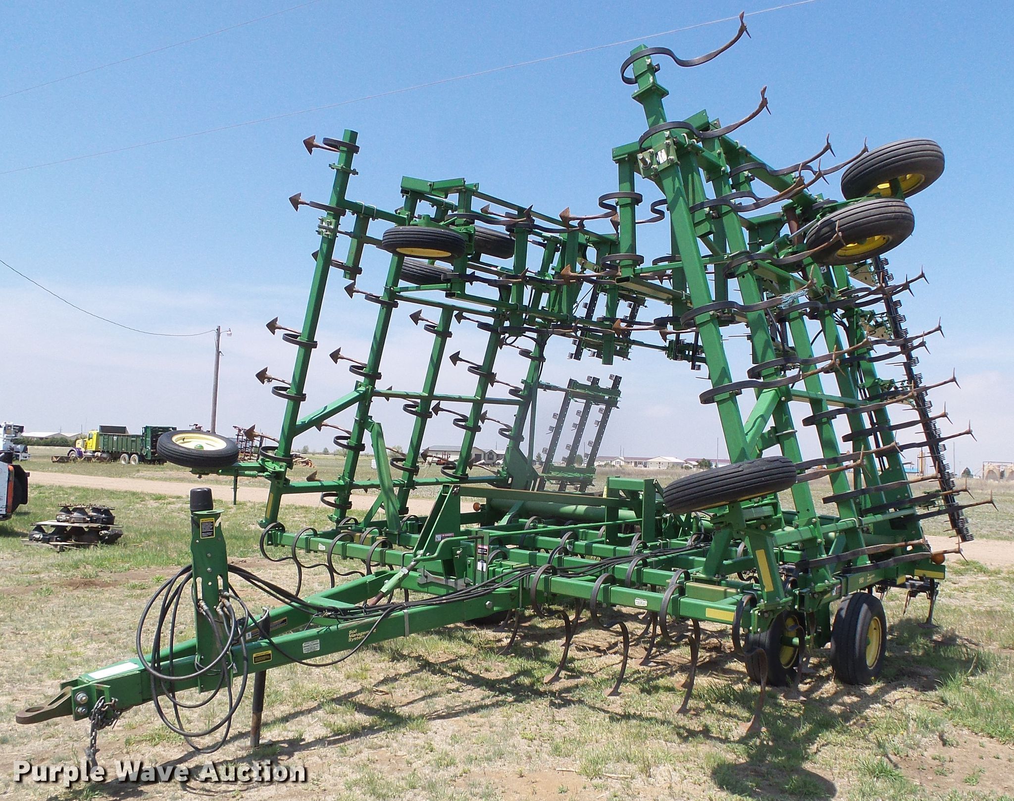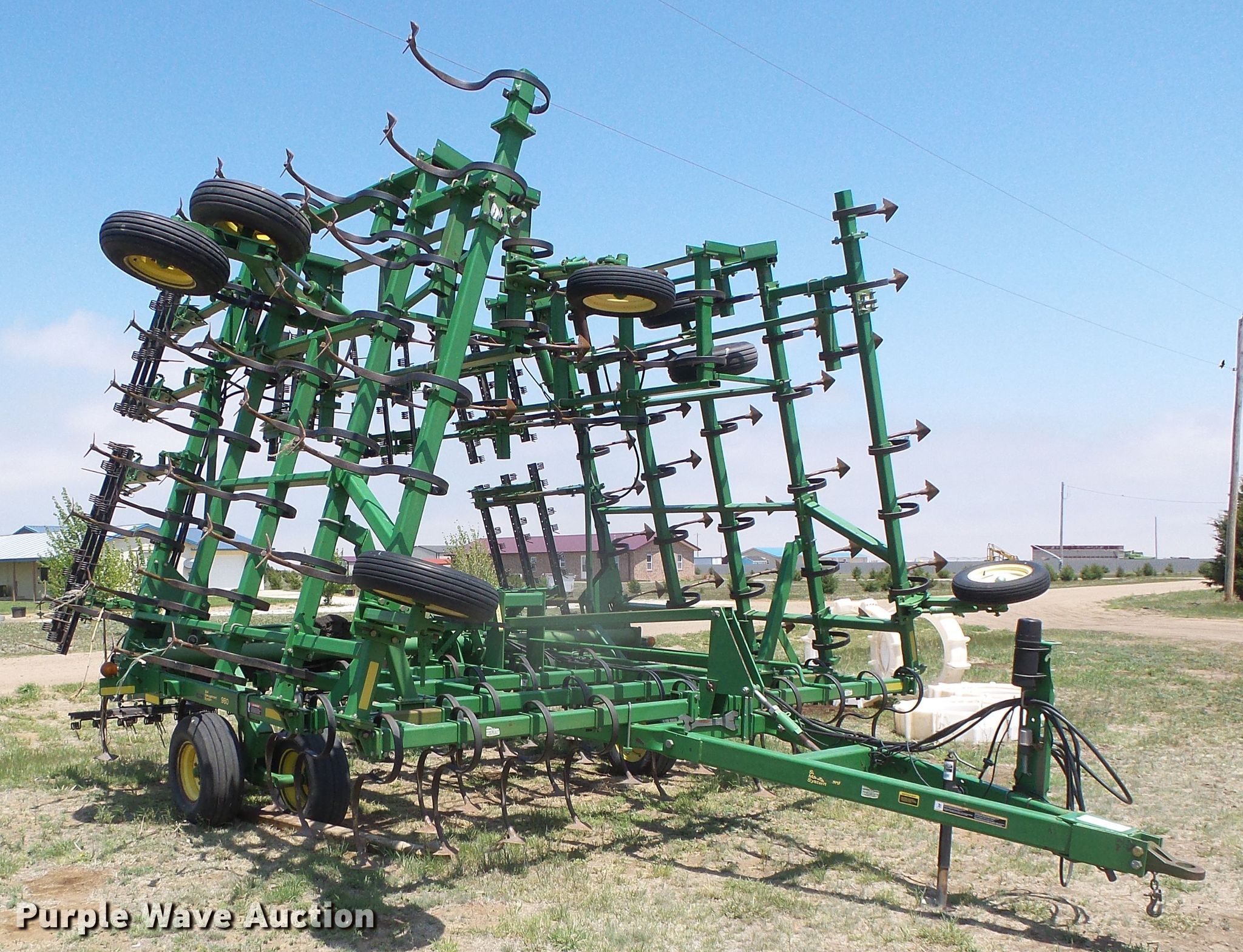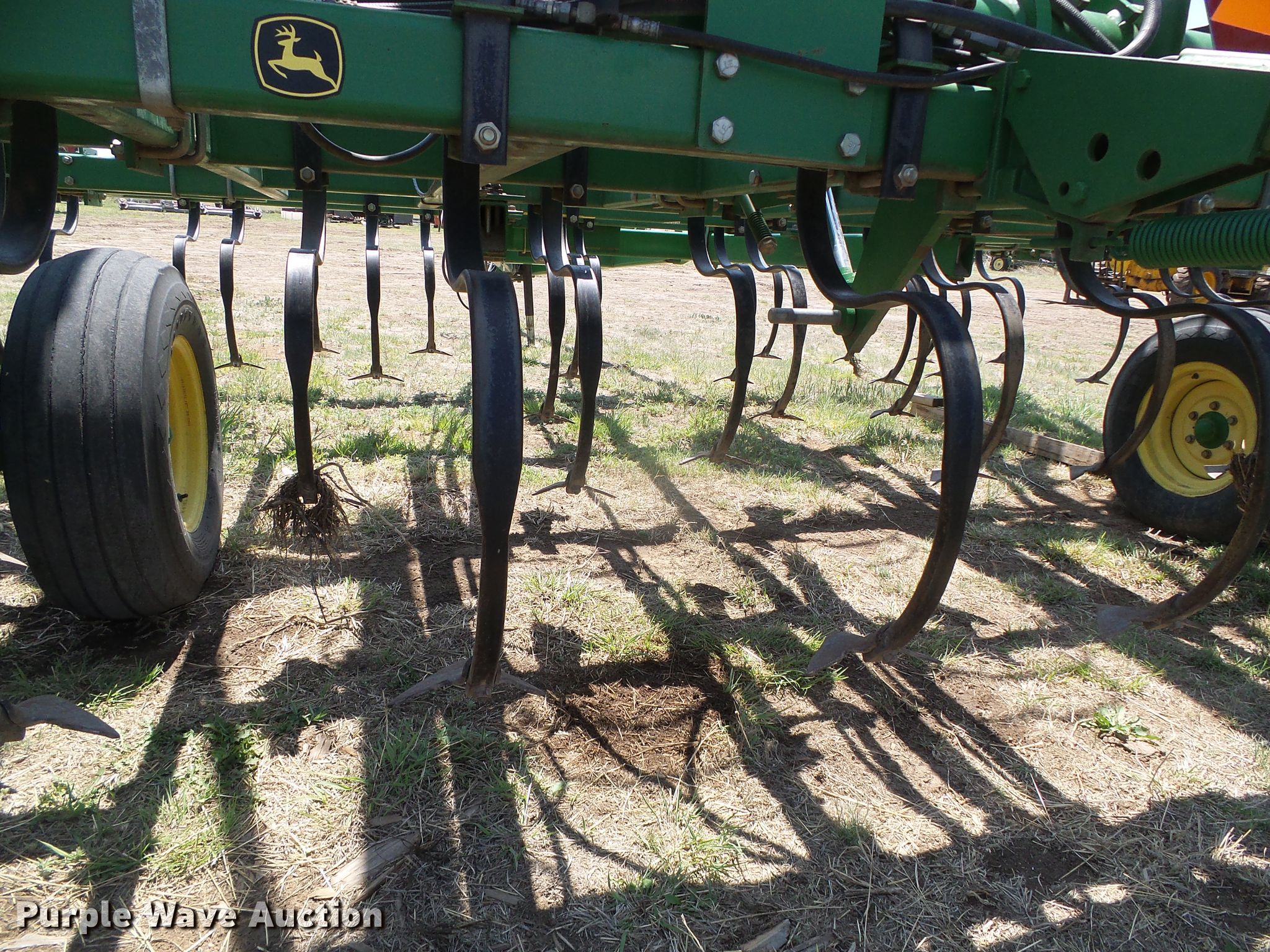 Purple Wave is selling a used Field Cultivator or Sweep Plow in Kansas. This item is a John Deere 980 field cultivator with the following: 45'W, 10" spacing, Three bar tine harrow, Manual leveler, Hydraulic lift and fold, 11L-15 tires, Serial N00980X020883
