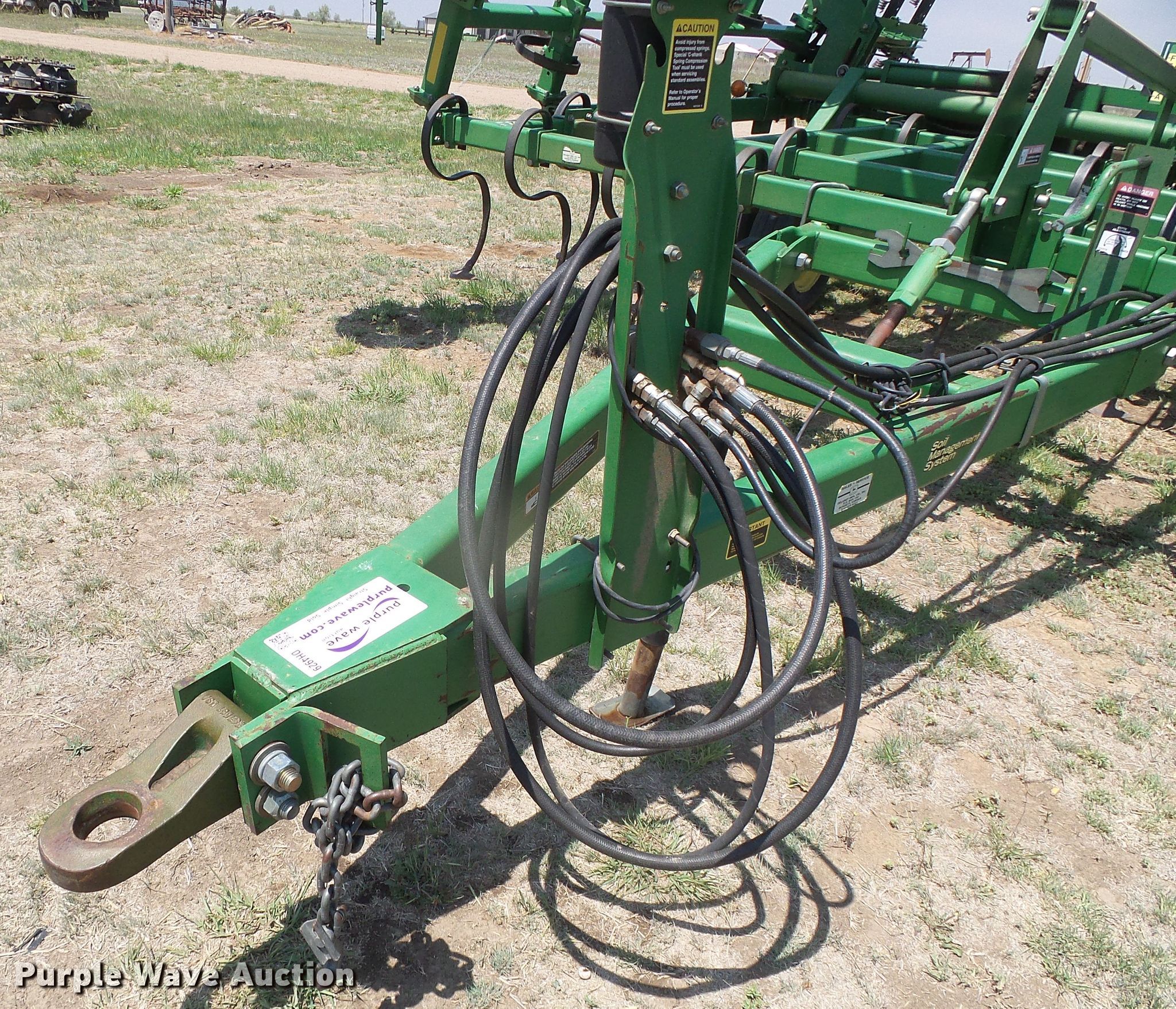 John Deere 980 field cultivator. 45'W, 10" spacing, Three bar tine harrow, Manual leveler, Hydraulic lift and fold, 11L-15 tires, Serial N00980X020883. 1587 Cottonwood. Sublette, KS 67877
