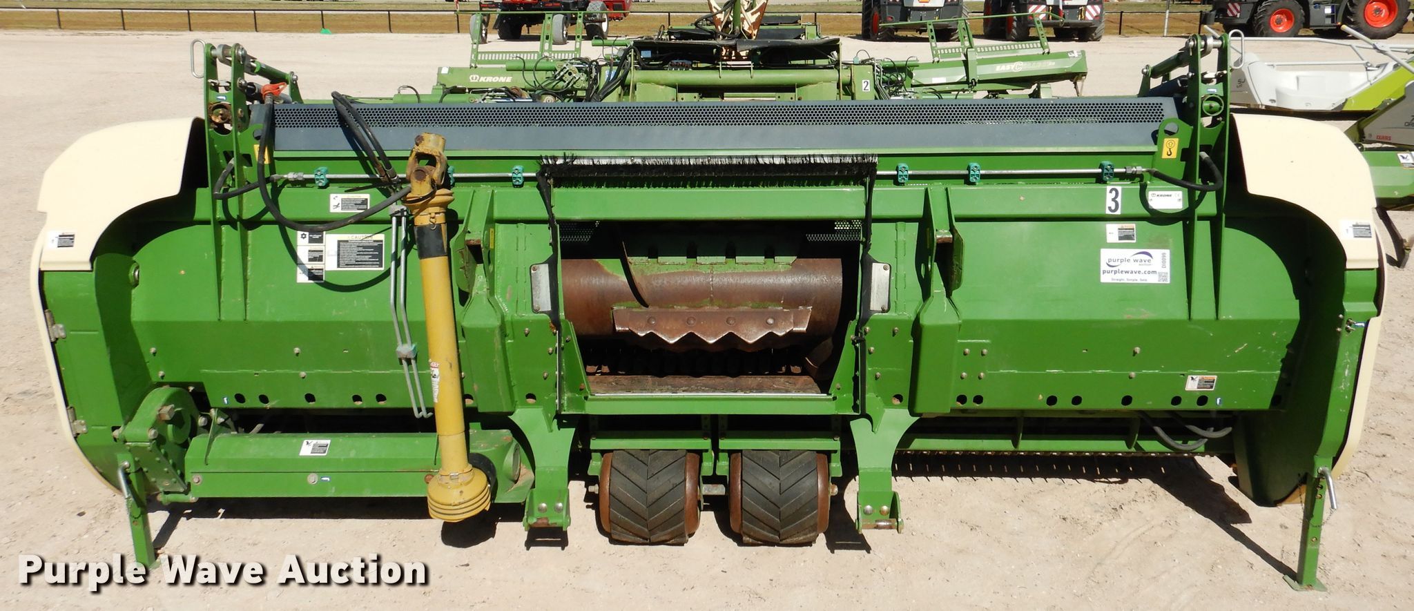 Purple Wave is selling a used Forage Head or Silage Handling in Texas. This item is a 2013 Krone Easy Flow 380 pickup head with the following: 13'W, Crop roller, Gauge wheels, Single driveline, 18x8.50-8 tires, Serial 858907