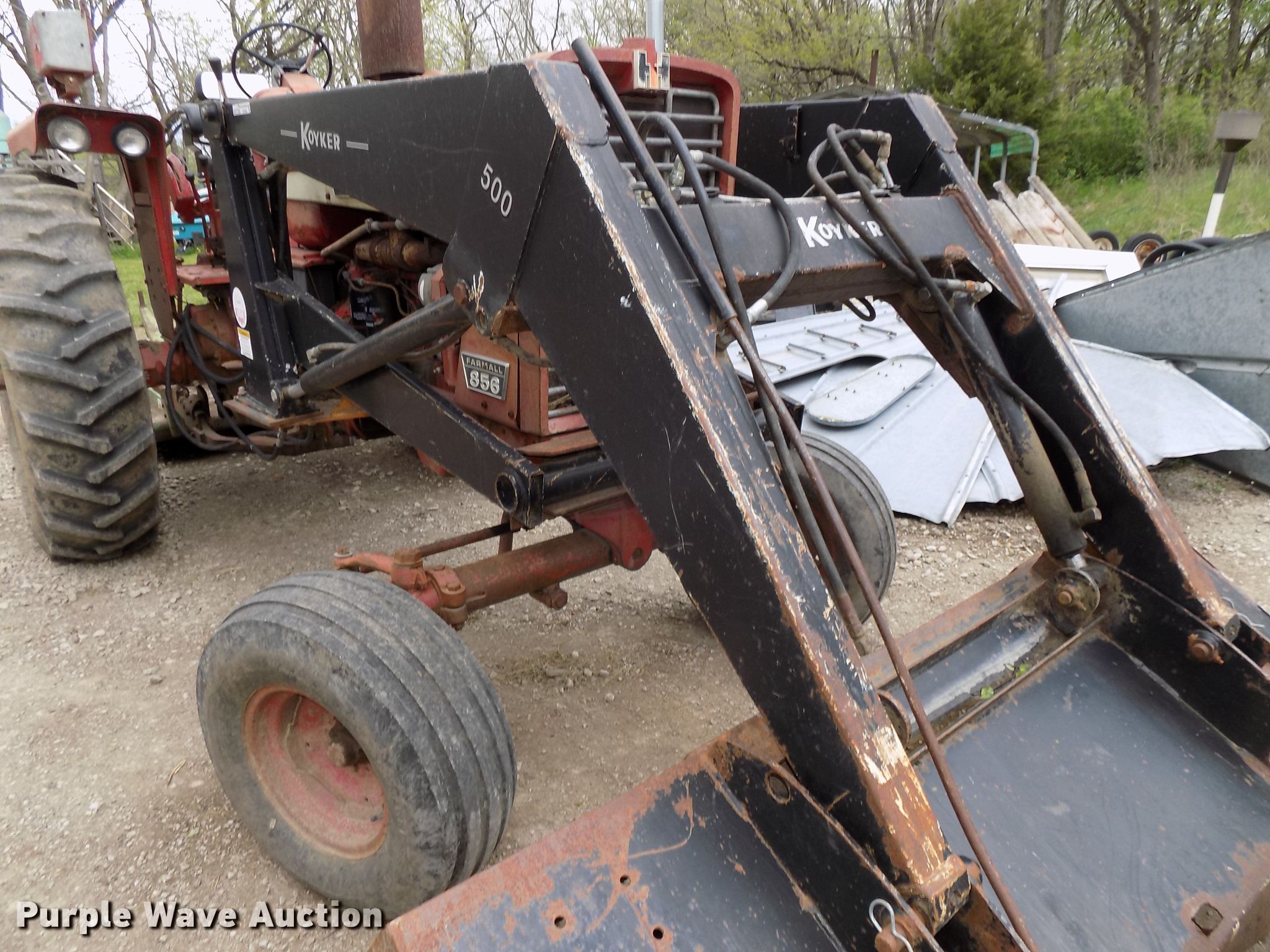 Purple Wave is selling a used Tractor in Iowa. This item is a 1970 Farmall 856 tractor with the following: International six cylinder diesel engine, Sliding gear transmission, 8F-4R gears, Koyker 500 loader, 7'W bucket, Three point, Top link, 540 PTO, 11L-15 front tires, 16.9-38 rear tires