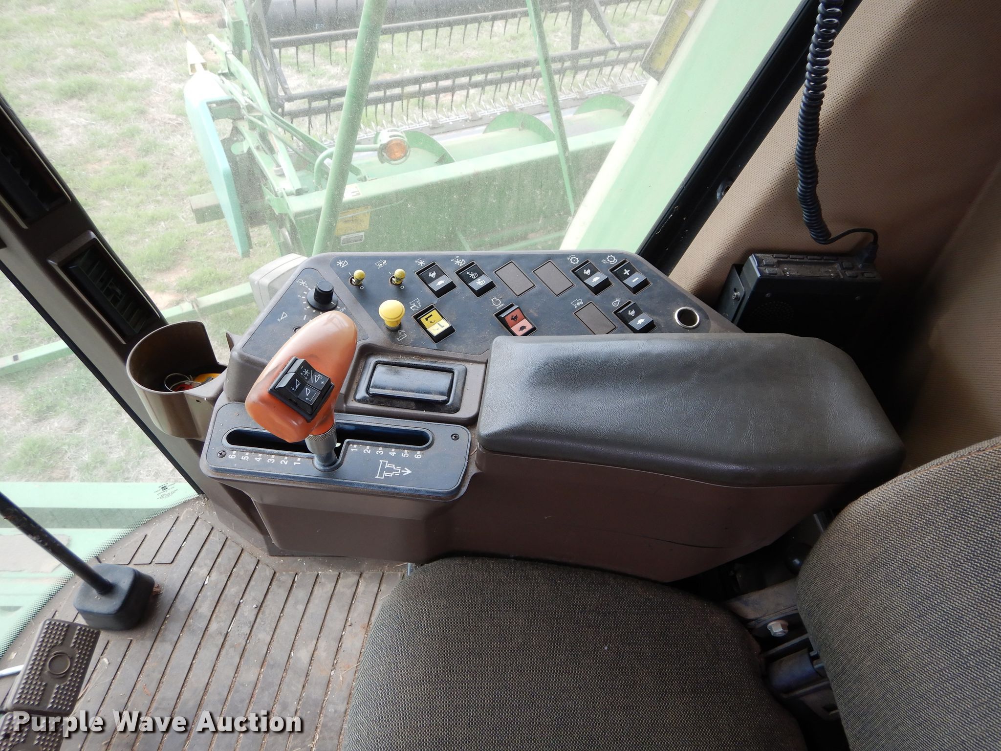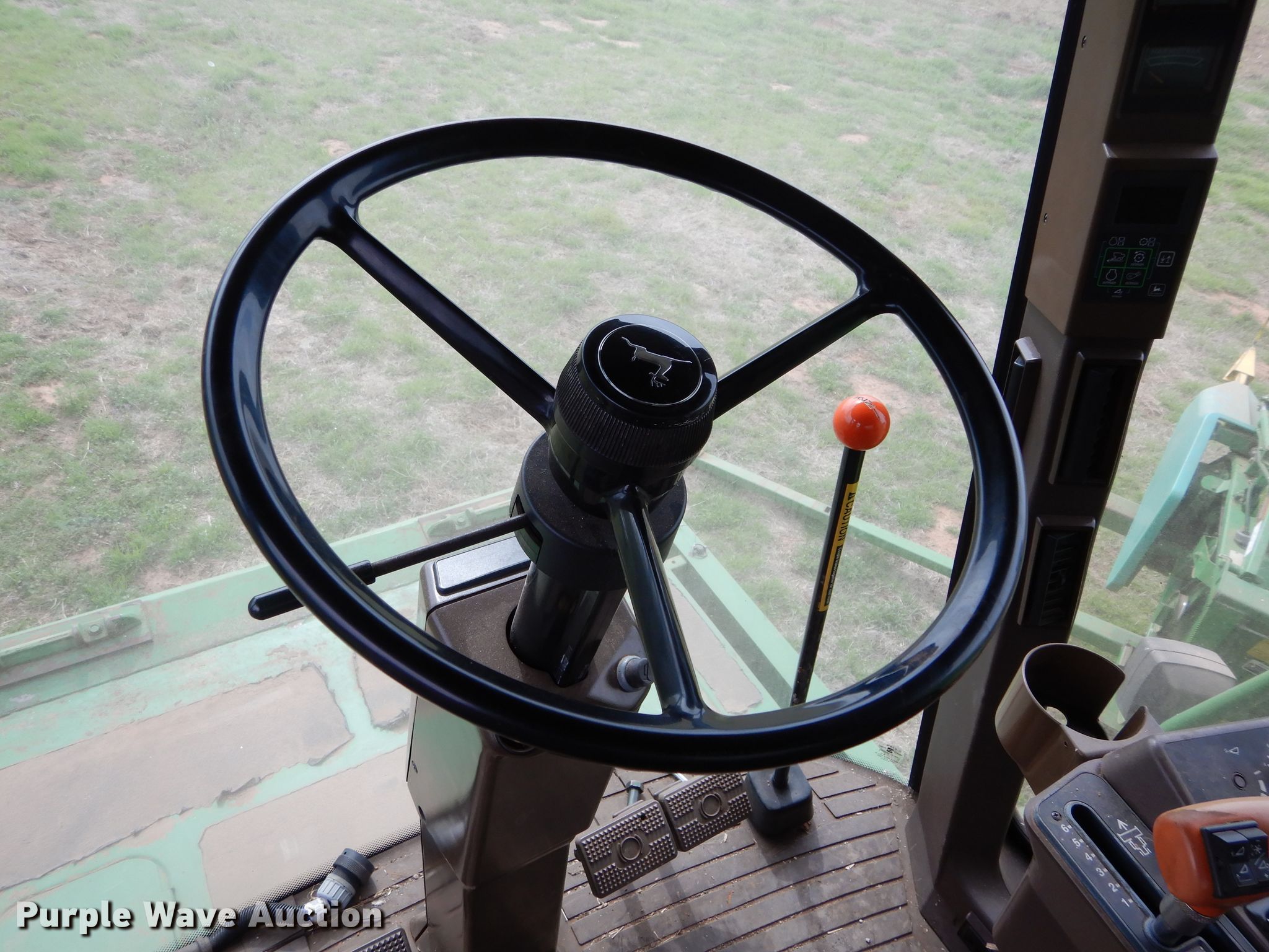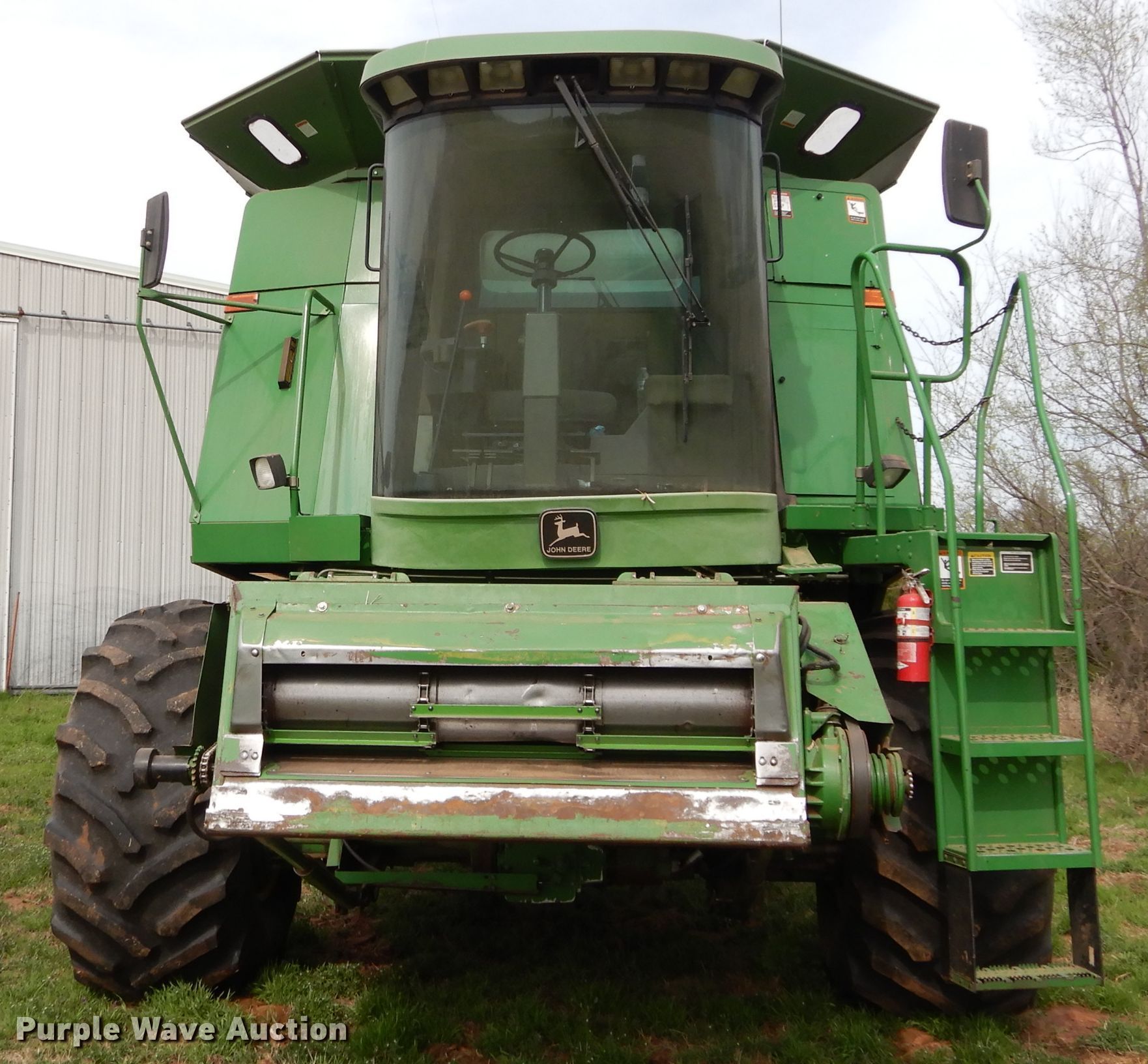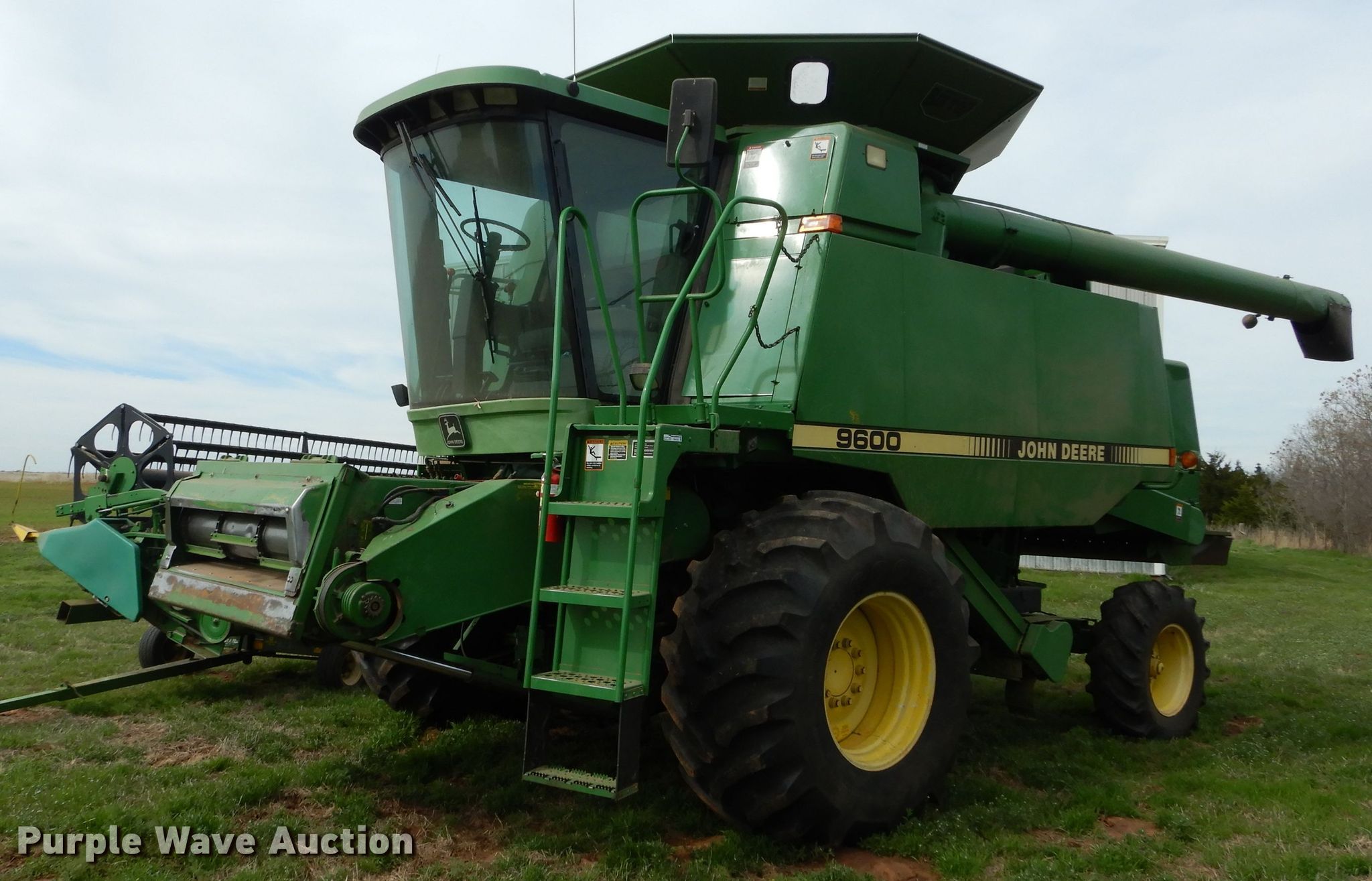 Purple Wave is selling a used Combine in Oklahoma. This item is a 1996 John Deere 9600 combine with the following: Unknown engine hours, Estimated 3,000 to 3,500 separator hours, Six cylinder diesel engine, Hydrostatic transmission, Feederhouse, Reverser, AC and heat, Round concaves, Bin extensions, 30.5L-32 front tires, 14.9-24 rear tires, Serial H09600X665358