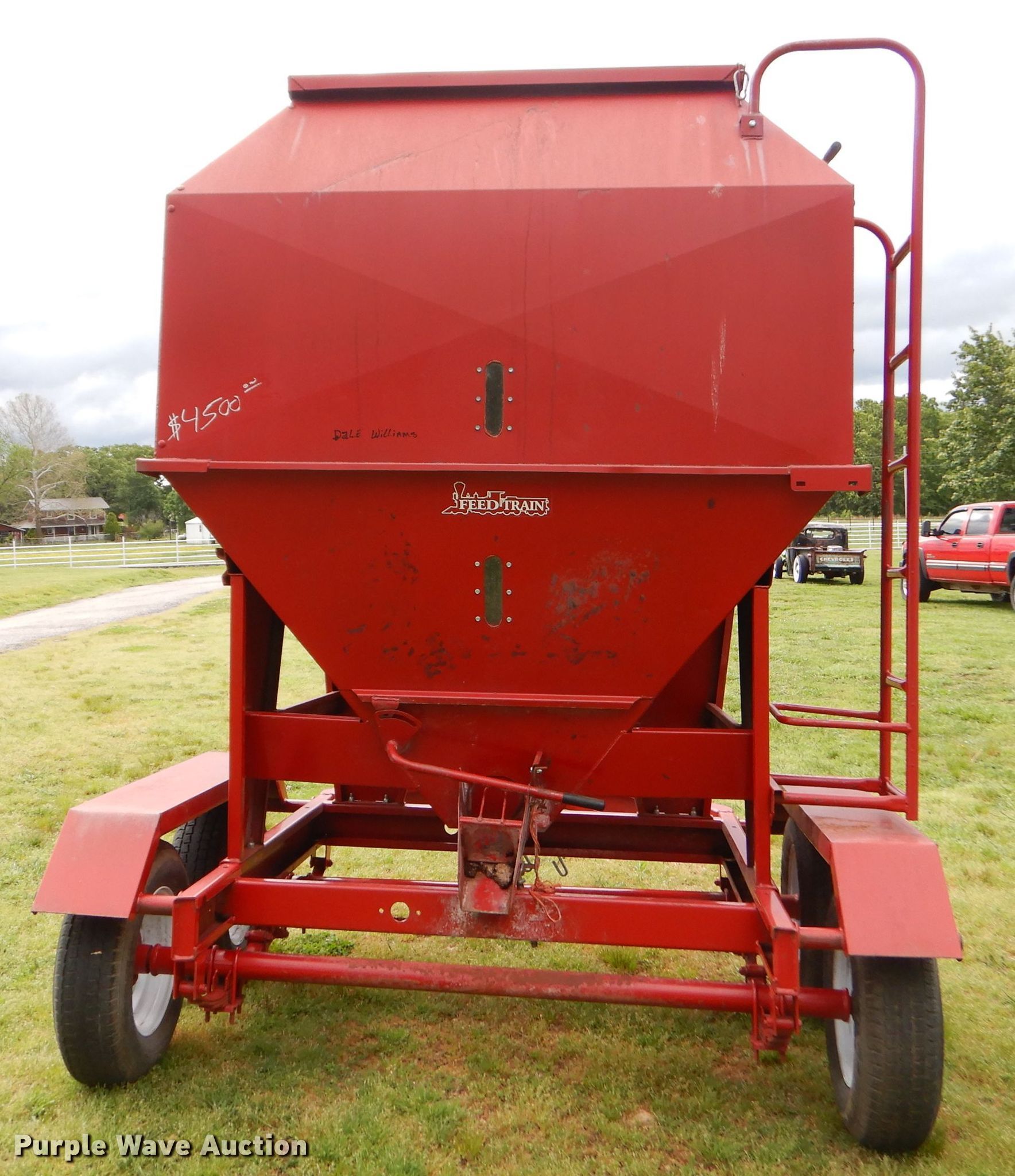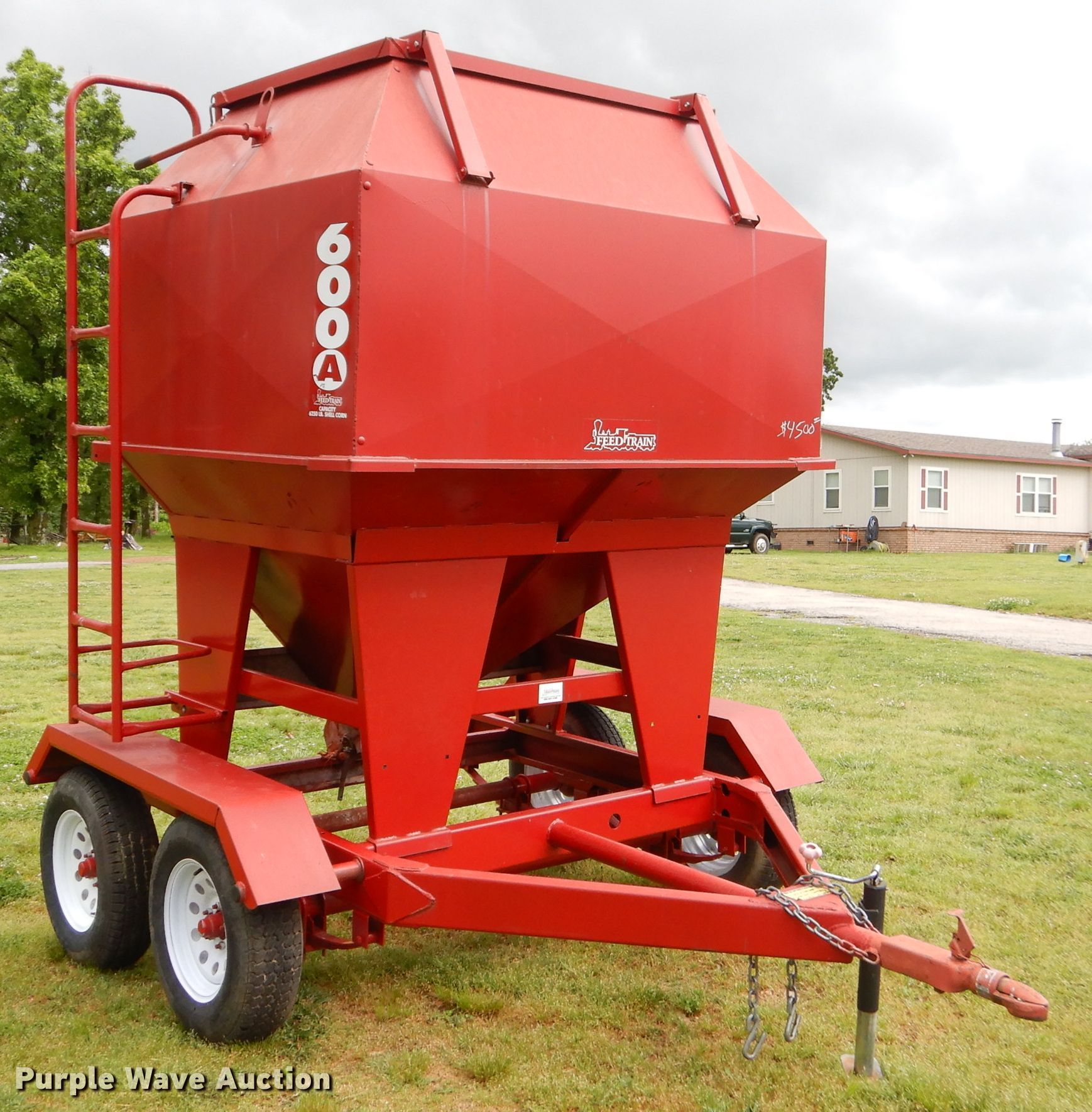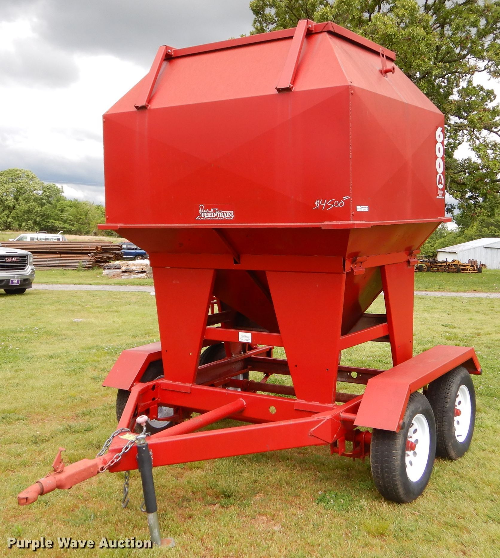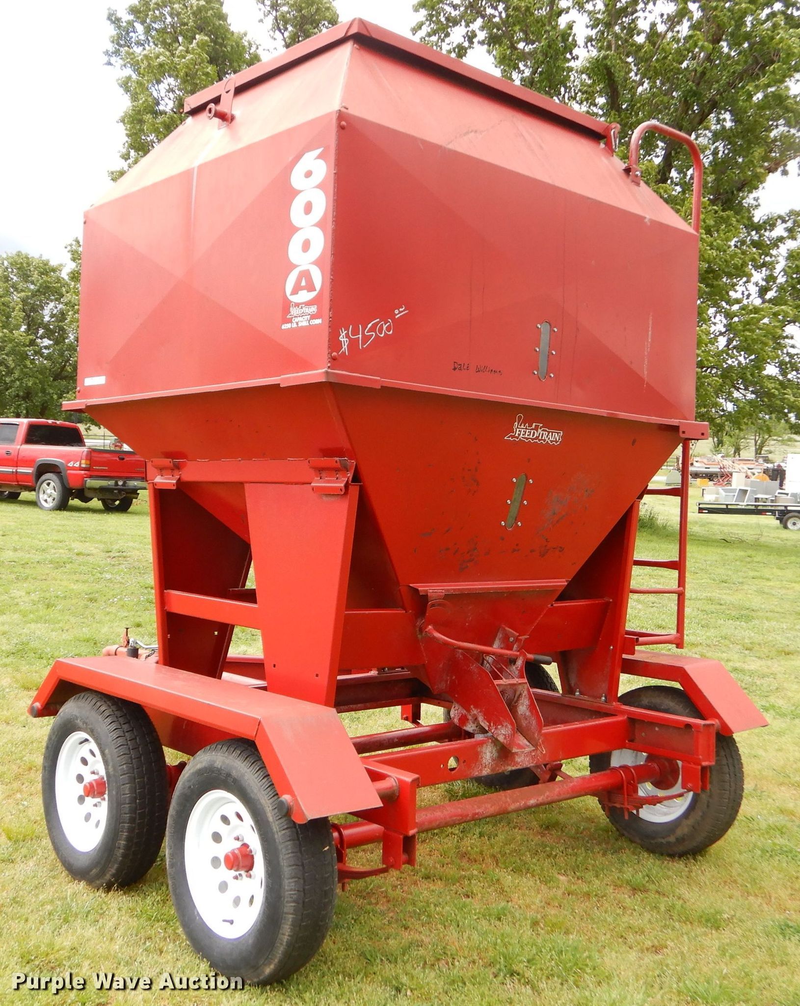 Purple Wave is selling a used Fertilizer or Seed Tender in Oklahoma. This item is a Feed Train 600A seed tender with the following: 6,250 lbs capacity, Manual shut-off gate, Roll tarp, Sight glass, 2" ball hitch, 205/75D14 tires