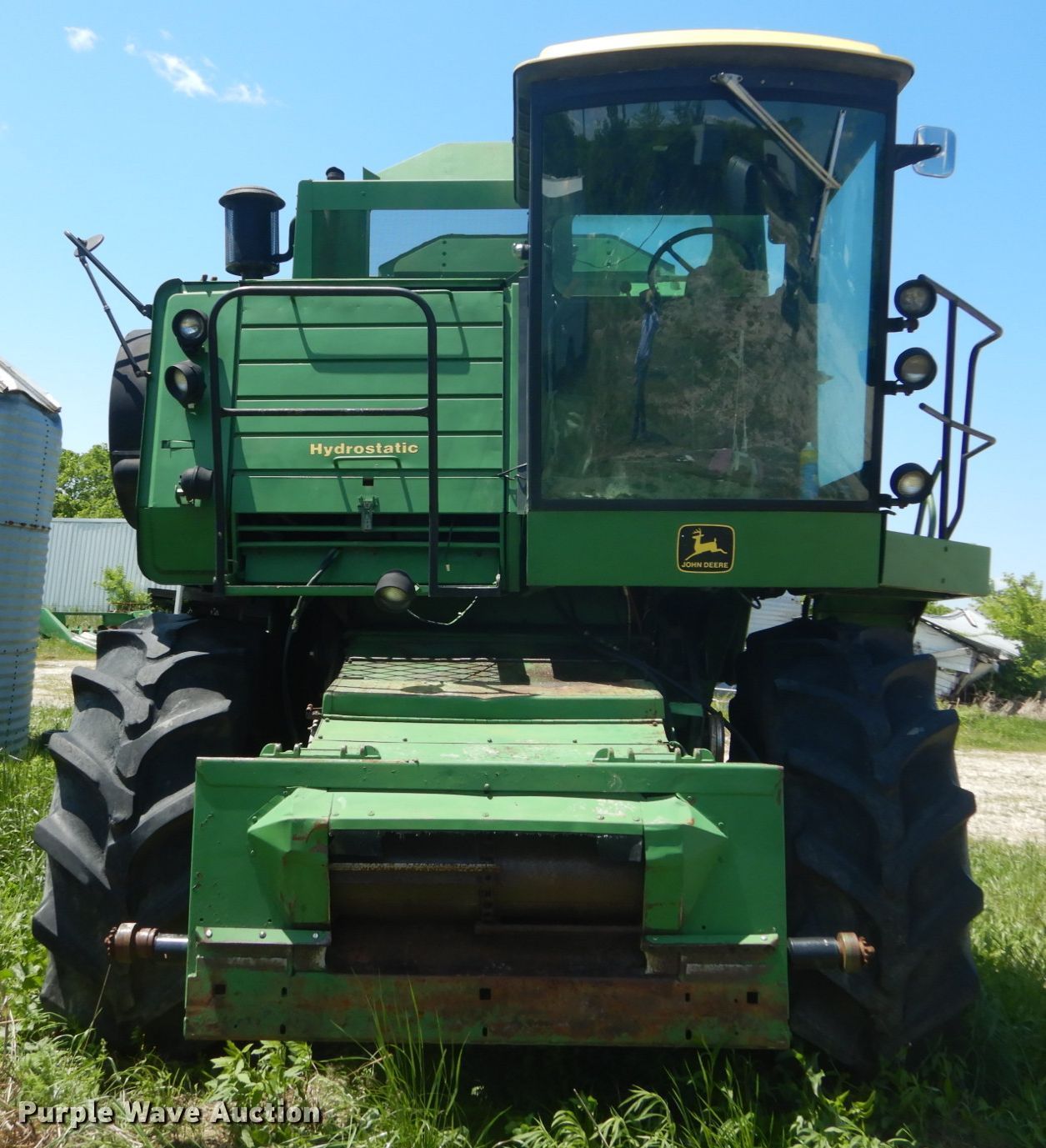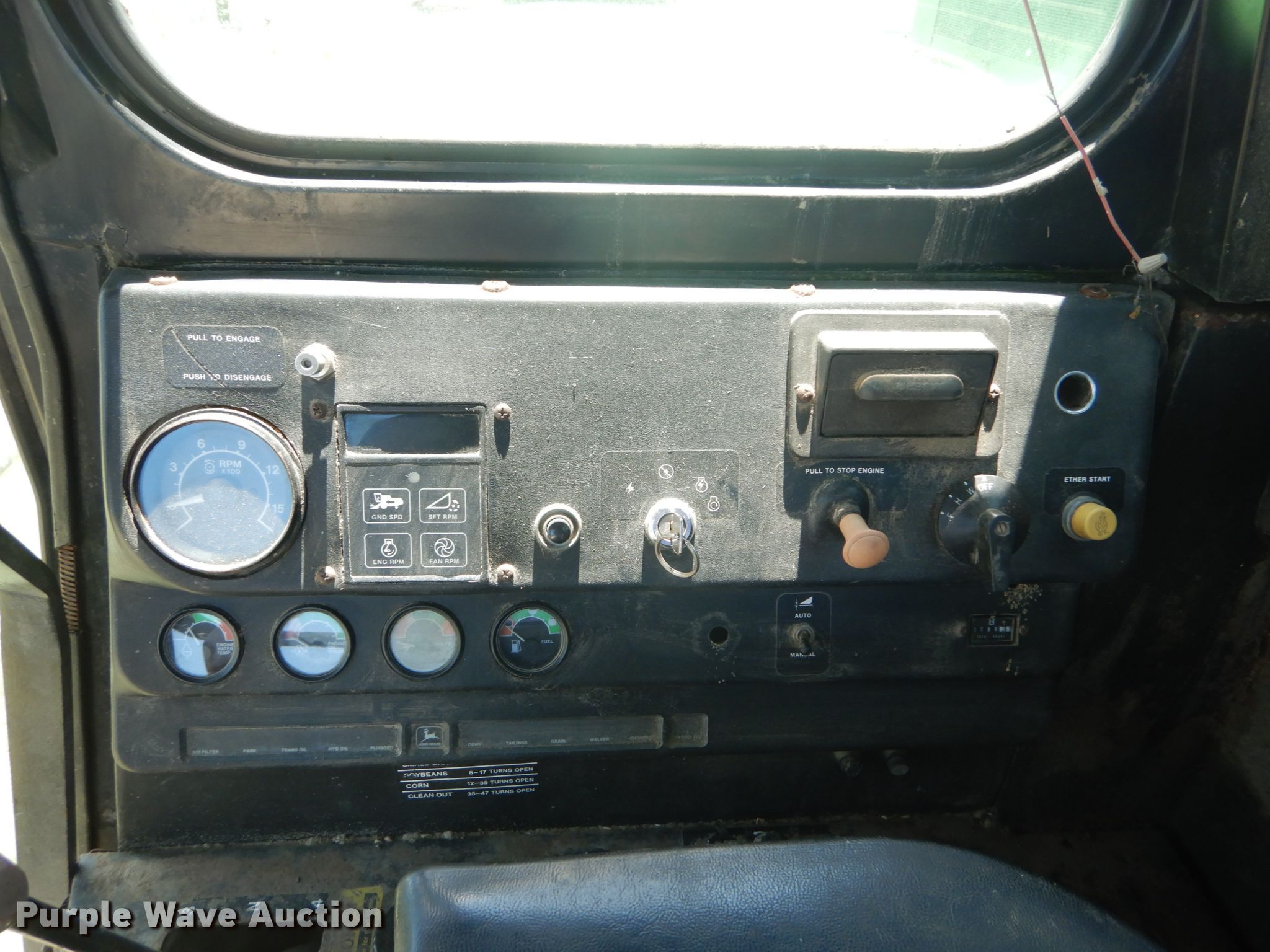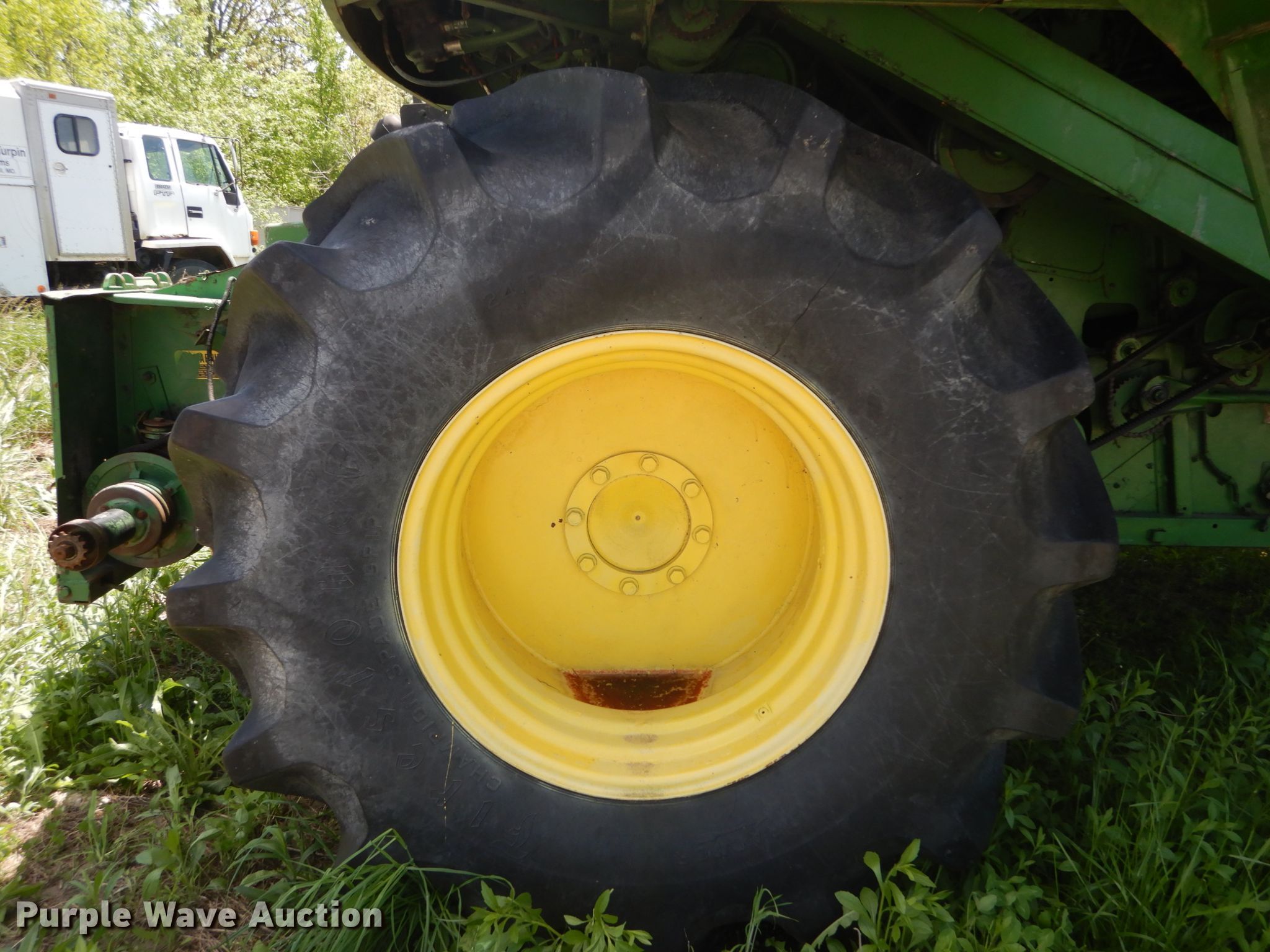 Purple Wave is selling a used Combine in Missouri. This item is a John Deere 6620 combine with the following: 3,286 engine hours on meter, John Deere six cylinder diesel engine, Hydrostatic transmission, 4F-4R gears, AC and heat, Straw chopper, 24.5-32 front tires, 11.2-24 rear tires, Dead battery, Unknown operating condition of AC, Unknown operating condition, Serial 358389