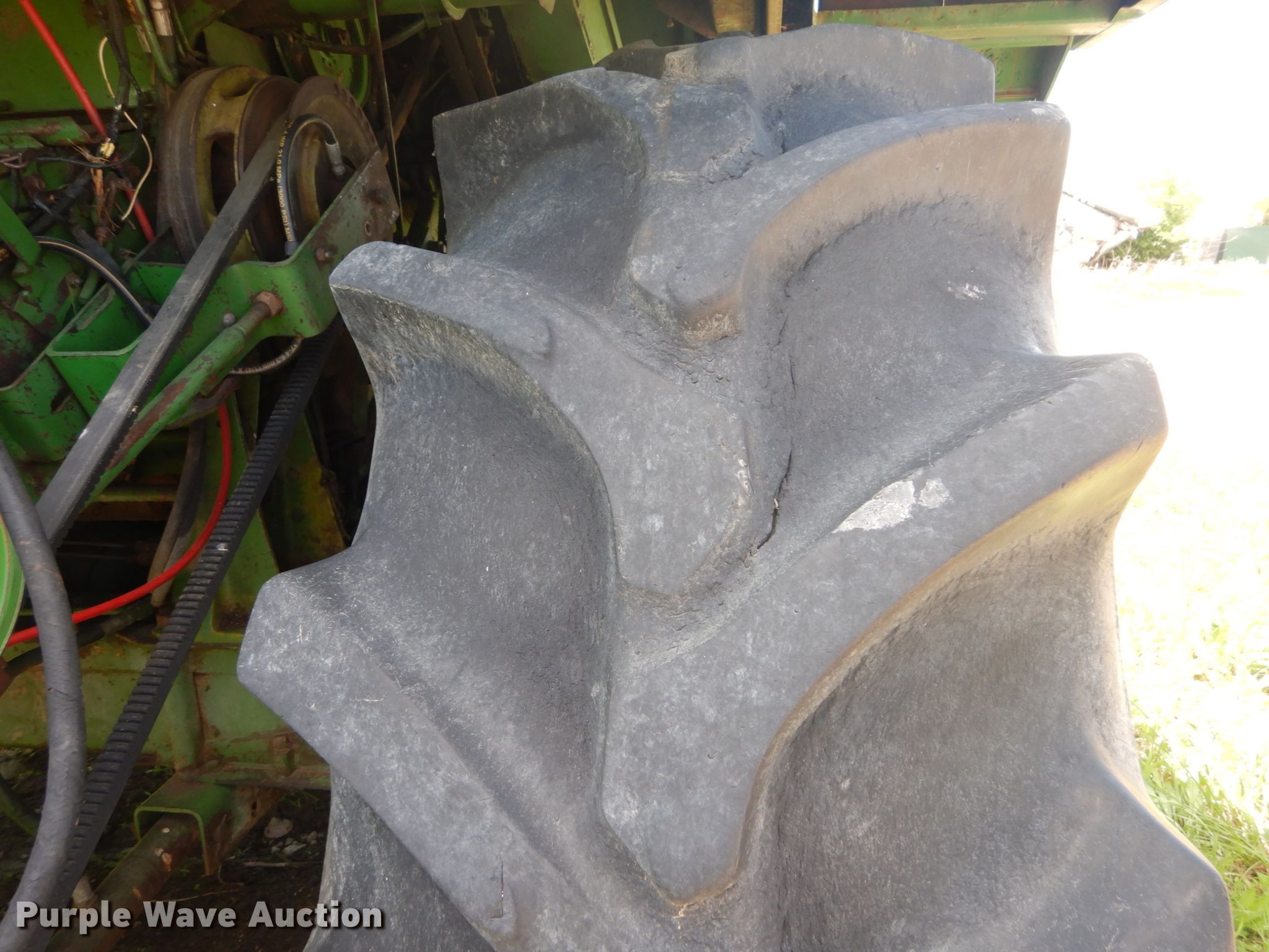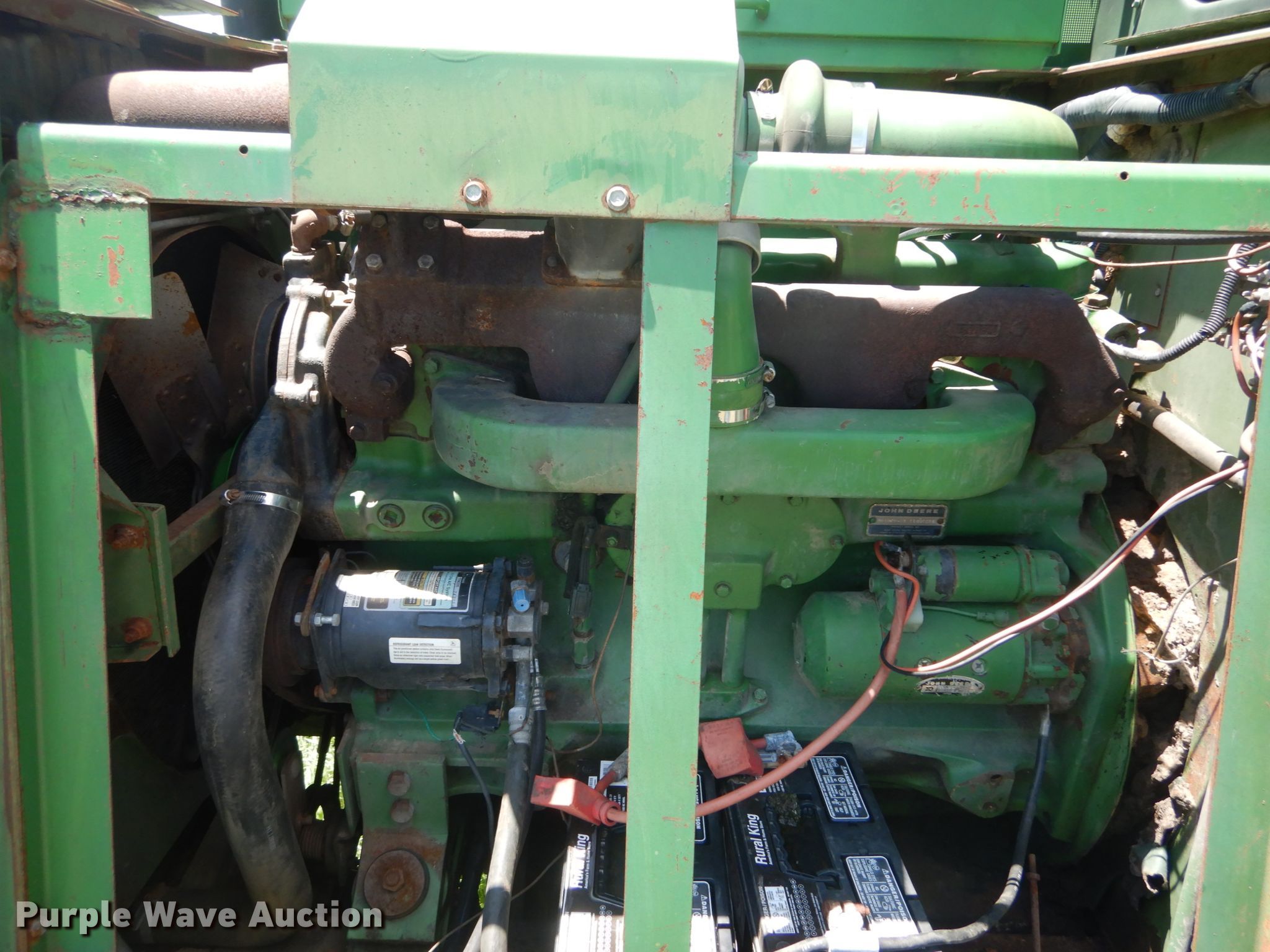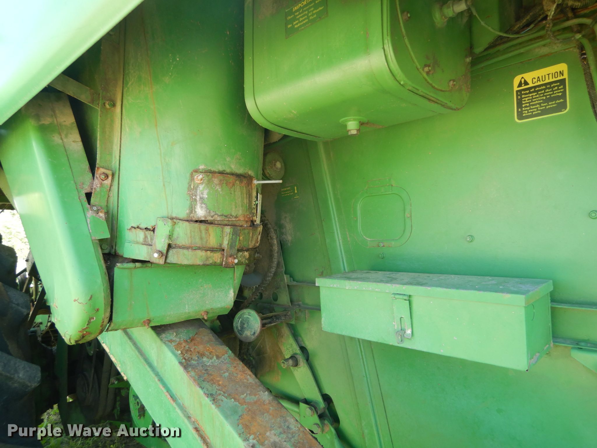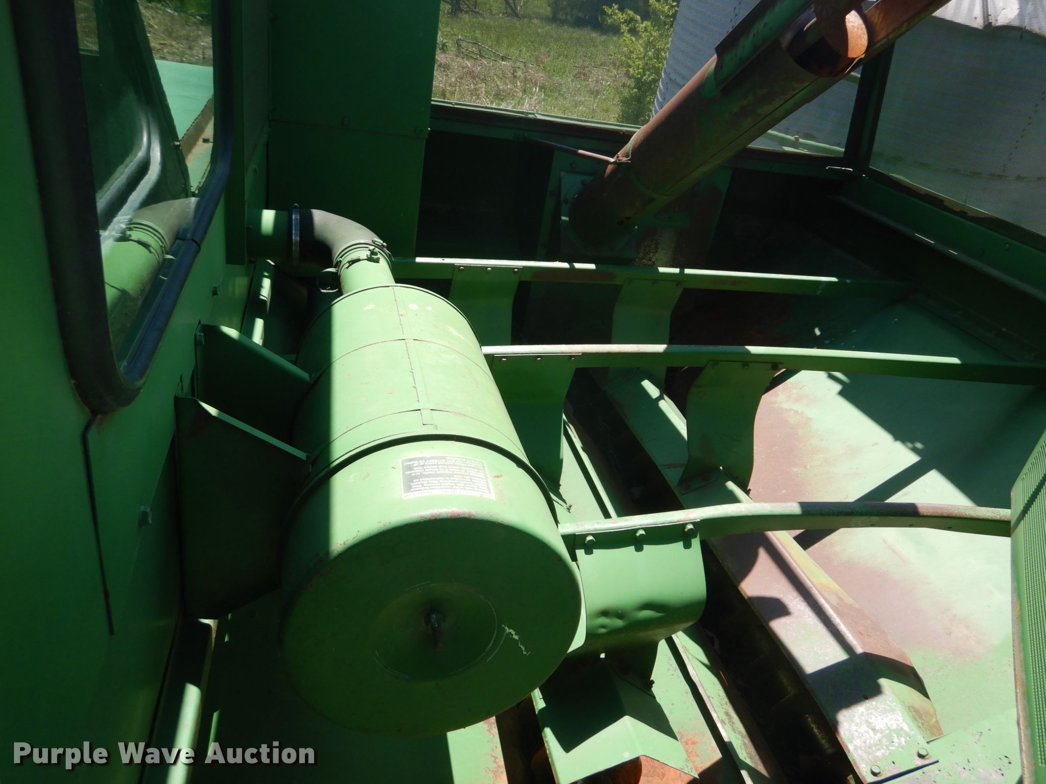 Purple Wave is selling a used Combine in Missouri. This item is a John Deere 6620 combine with the following: 3,286 engine hours on meter, John Deere six cylinder diesel engine, Hydrostatic transmission, 4F-4R gears, AC and heat, Straw chopper, 24.5-32 front tires, 11.2-24 rear tires, Dead battery, Unknown operating condition of AC, Unknown operating condition, Serial 358389