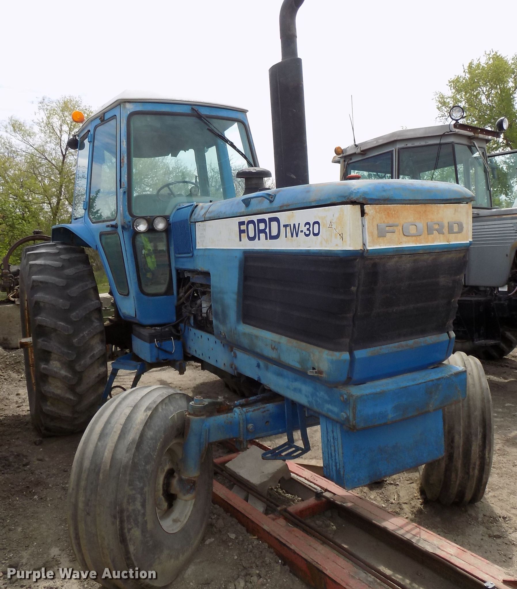 Purple Wave is selling a used Tractor in Nebraska. This item is a Ford TW30 tractor with the following: 6,969 hours on meter, Six cylinder diesel engine, Dual Power transmission, 16F-4R gears, AC and heat, Three point, 1000 PTO, (2) rear hydraulic remote sets, (6) mounted weights, 14L-16.1 front tires, 20.8-38 rear tires, Engine knocks, Door missing, Serial D8NN-5015-BB