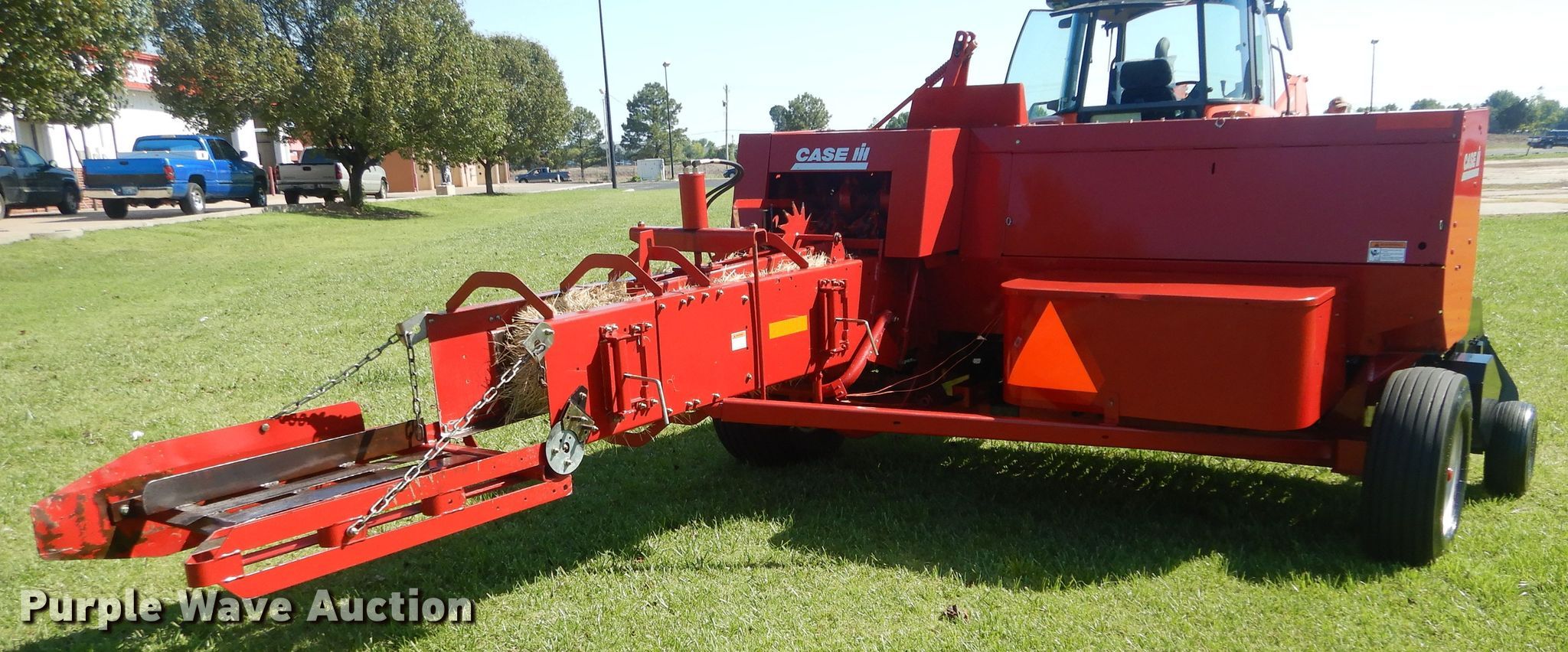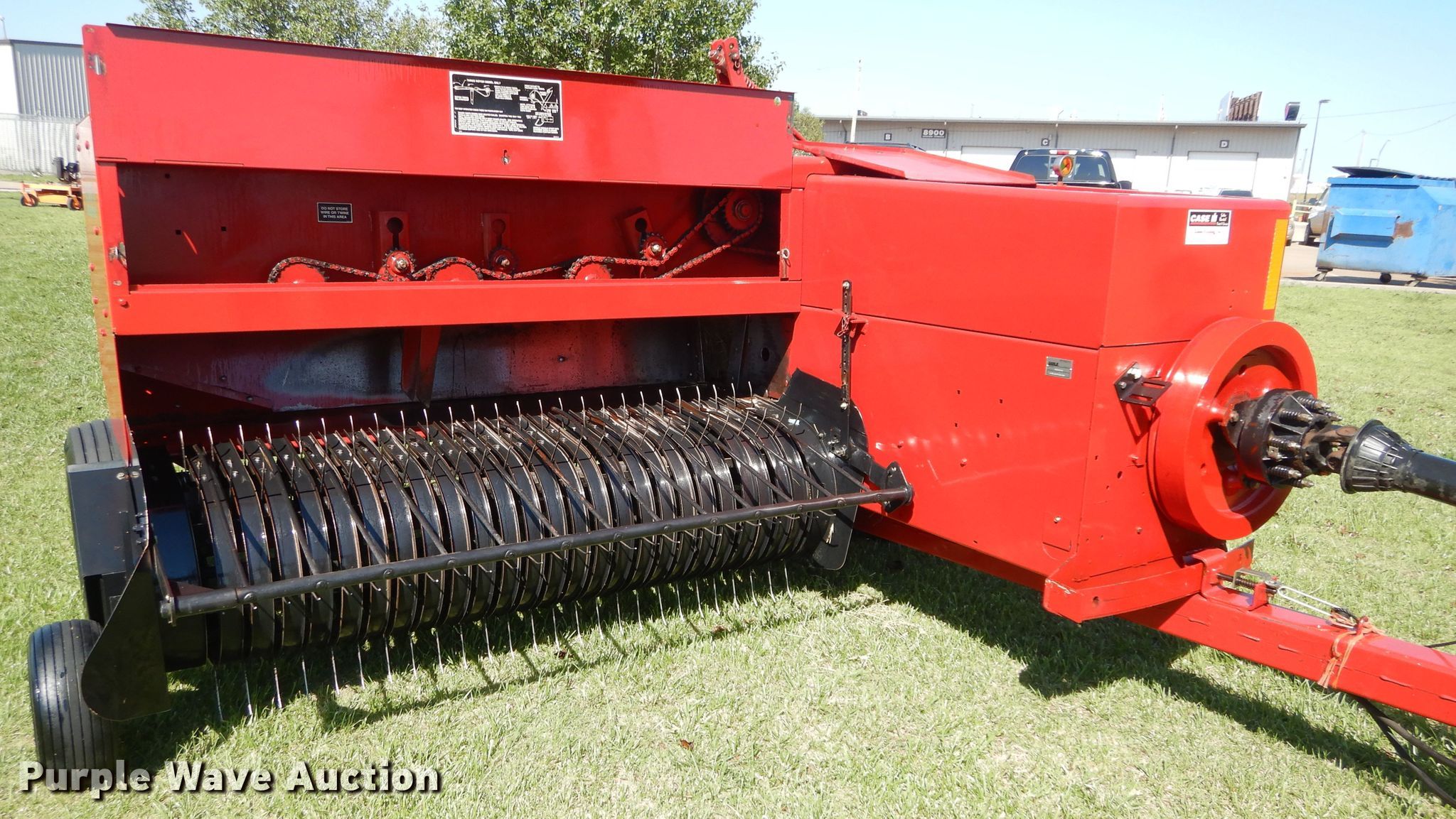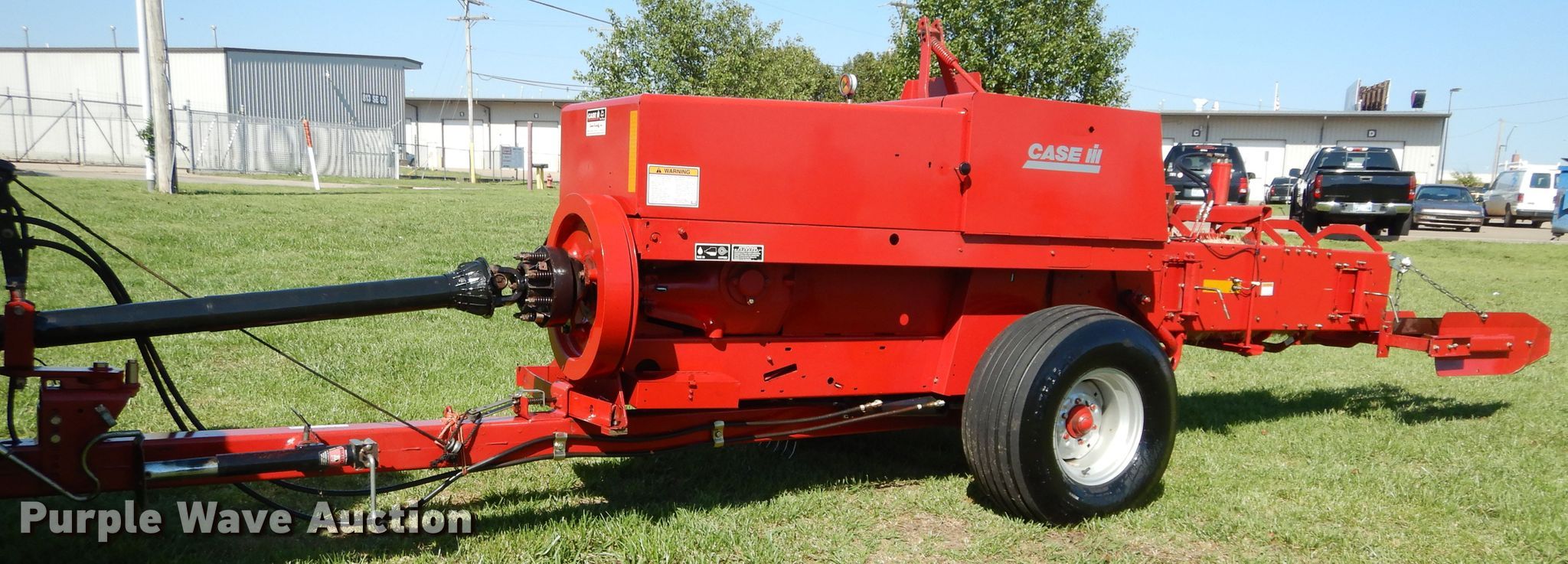 Purple Wave is selling a used Square Baler in Oklahoma. This item is a 2005 Case IH SBX540 small square baler with the following: Approx. 4,000 bale count, 14" x 18" bale capacity, 76"W pickup, Hydraulic pickup lift, Knotter, Quarter turn bale chute, Hydraulic bale density, 540 PTO, Hydraulic tongue swing, 31x13.50-15 tires, Moisture indicator not included, Serial HBJ0043648