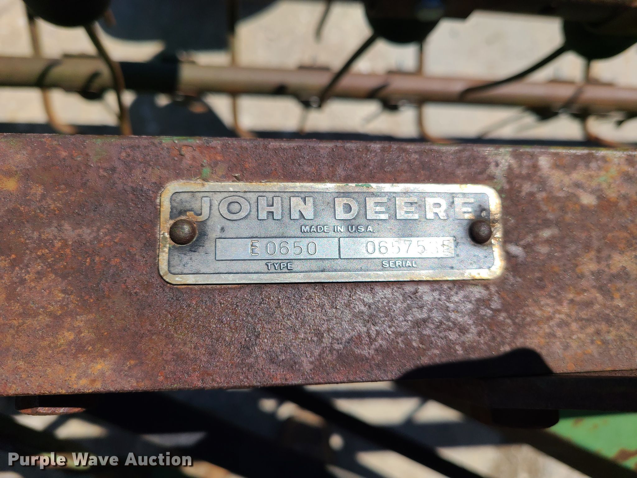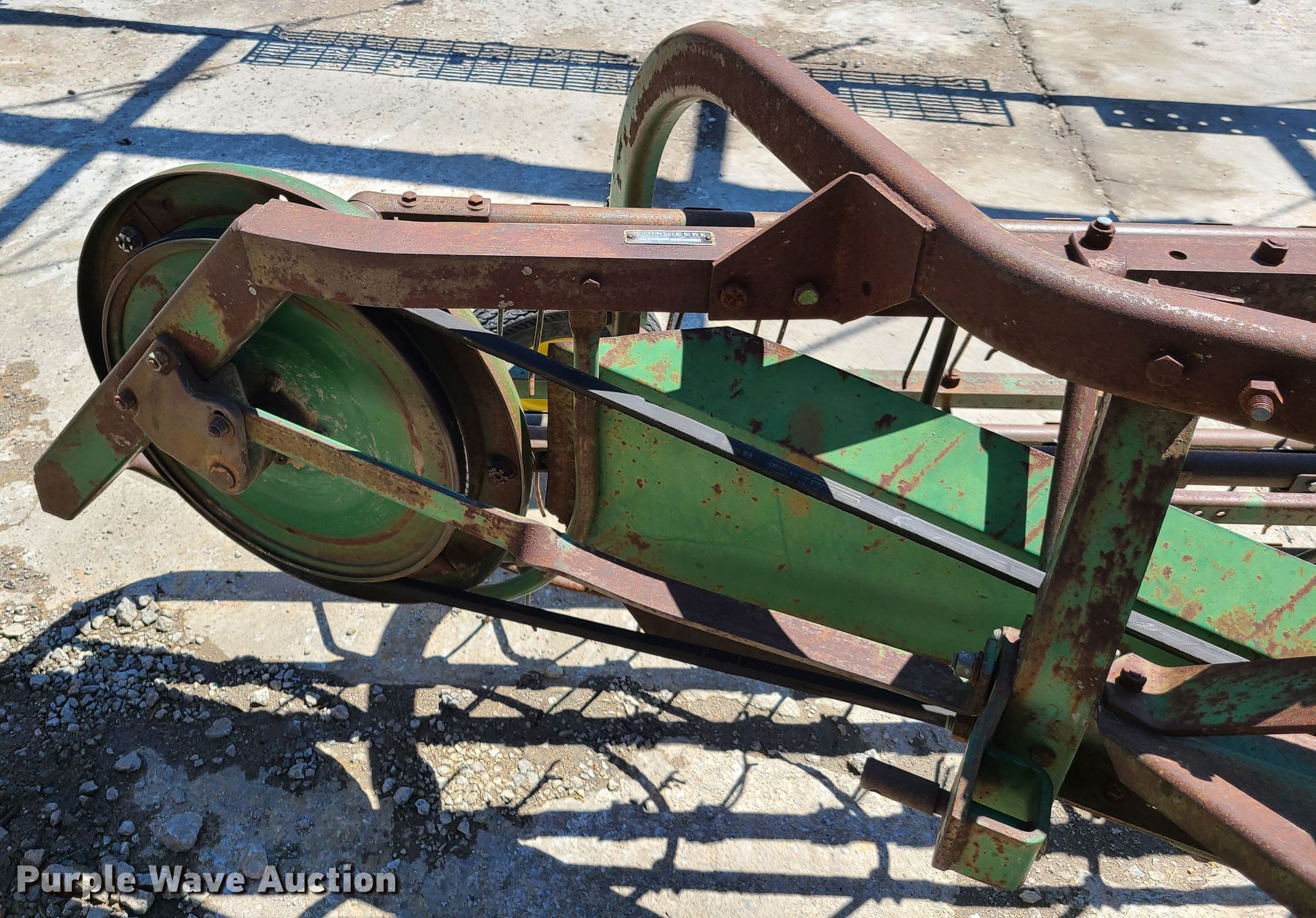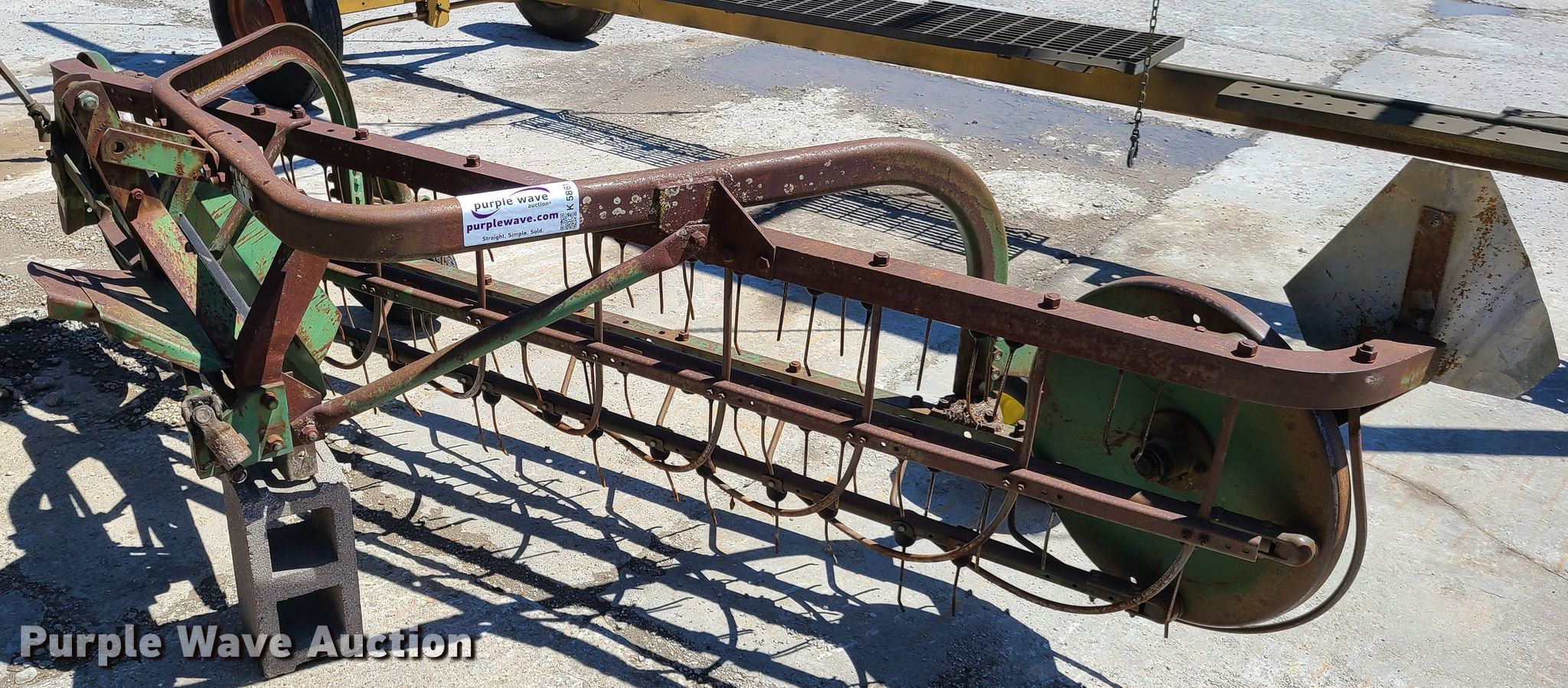 Purple Wave is selling a used Hay Rake in Missouri. This item is a John Deere hay rake with the following: 540 PTO, Three point hitch, 4.80-8 tires, Serial 065753E