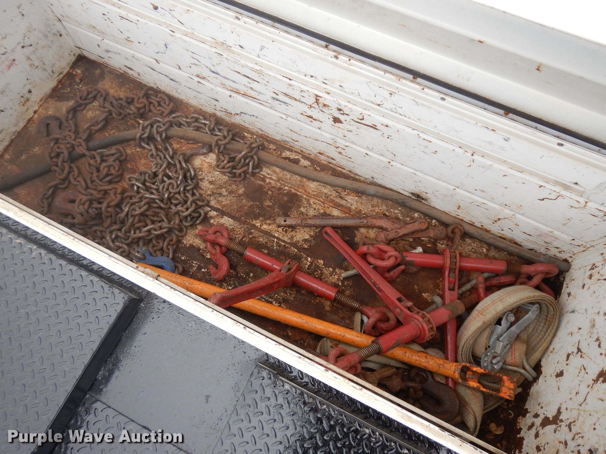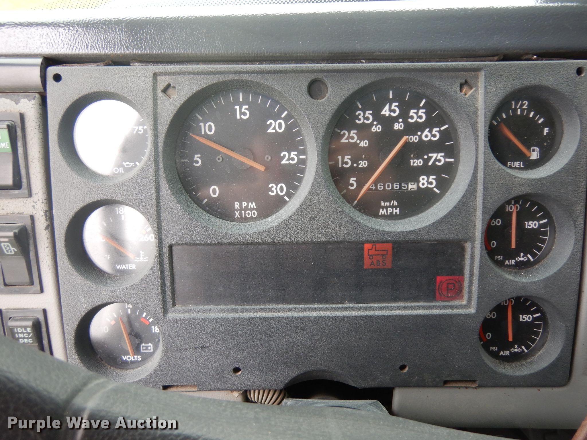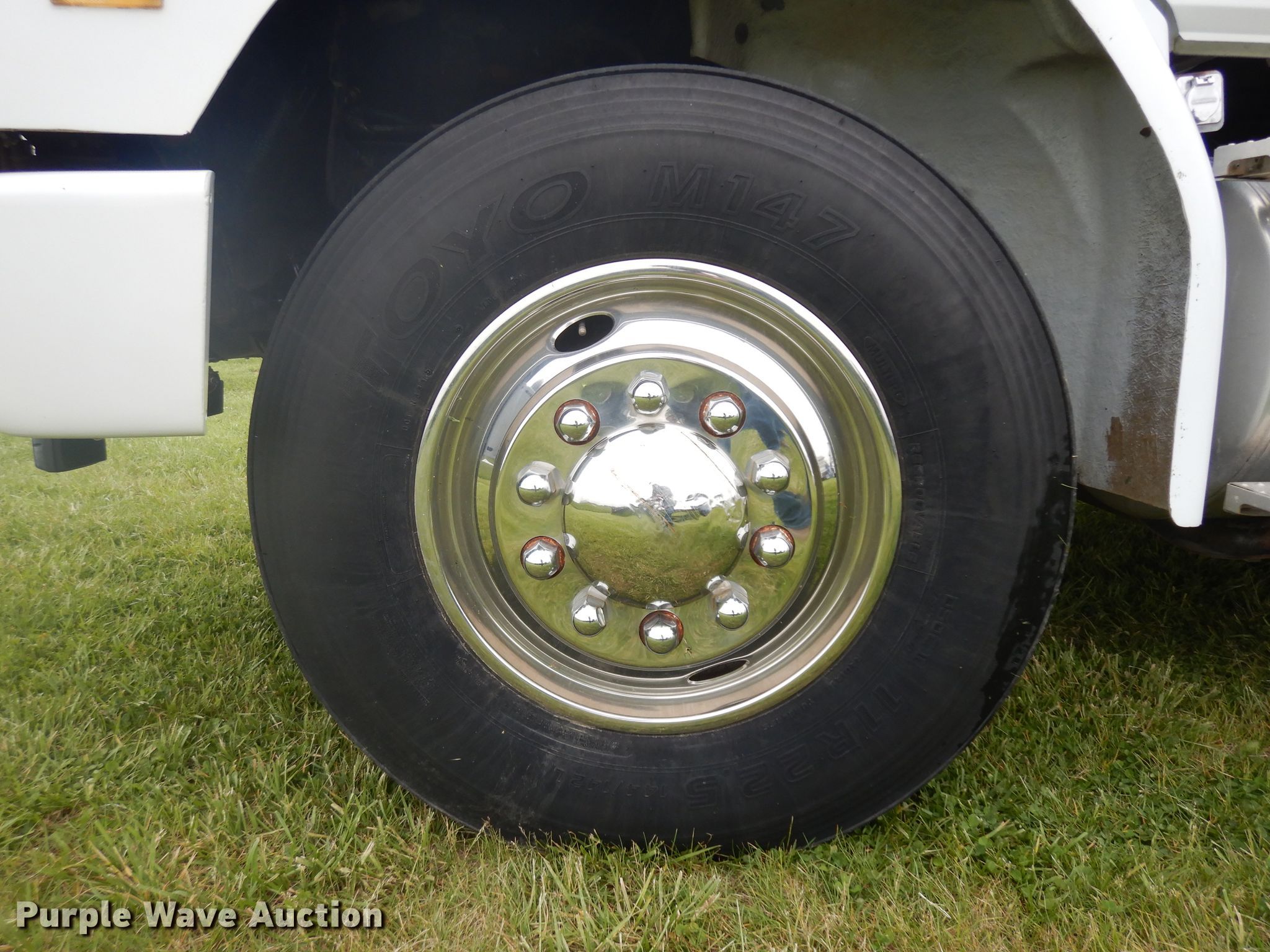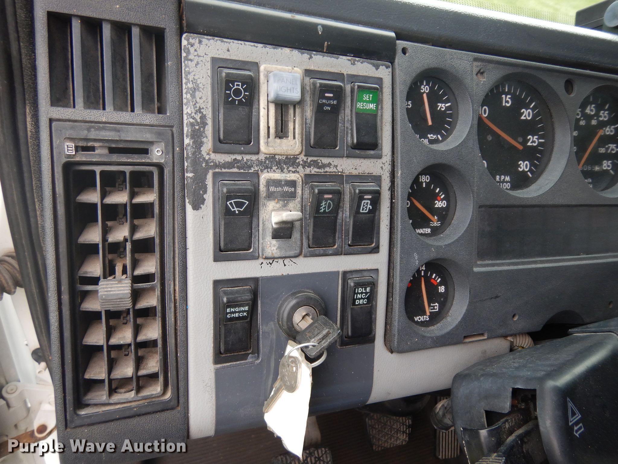 1996 Freightliner FL112 flatbed truck. 246,065 miles on odometer. Engine Cummins M11, Displacement: 10.8L, Cylinders: 6, Fuel type: Diesel. Transmission Manual, Speed: 9. Chassis Axles: Single, Suspension: Air, Brakes: Air, GVWR: 34,700 lbs FAWR 12,000 lbs, RAWR 22,700 lbs. Interior AC, Heat, Cruise, Heated mirrors, Sleeper Sleeper length: 3.5'. Operational Flatbed Hitch Gooseneck, Fuel tank: Dual. Tires Size: 11R22.5. Notes Contents in toolbox not included. Kansas title. Title distribution may be delayed up to 14 days from verification of funds. 1FUWTMCB0TL613687. 22561 207th St. Tonganoxie, KS 66086