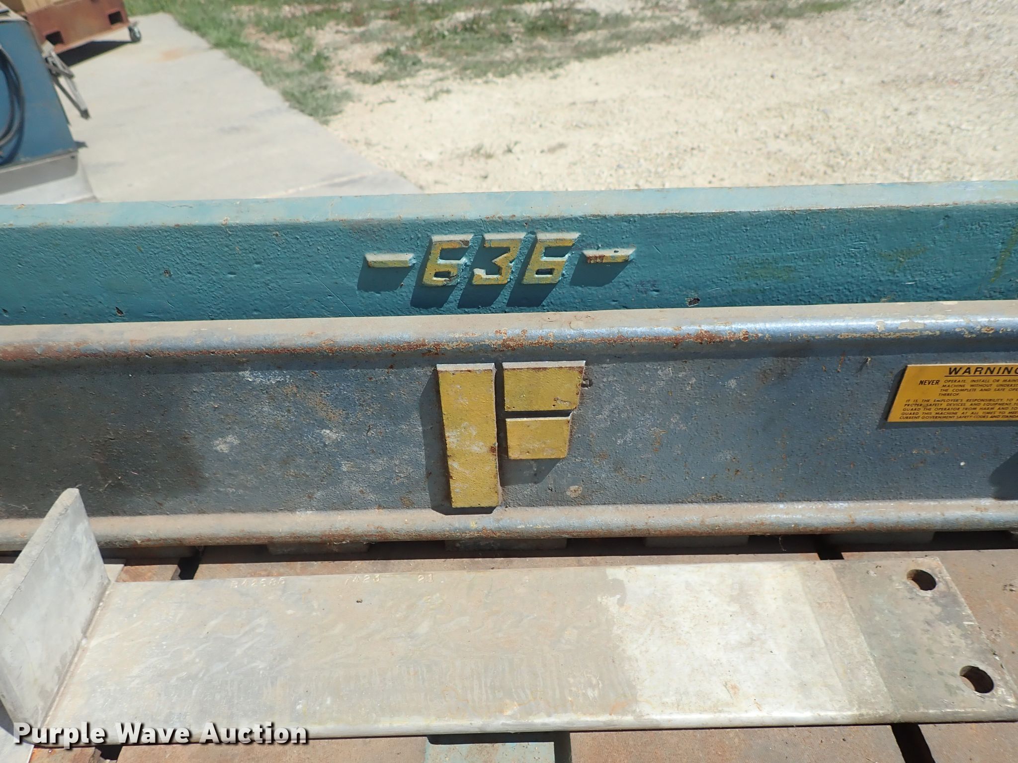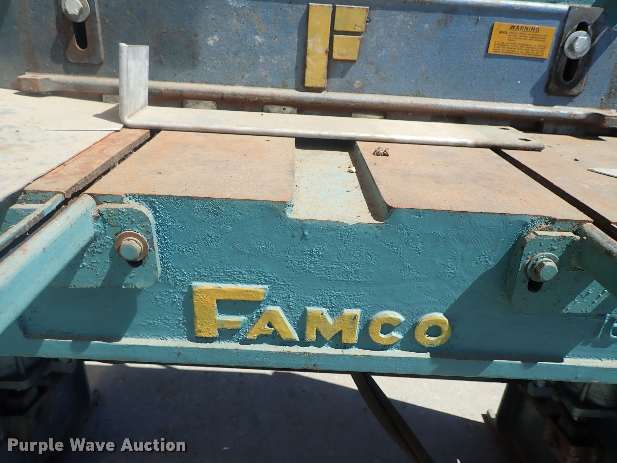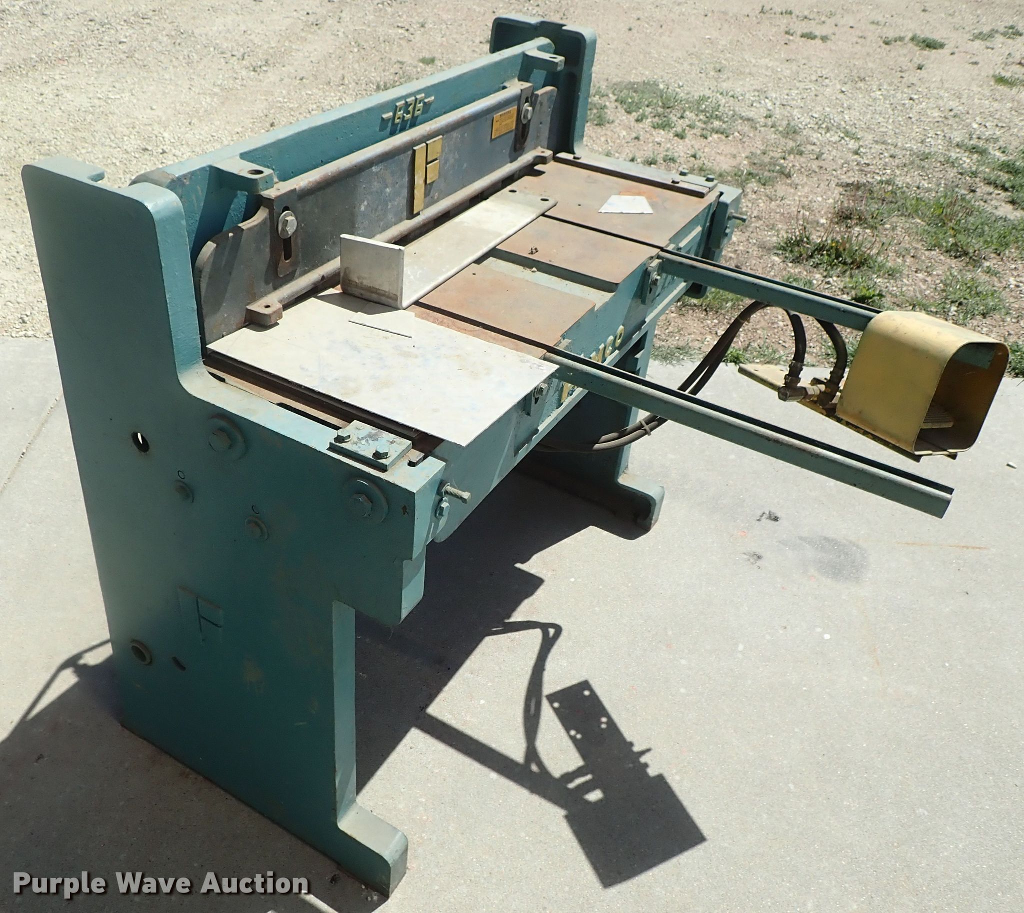 Purple Wave is selling a used Machine Shop Tools and Equip. in Kansas. This item is a Famco 636 pneumatic shear with the following: Approx. 36" work width, Foot controls, 16 gauge mild steel capacity