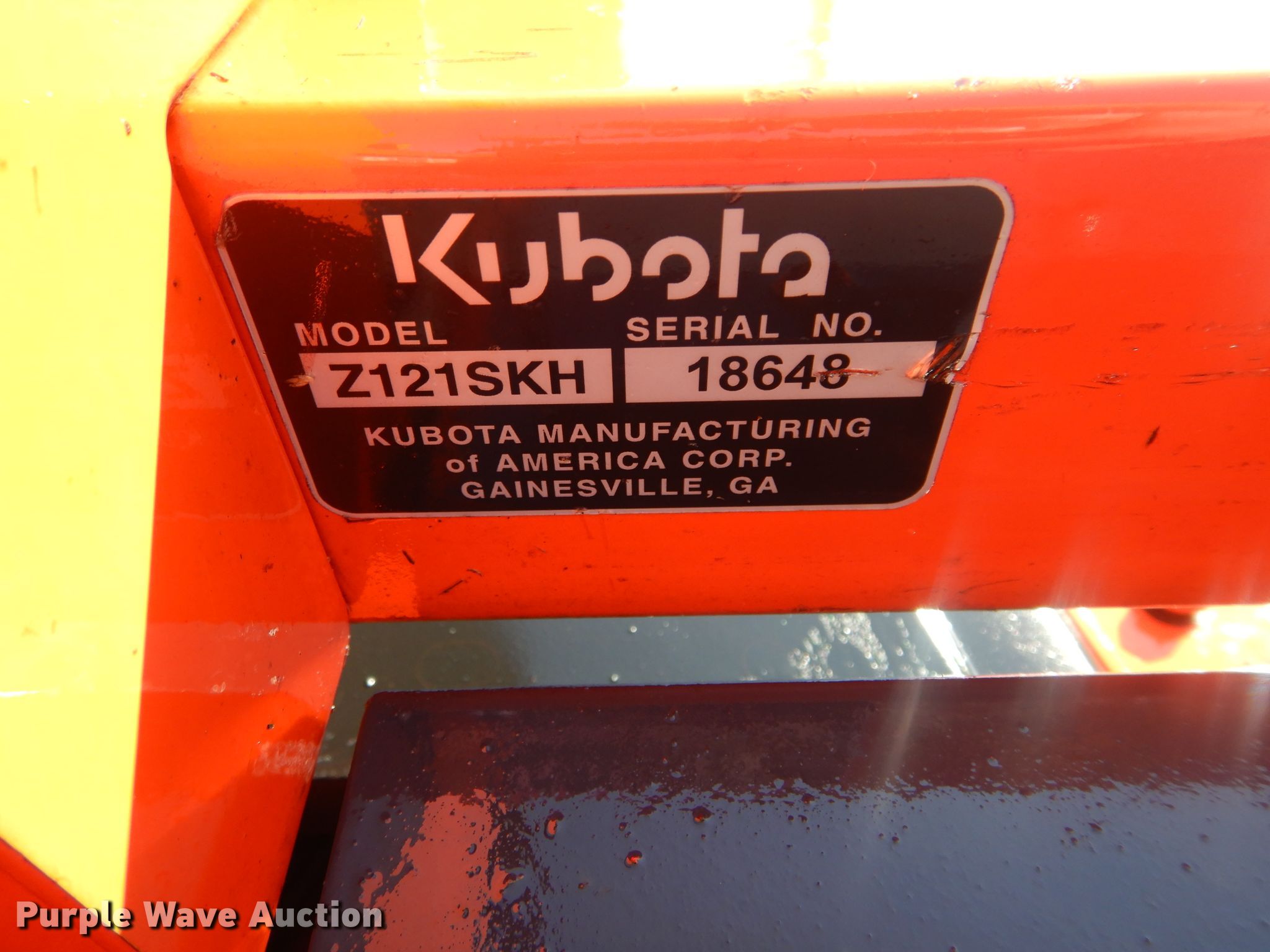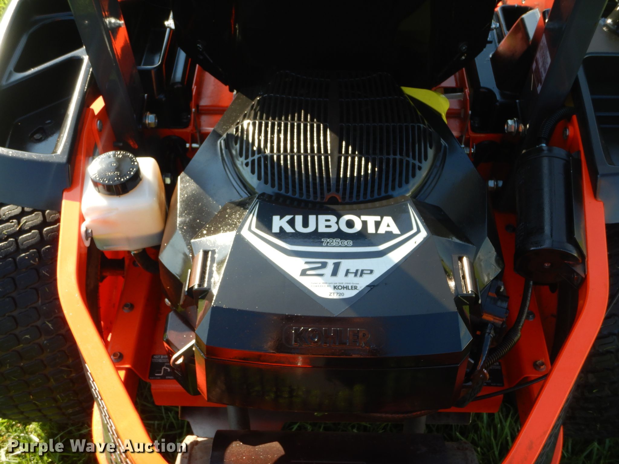 Purple Wave is selling a used Lawn Mower in Oklahoma. This item is a Kubota Kommander Z121S ZTR lawn mower with the following: 355 hours on meter, 48" cutting width, Kohler ZT720-3014 725cc two cylinder gas engine, Hydrostatic transmission, 11x4.00 front tires, 22x10.00-14 rear tires, Serial 18648