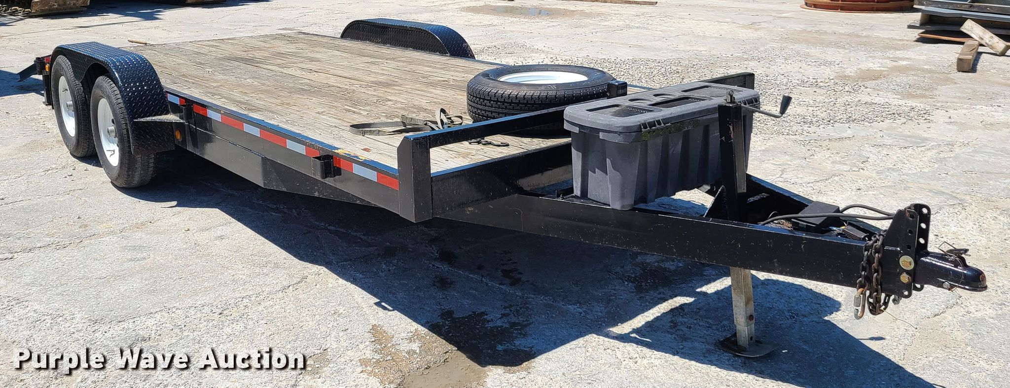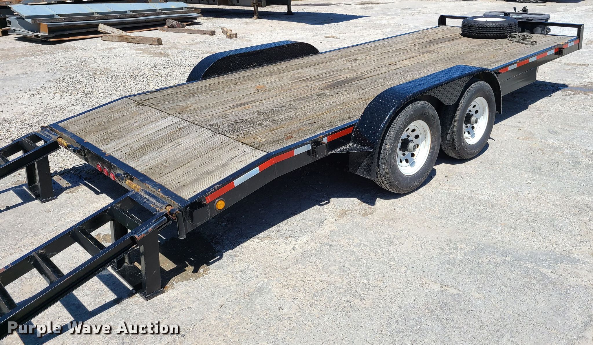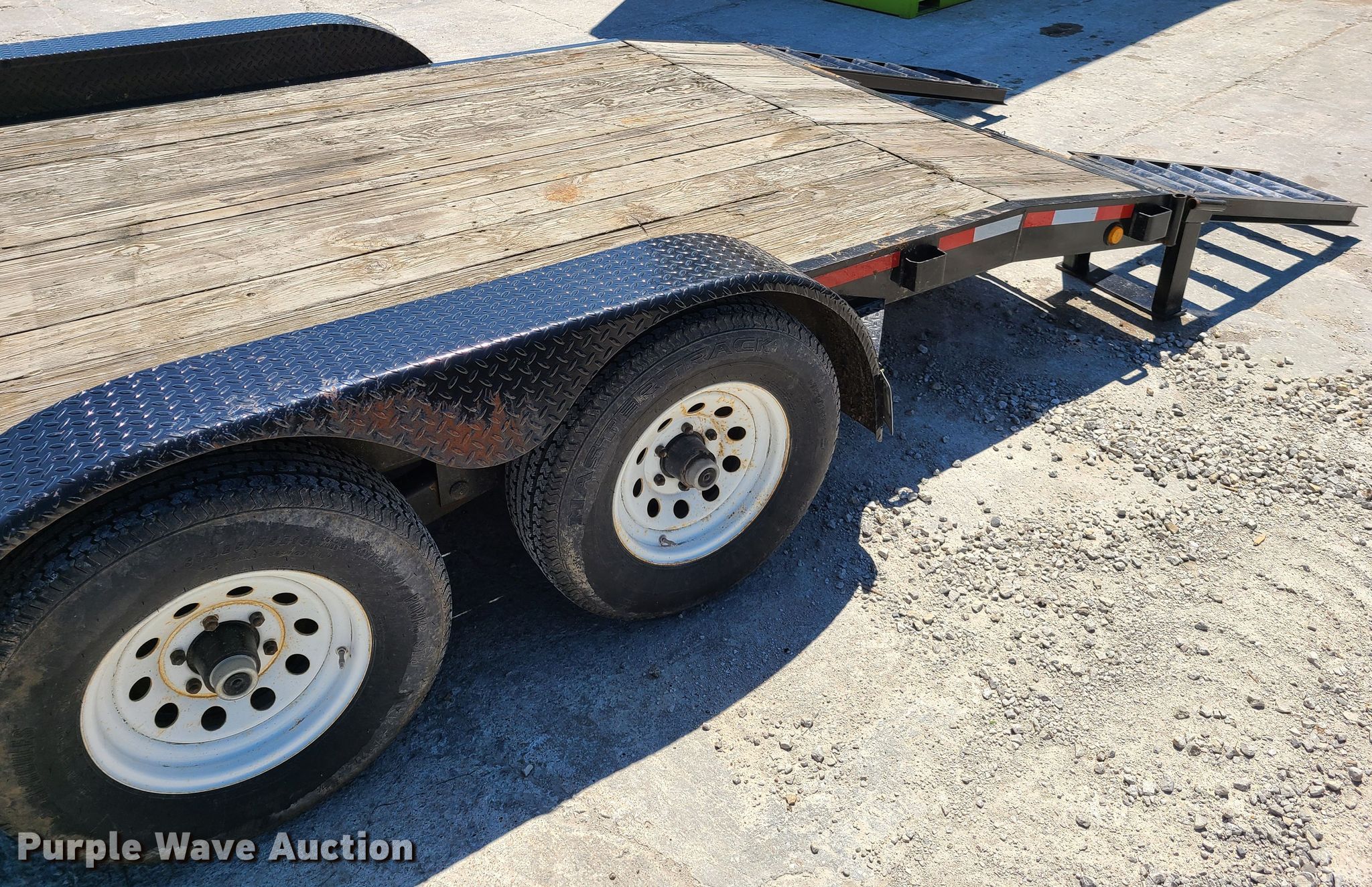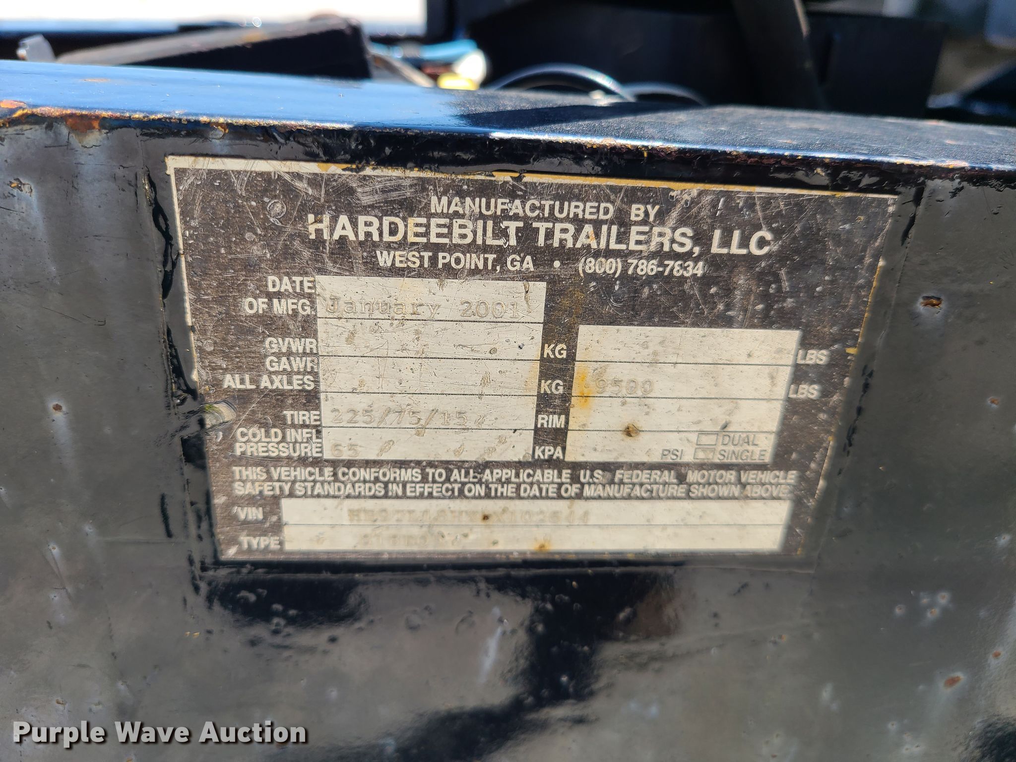 Purple Wave is selling a used Car or Utility Trailer in Missouri. This item is a 2001 Hardee utility trailer with the following: 23'L x 100"W overall, 18'L x 81"W deck, Wood deck, 48"L ramps, Single leg landing gear, Spring suspension, Electric brakes, Tandem axle, 225/75R15 tires, GVWR 9,500 lbs