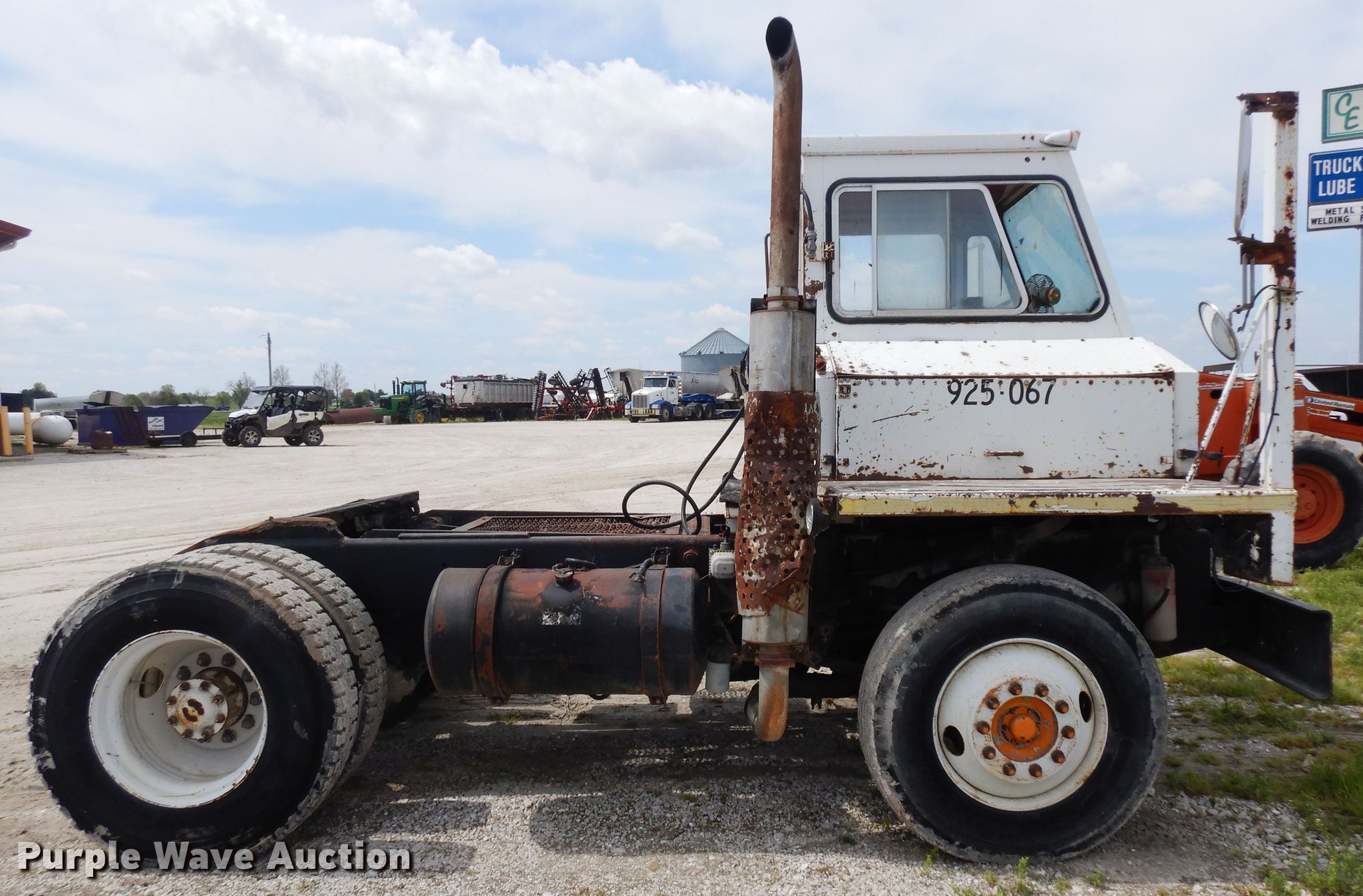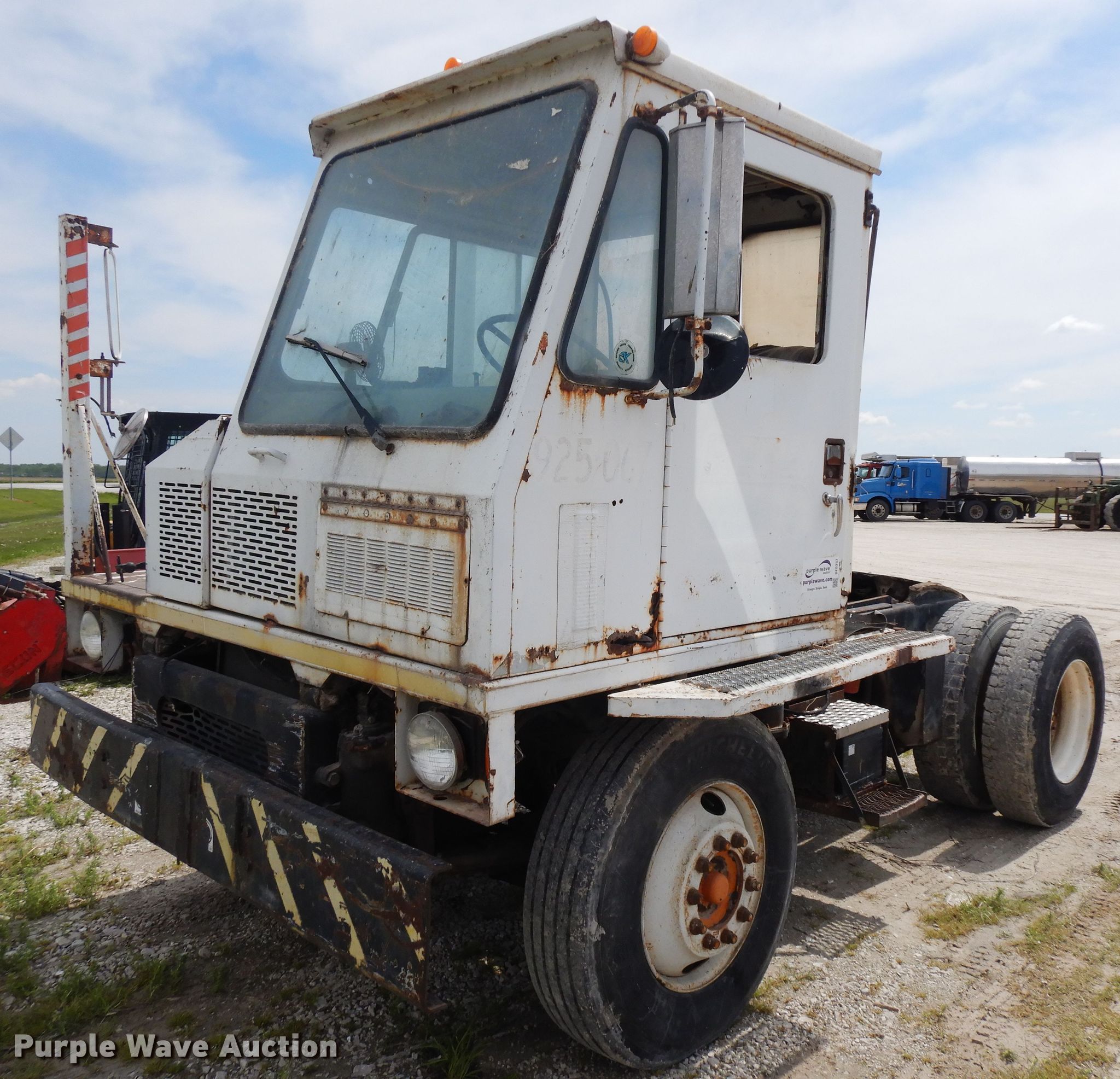 Purple Wave is selling a used Yard Truck in Illinois. This item is a 1983 Ottawa Commander yard truck with the following: 1,516 hours on meter, Caterpillar 3208 eight cylinder diesel engine, 25 HP, Automatic transmission, Single axle, PTO, Wet kit, Fixed fifth wheel plate, Single fuel tank, Spring suspension, Air brakes, 11R22.5 tires