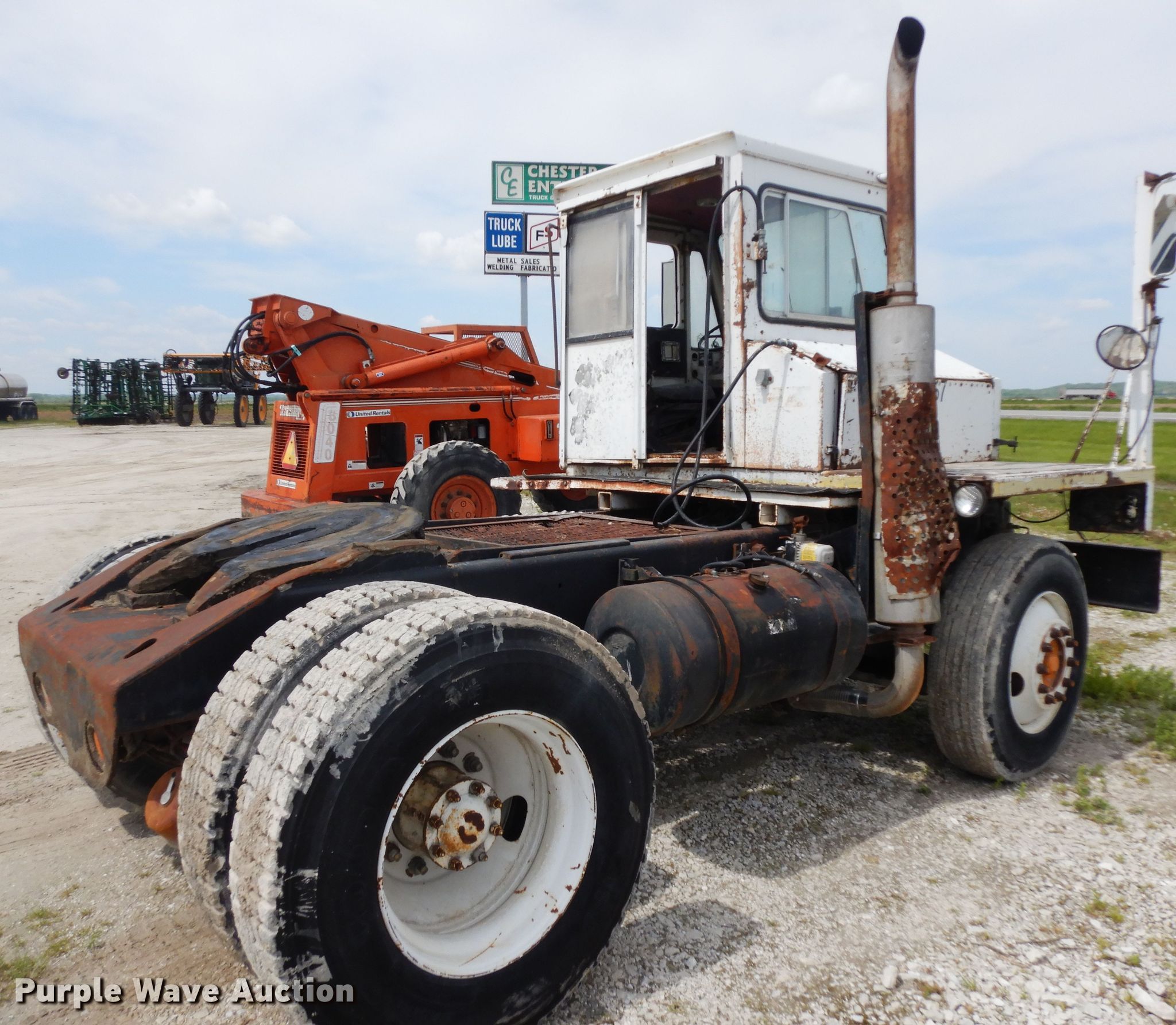 1983 Ottawa Commander yard truck. 1,516 hours on meter, Caterpillar 3208 eight cylinder diesel engine 25 HP, Automatic transmission, Single axle, PTO, Wet kit, Fixed fifth wheel plate, Single fuel tank, Spring suspension, Air brakes, 11R22.5 tires. Transfer of ownership documentation will be a bill of sale. 60079. Chester Enterprises. Beardstown, IL 62618