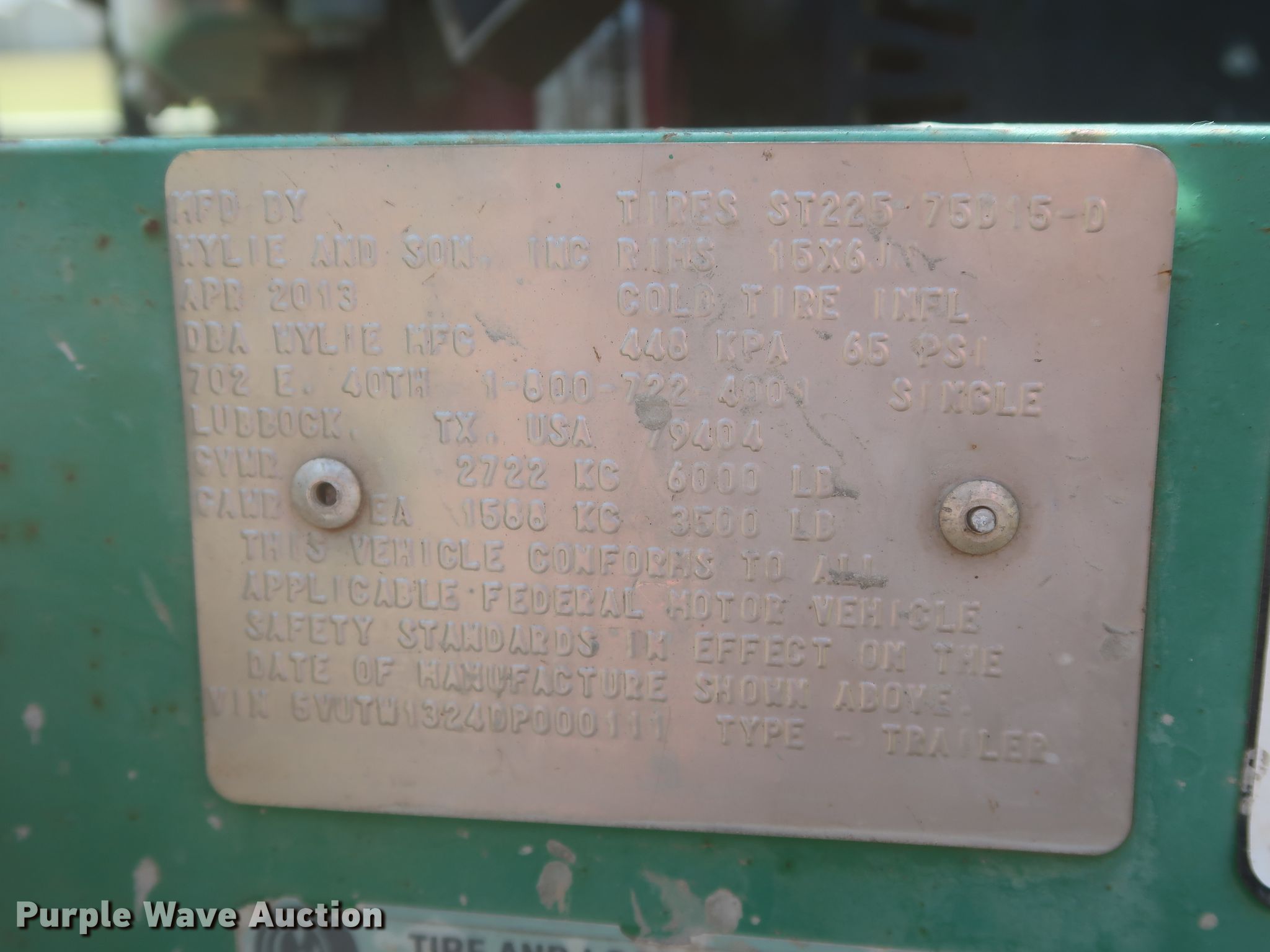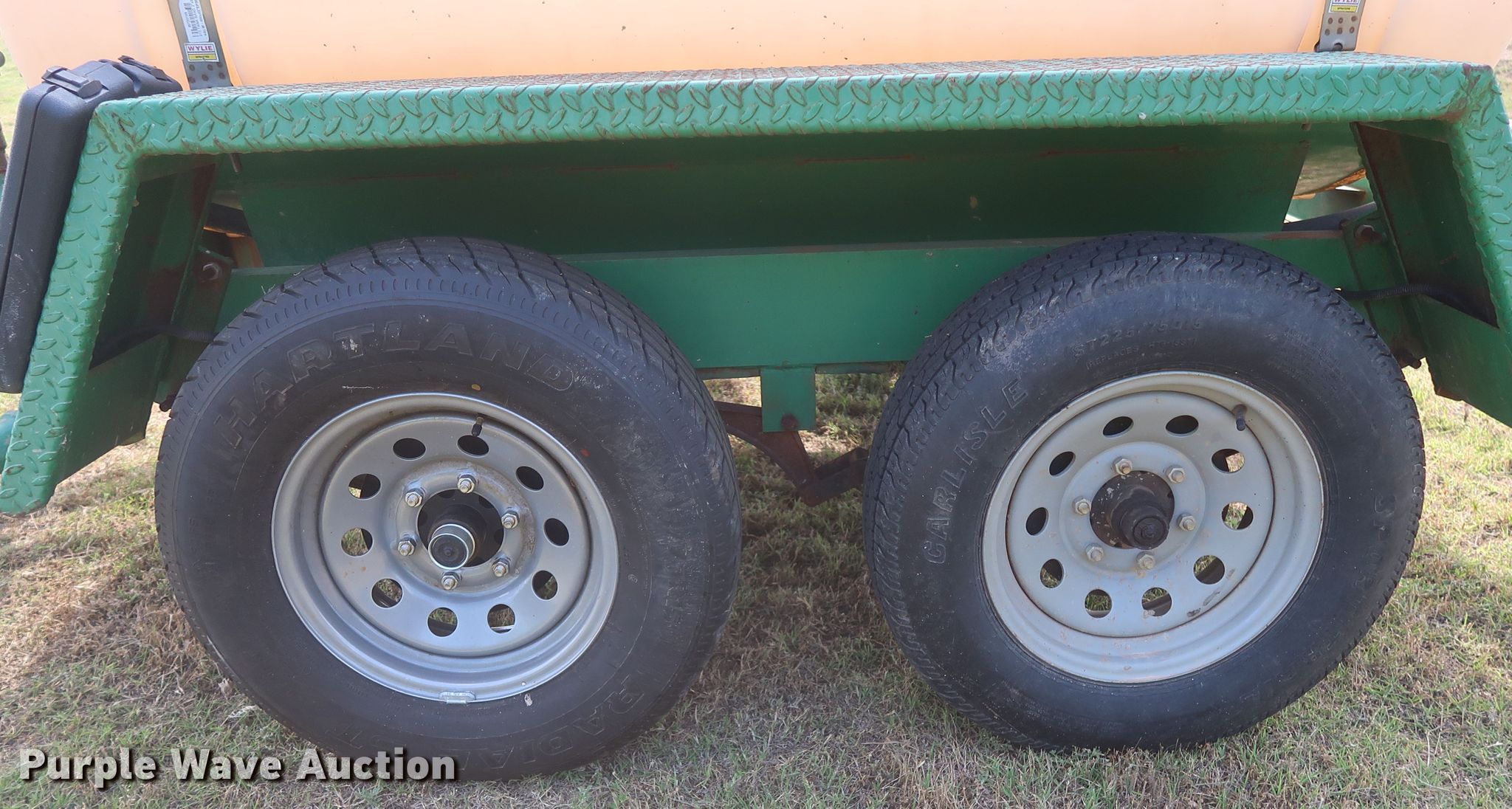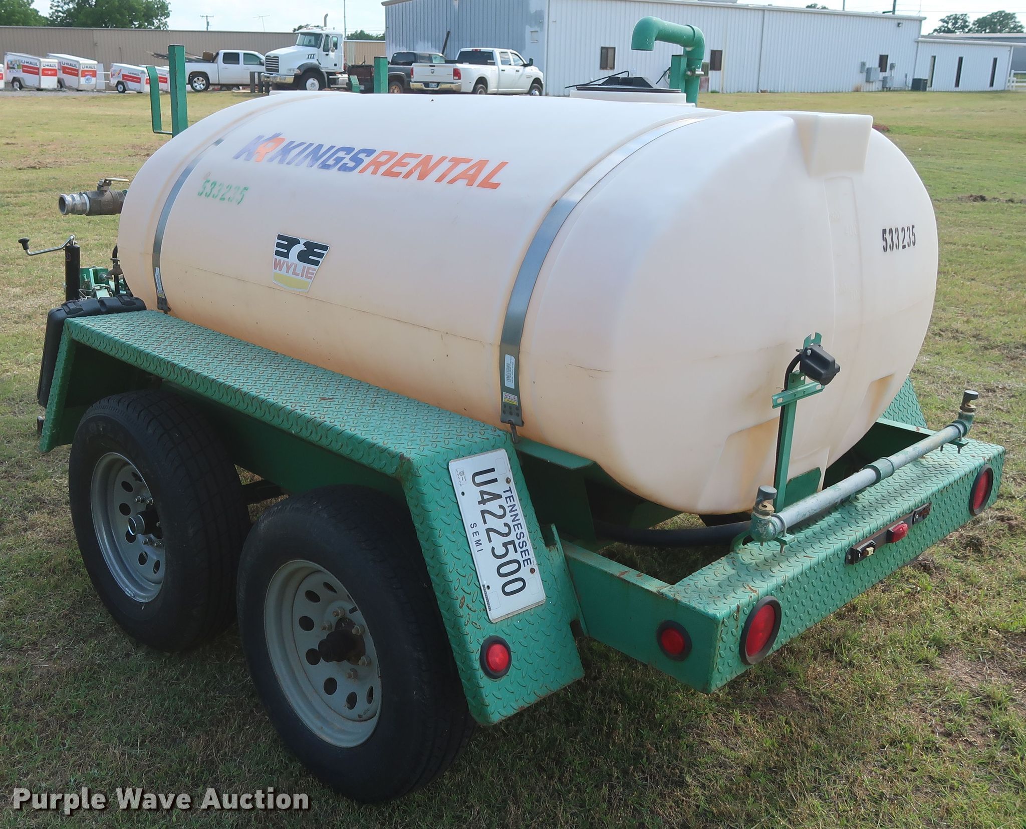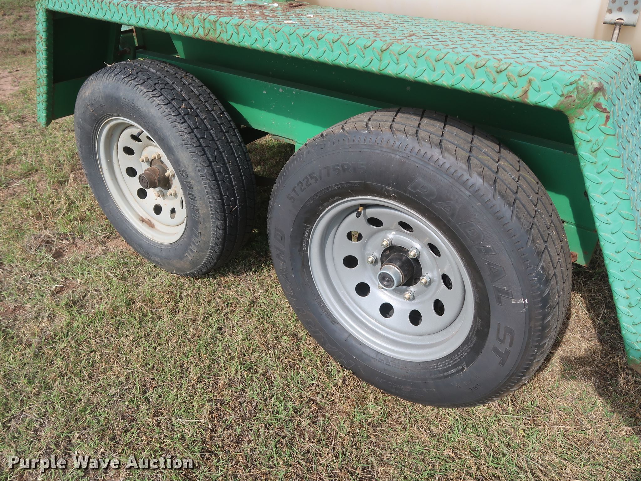Purple Wave is selling a used Tank Trailer in Oklahoma. This item is a 2013 Wylie EXP500S tank trailer with the following: 13'L x 80"W overall, 500 gallon tank capacity, Koshin SEH-50X pump, 2" diameter outlet, Front, side, and rear discharge, Single leg landing gear, Spring suspension, Steel wheels, ST225/75R15 tires, GVWR 6,000 lbs, GAWR 3,500 lbs