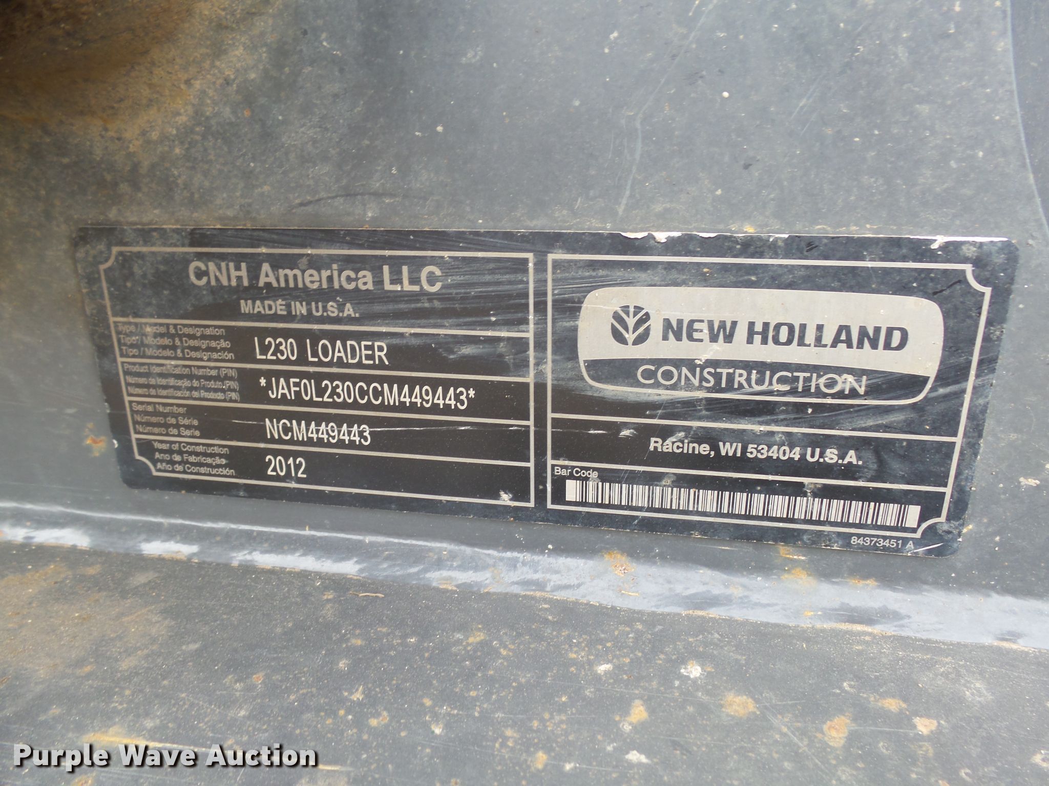Purple Wave is selling a used Skid Steer Loader in South Dakota. This item is a 2012 New Holland L230 skid steer loader with the following: 2,968 hours on meter, Serial: NCM449443