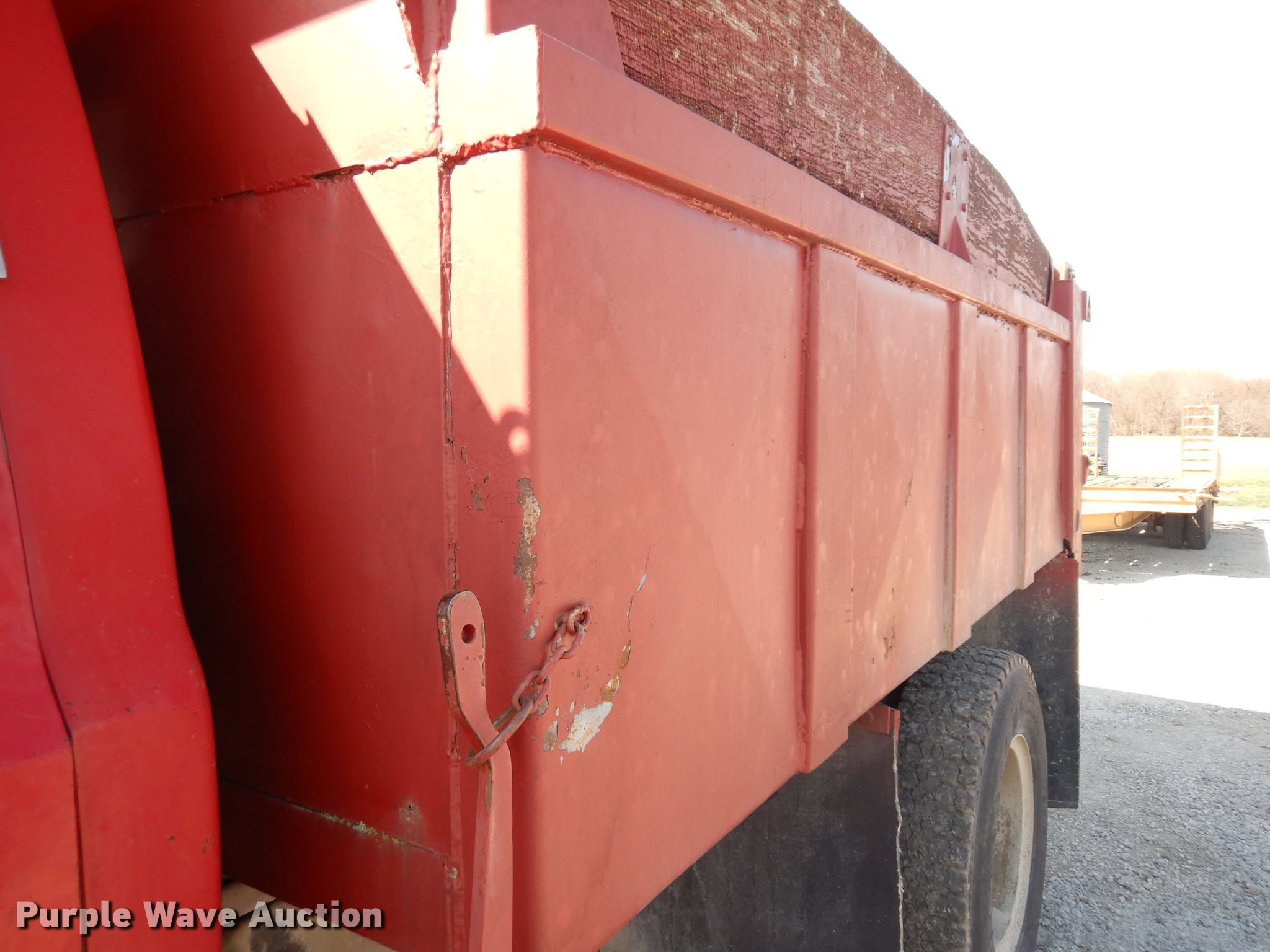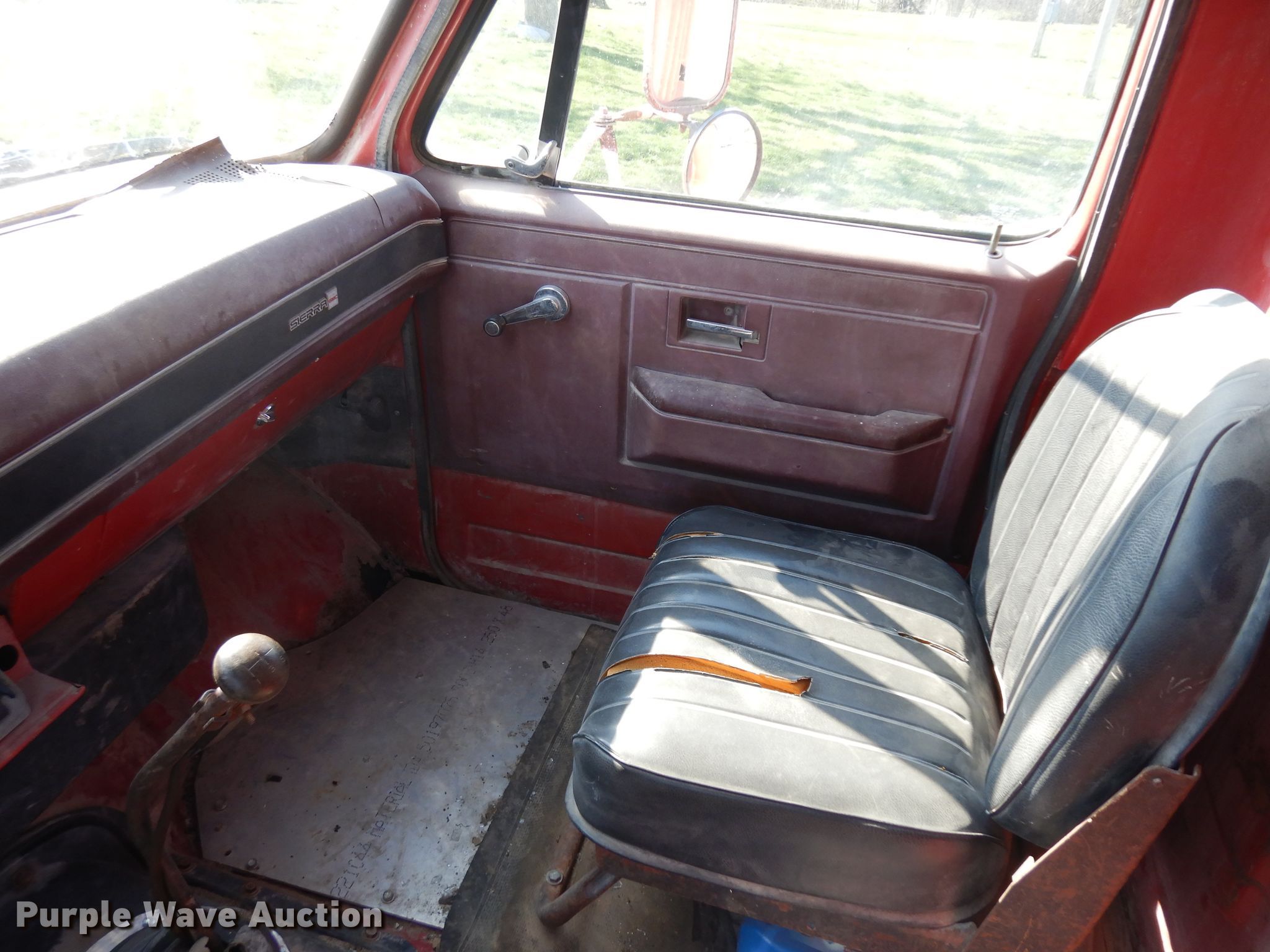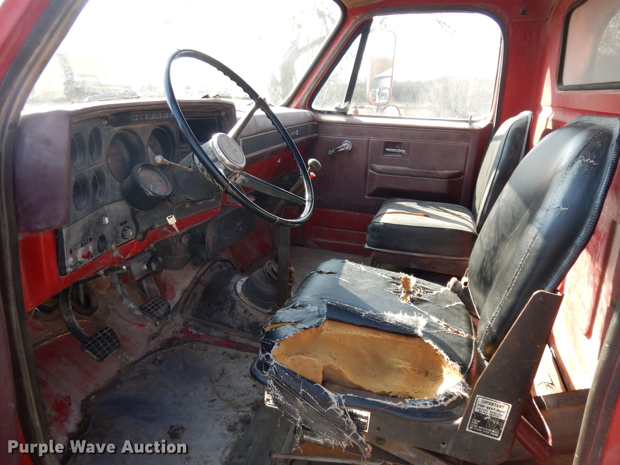 Purple Wave is selling a used Construction Dump Truck in Kansas. This item is a 1987 GMC 7000 dump truck with the following: 122,543 miles on odometer, 6.0L V8 gas engine, Five speed manual transmission, Single axle, Heat, PTO, 10'L x 96"W steel dump bed, 29" side height, 12" side board height, Single ram hoist, Manual operated end gate, Spring suspension, Hydraulic brakes, 10.00R20 tires, GVWR 26,000 lbs, FAWR 7,000 lbs, RAWR 19,000 lbs, Windshield cracked