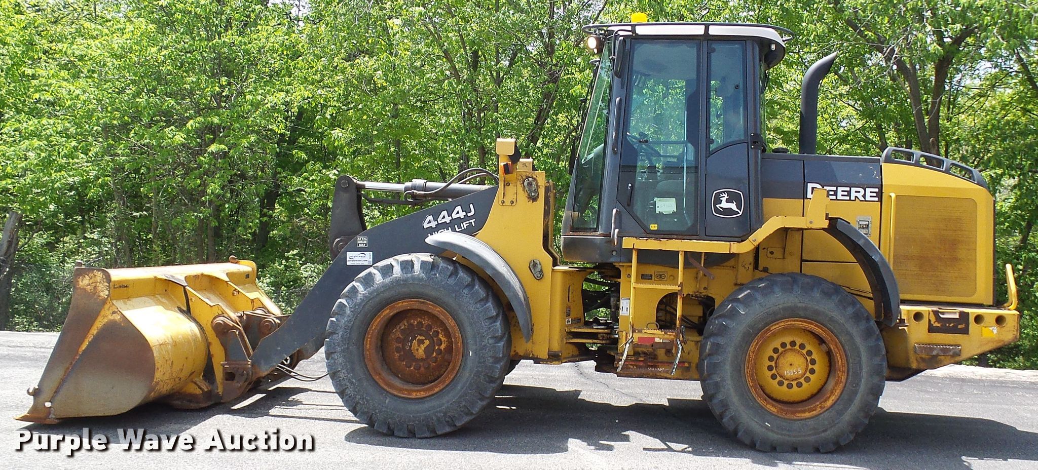Purple Wave is selling a used Wheel Loader in Missouri. This item is a 2006 John Deere 444J High Lift wheel loader with the following: 6,642 hours on meter, Serial: DW444JH601853, MODOT #: G9162