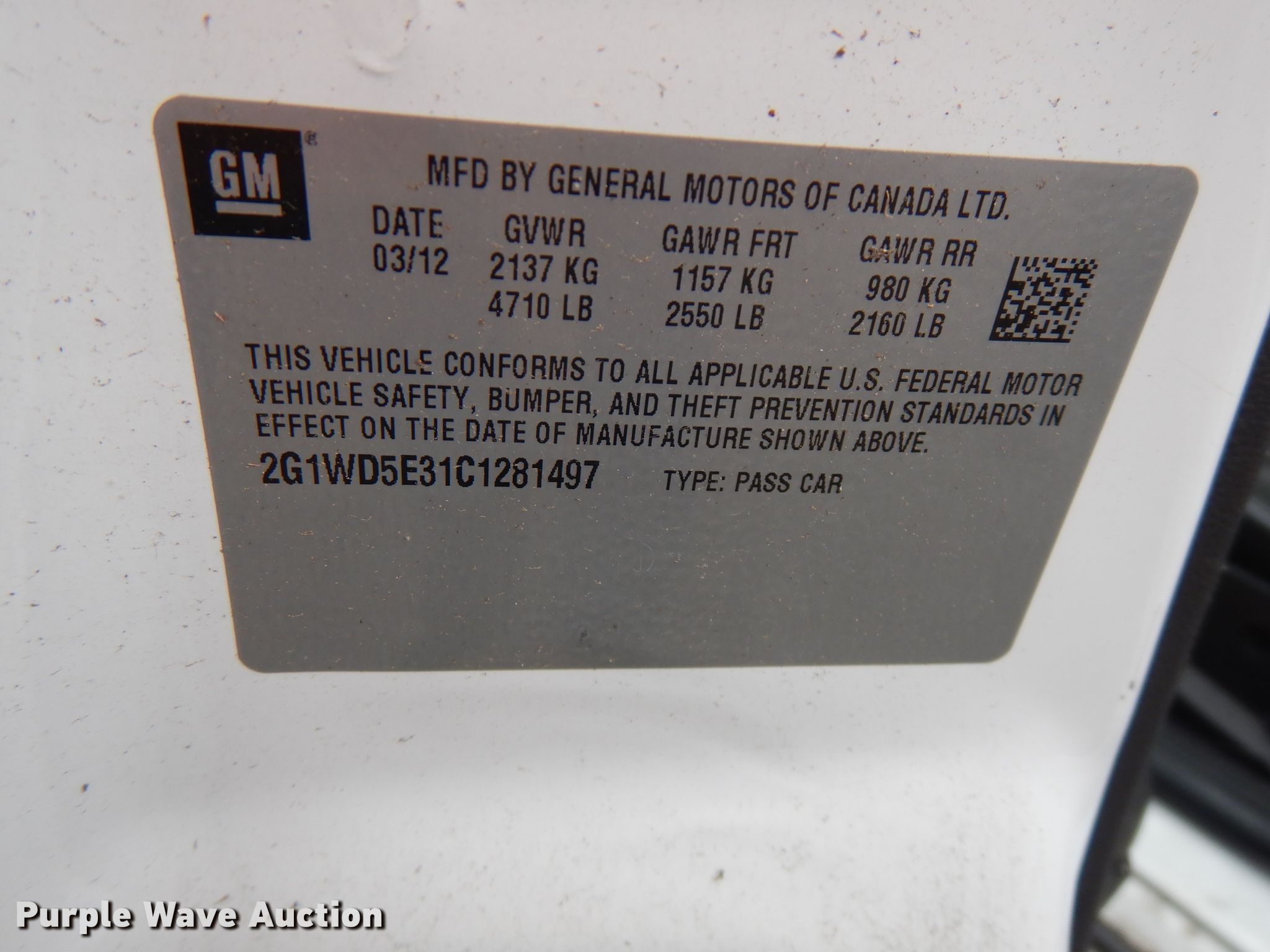 2012 Chevrolet Impala Police Cruiser. 152,338 miles on odometer. Engine Displacement: 3.6L V6 DOHC 16V FFV, Cylinders: 6, Fuel type: Gas. Transmission Automatic. Interior AC, Heat, Seat: Power driver, Power windows, Power locks, Cruise control. Tires Size: 255/75R17. Notes Non-operational unit. Missouri title. Title distribution may be delayed up to 14 days from verification of funds. 2G1WD5E31C1281497. City of University City. 1015 Pennsylvania Ave. University City, MO 63130
