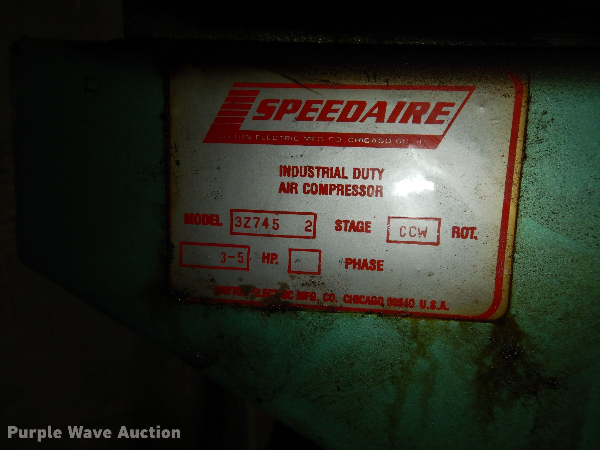1985 Speedaire air compressor has sold in Horton, Kansas for $231. Item HT9091 sold on June 16th, 2020.
