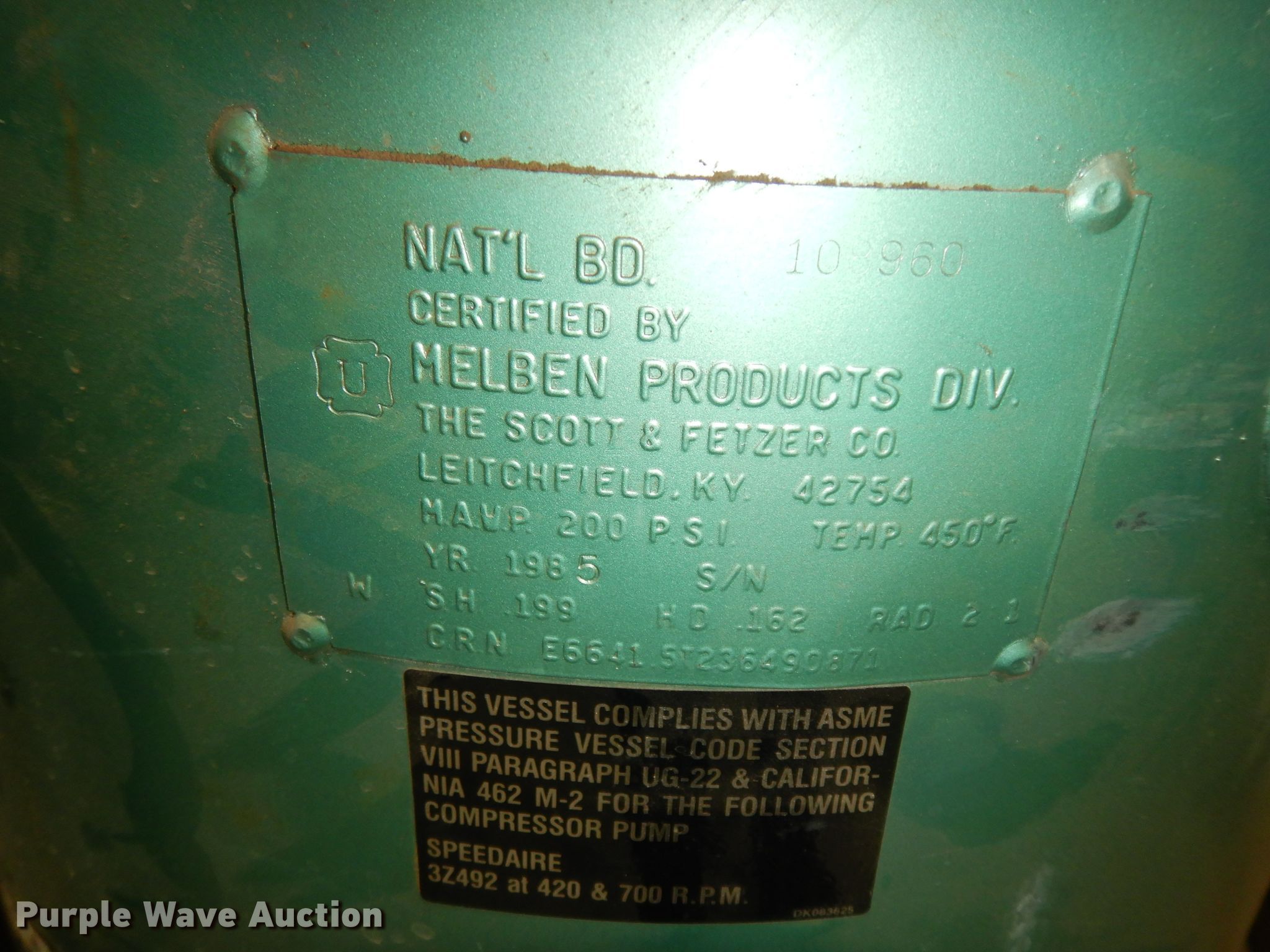 Purple Wave is selling a used Air Compressor in Kansas. This item is a 1985 Speedaire air compressor with the following: Non-operational motor