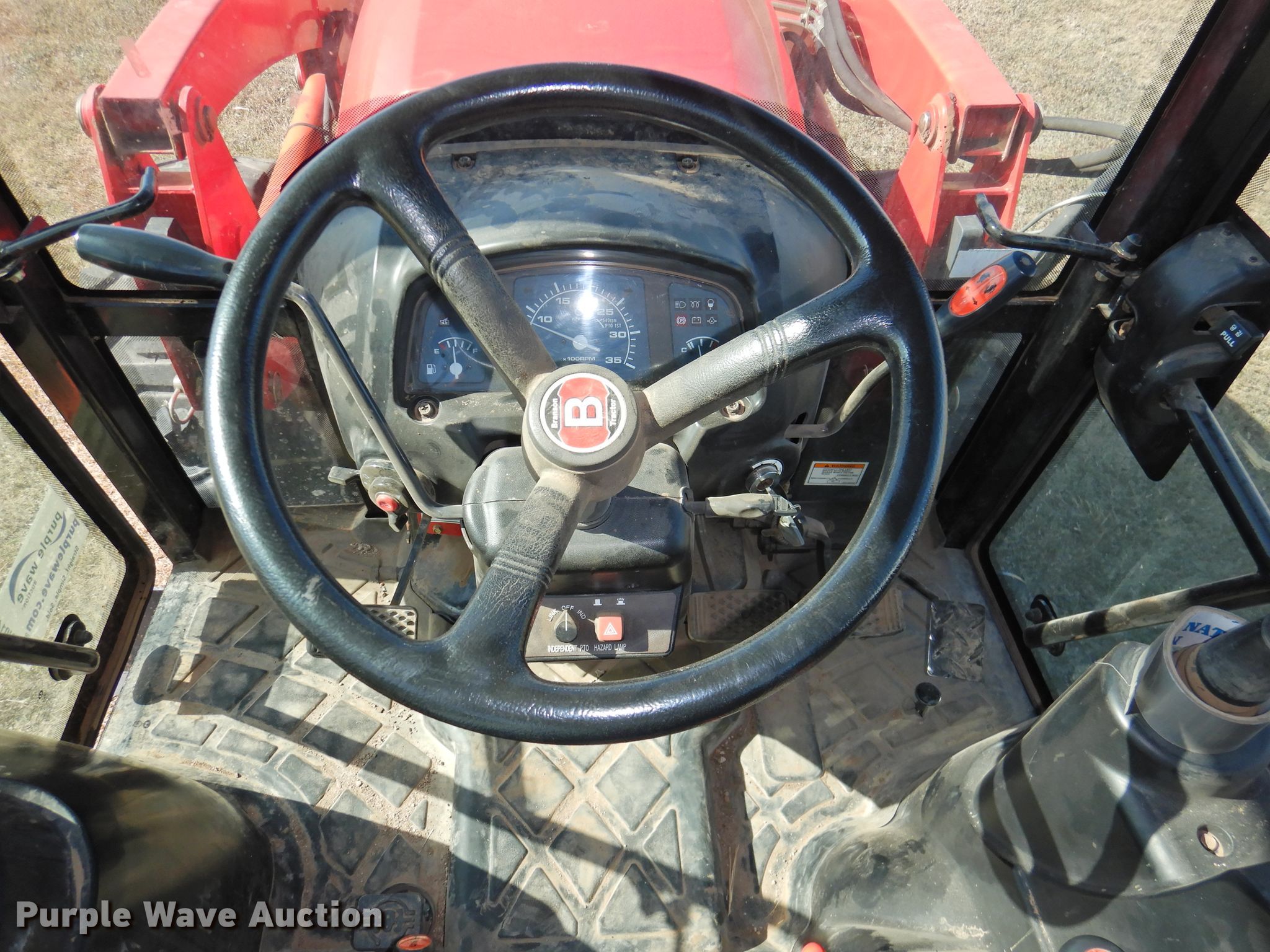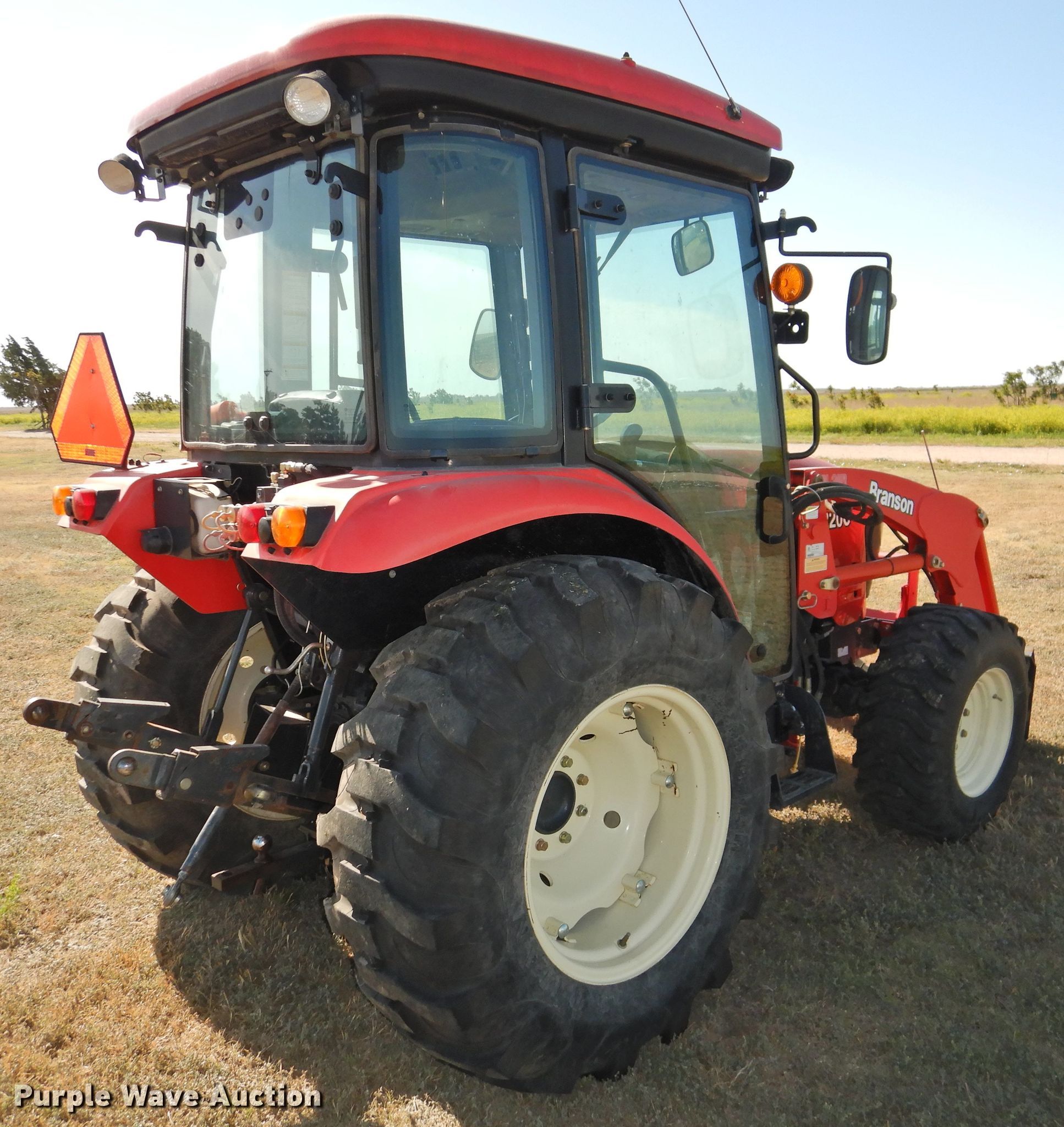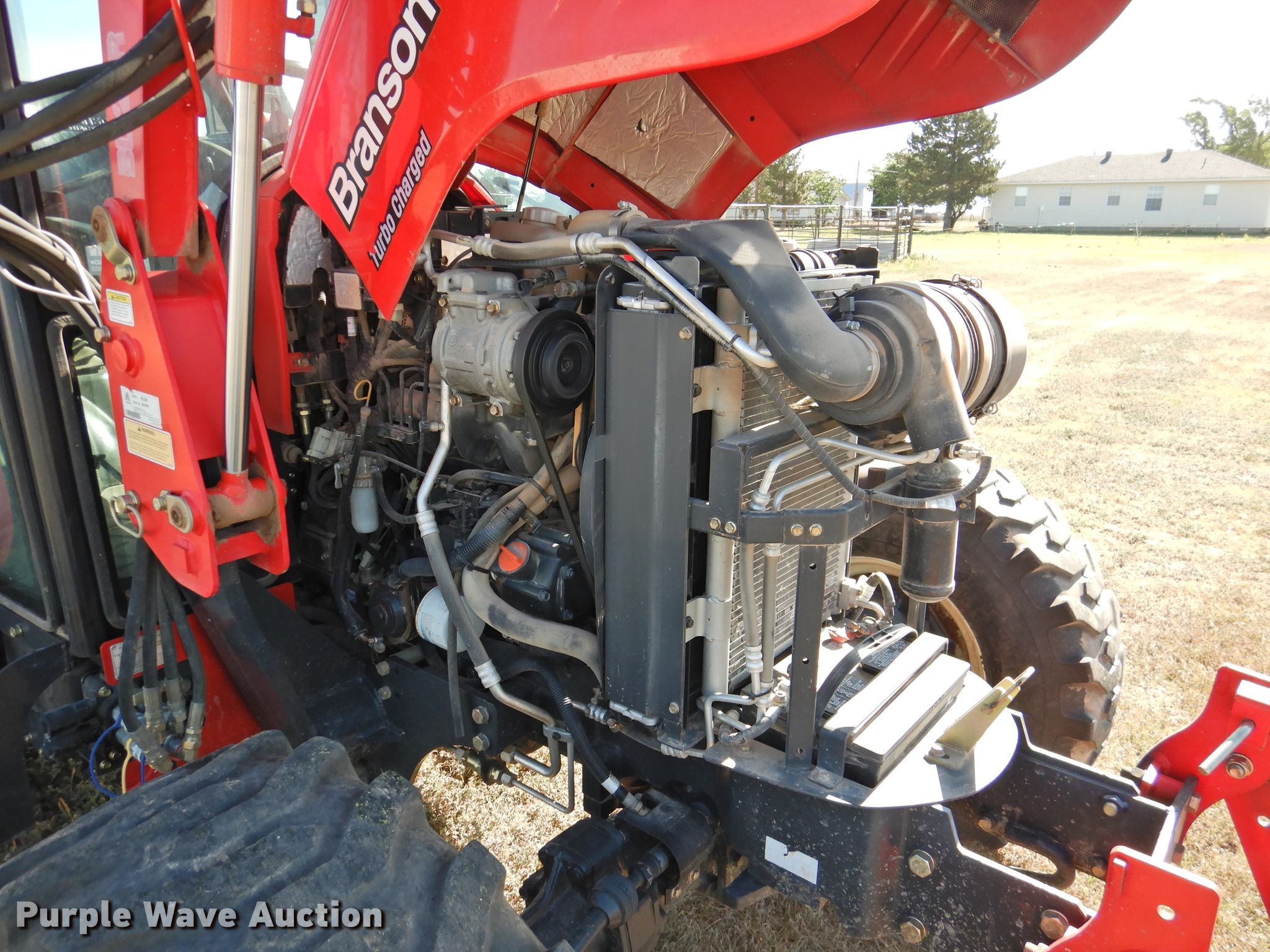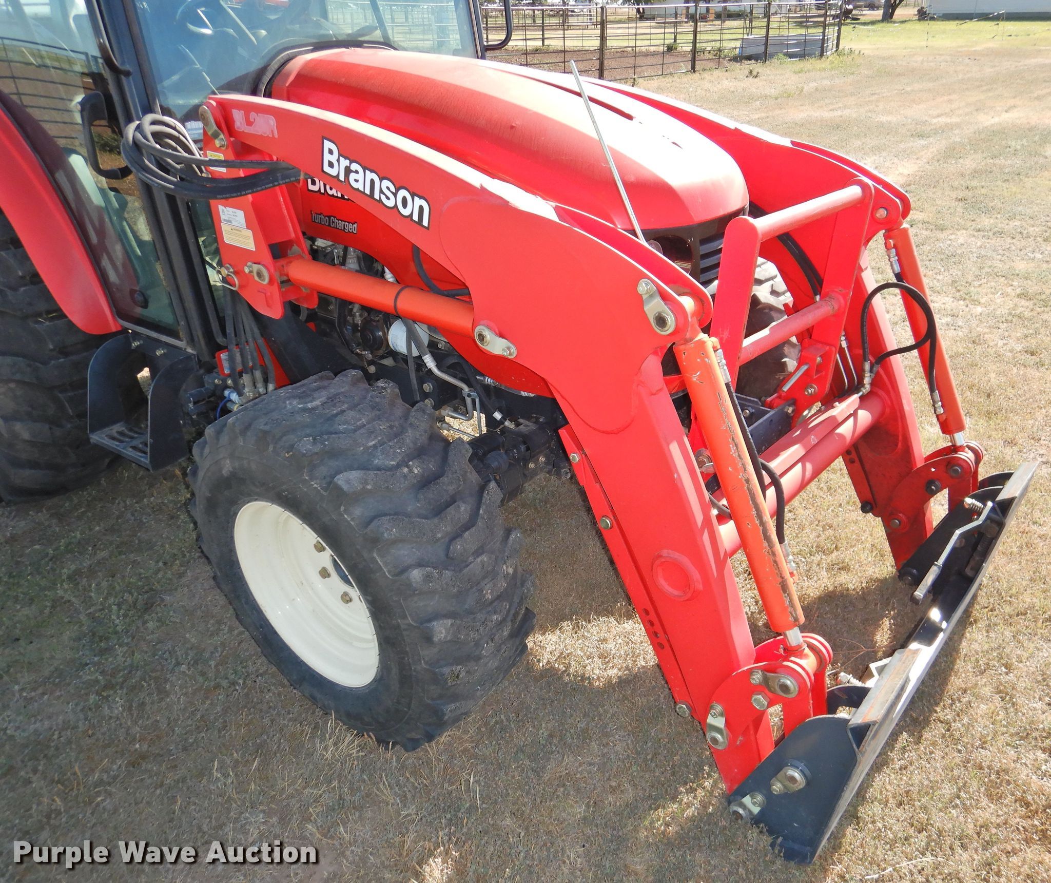 2013 Branson 5220C MFWD tractor. 432 hours on meter, Serial: CDAW00034. Engine Cylinders: 4, Fuel type: Diesel, HP: 55. Transmission Synchro, 12F - 12R, Left-hand reverser, Differential lock. Operators station AC, Heat. Operational PTO: 540, 790, Three point, Seven pin outlet, Hydraulic remote sets Front: 2, Rear: 2, Loader Branson BL25R, Bucket Quick attach, Controls: Joystick.. Tires Front: 10x16.5, Rear: 17.5L-24. Pampa, TX 79065