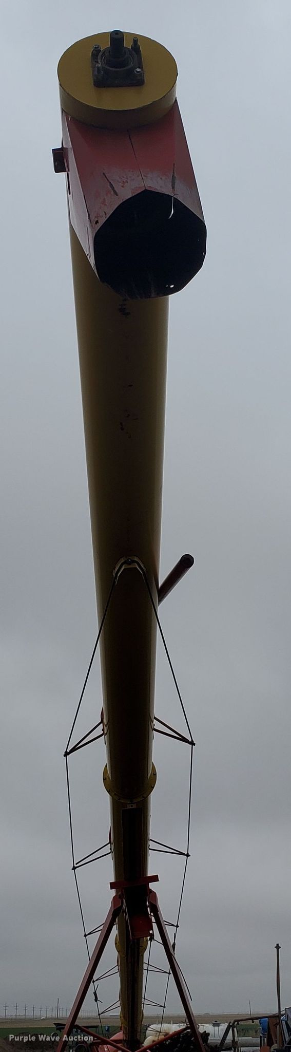 Westfield 130-91 Plus auger. 91'L x 13" diameter, Hydraulic lift, Swing-out hopper, 9.50R15 tires, Auger frame bent, PTO shaft missing, Unknown operating condition. 1311 Main St. Gem, KS 67734