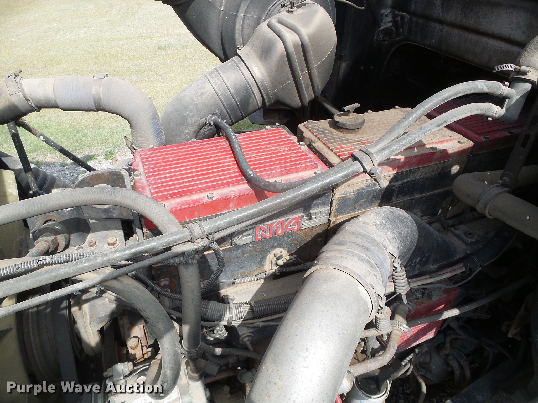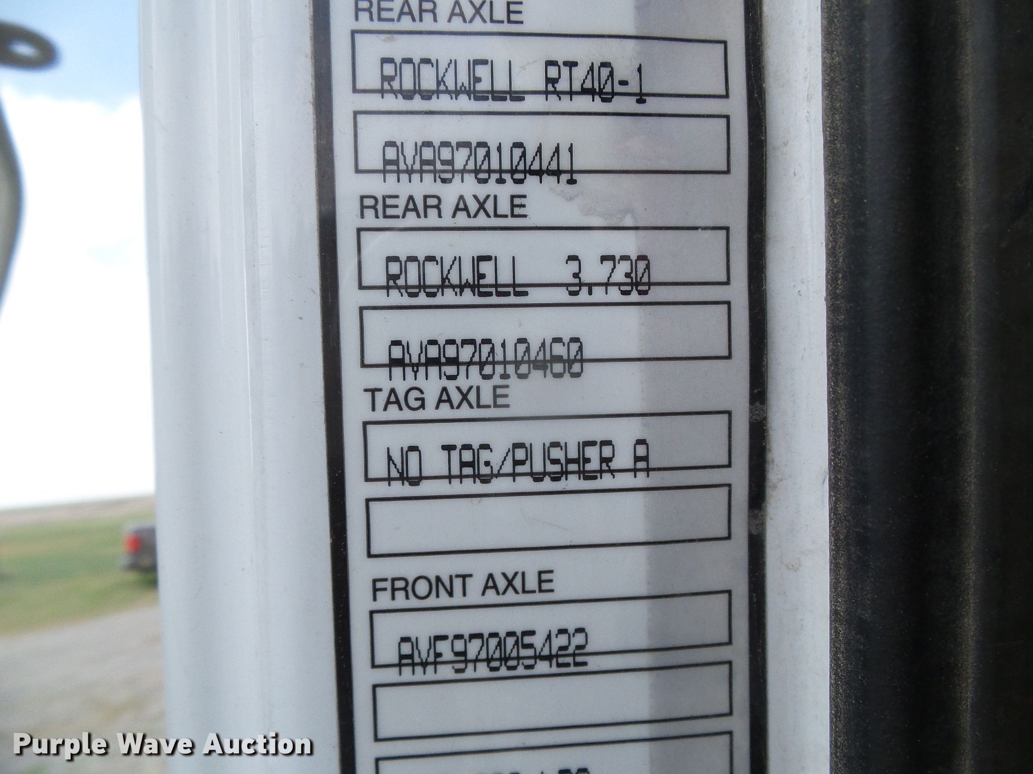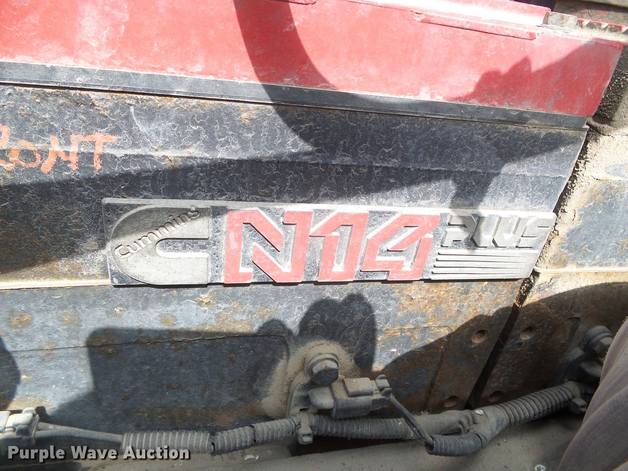 1997 Volvo WIA semi truck. 5,115 miles on odometer, Engine hours: 387. Engine Cummins N14 Plus , Serial: 11838728, Displacement: 14.0L, Cylinders: 6, Fuel type: Diesel, HP: 460, Engine brake. Transmission Rockwell RMX10-165A, Manual, Speed: 10. Chassis Axles: Tandem, Gear ratio: 3:730, Differential lock: Inter-axle, Suspension: Air, Brakes: Air, PTO, Wet kit, GVWR: 50,000 lbs FAWR: 12,000 lbs, IAWR: 19,000 lbs, RAWR: 19,000 lbs, Wheelbase: 240". Interior AC, Heat, Heated mirrors, Cruise control, Air ride cab, Sleeper Sleeper length: 51", Beds: Single. Operational Fifth wheel type: Air operated, Sliding, Fuel tank: Dual. Tires Size: 285/75R24.5. Notes Windshield cracked. Kansas title. 4VGWDEJH0VN740326. Dighton, KS 67839