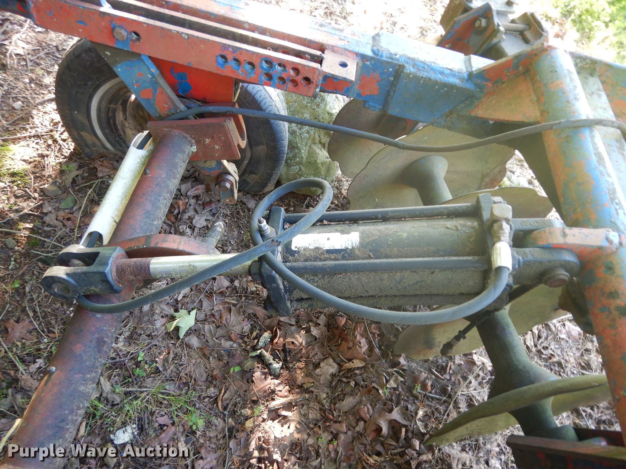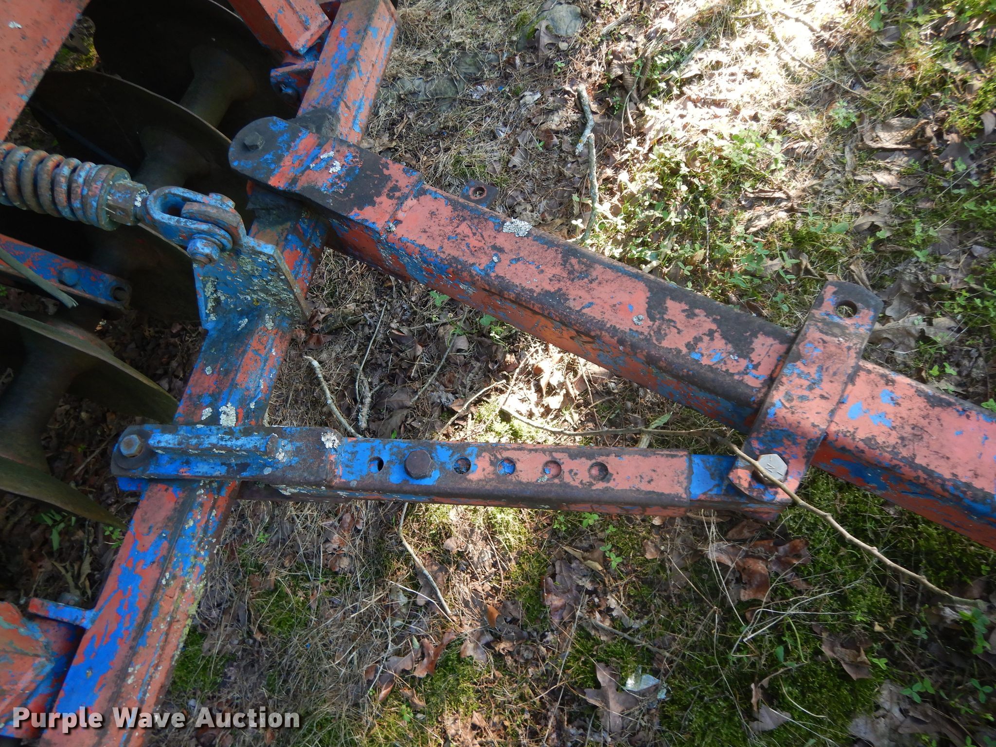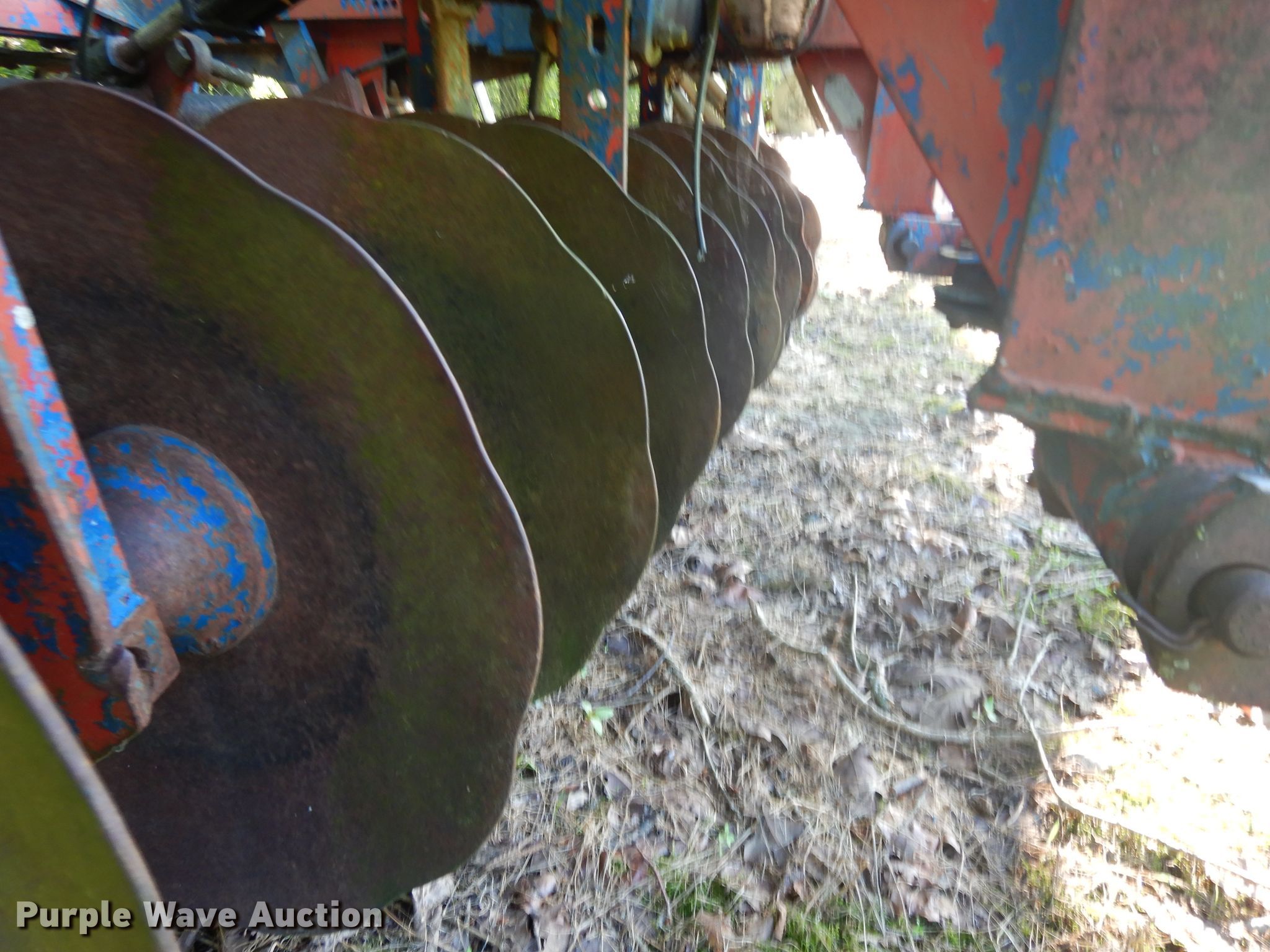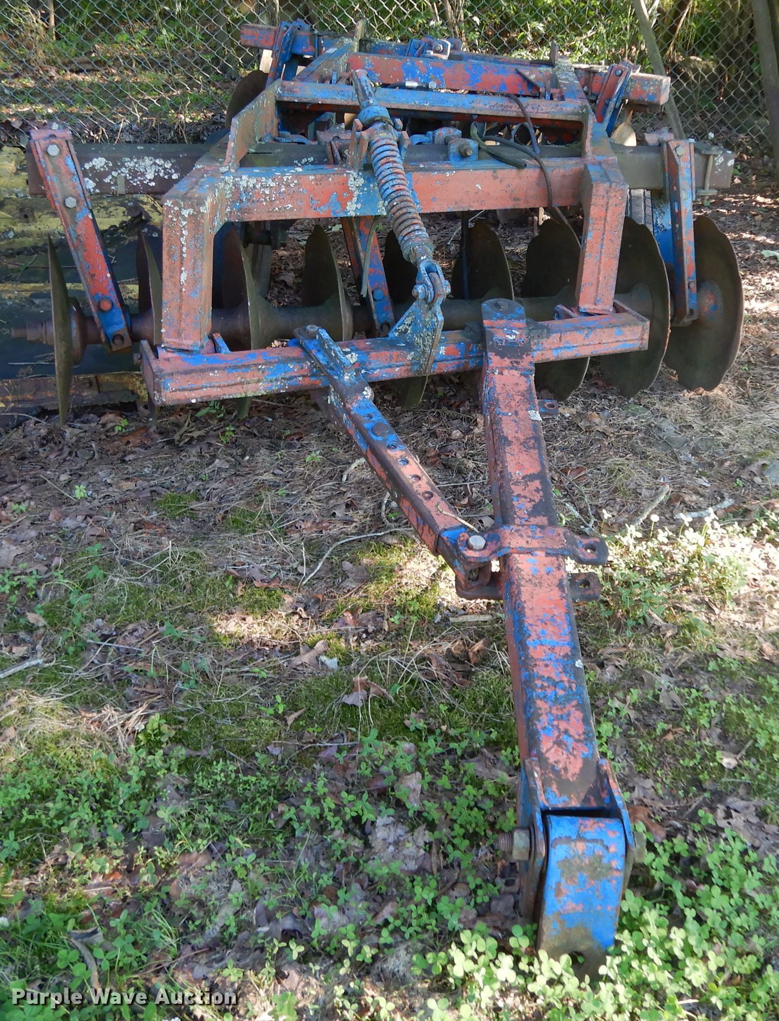 Purple Wave is selling a used Disk in Oklahoma. This item is a Ford 219 off-set disk with the following: 6'W, 14" diameter disks, 10" spacing, Manual leveler, Hydraulic lift, 8.50-14 tires, Serial 001411