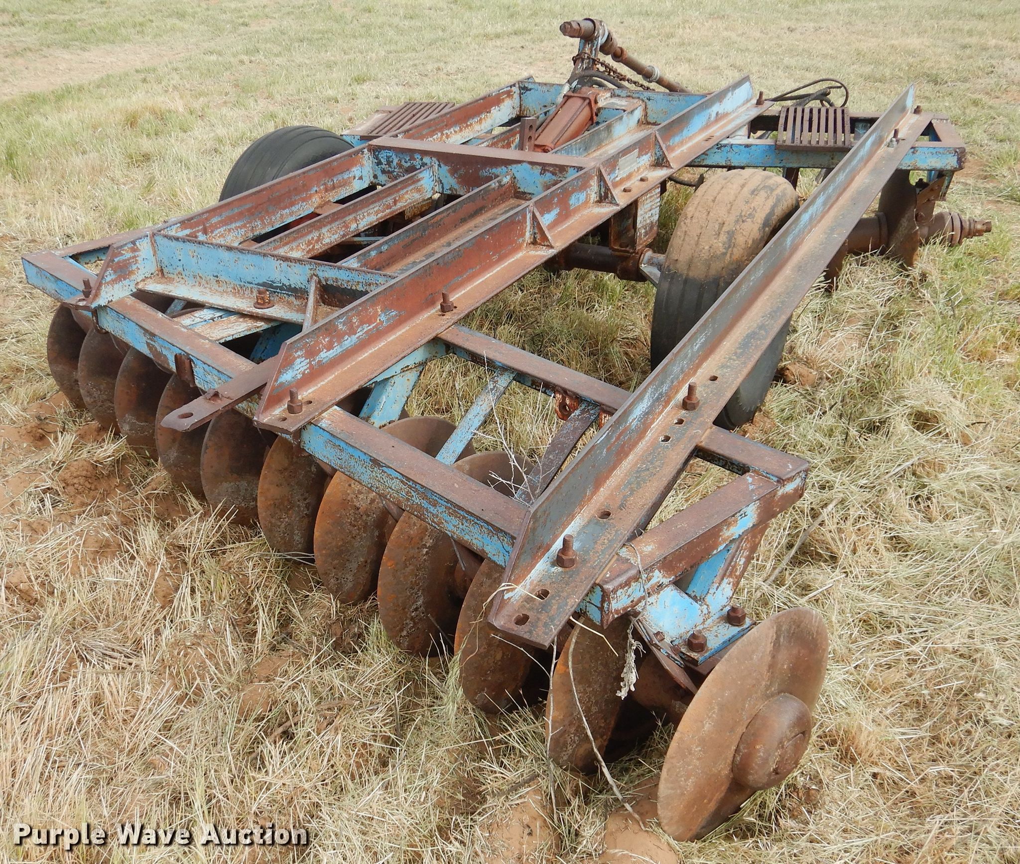Purple Wave is selling a used Disk in Oklahoma. This item is a Ford 219 off-set disk with the following: 88"W, 16" diameter disks, 9" spacing, Hydraulic lift, 9.5L-14 tires, Bearings need to be replaced, Serial 2684