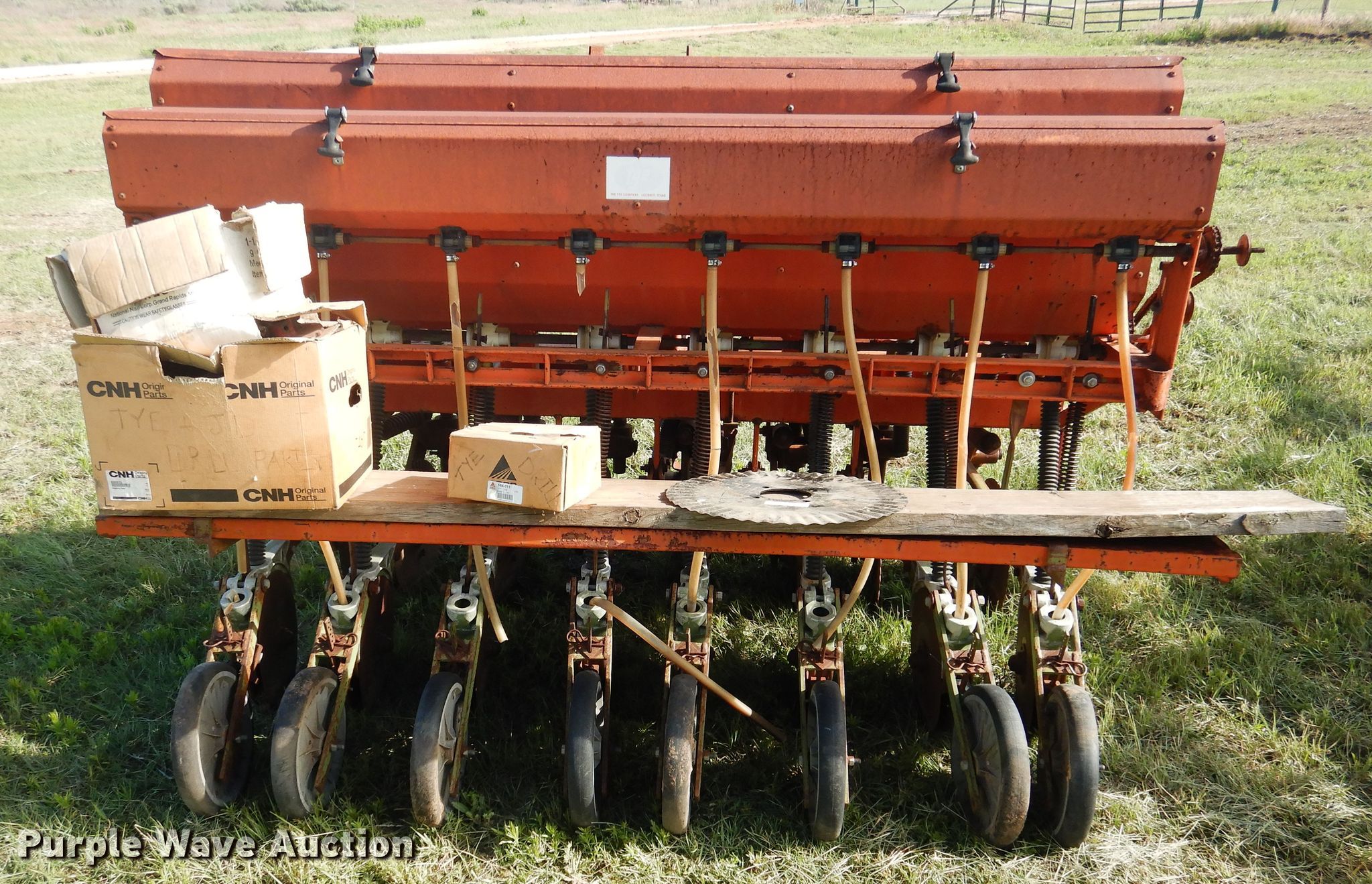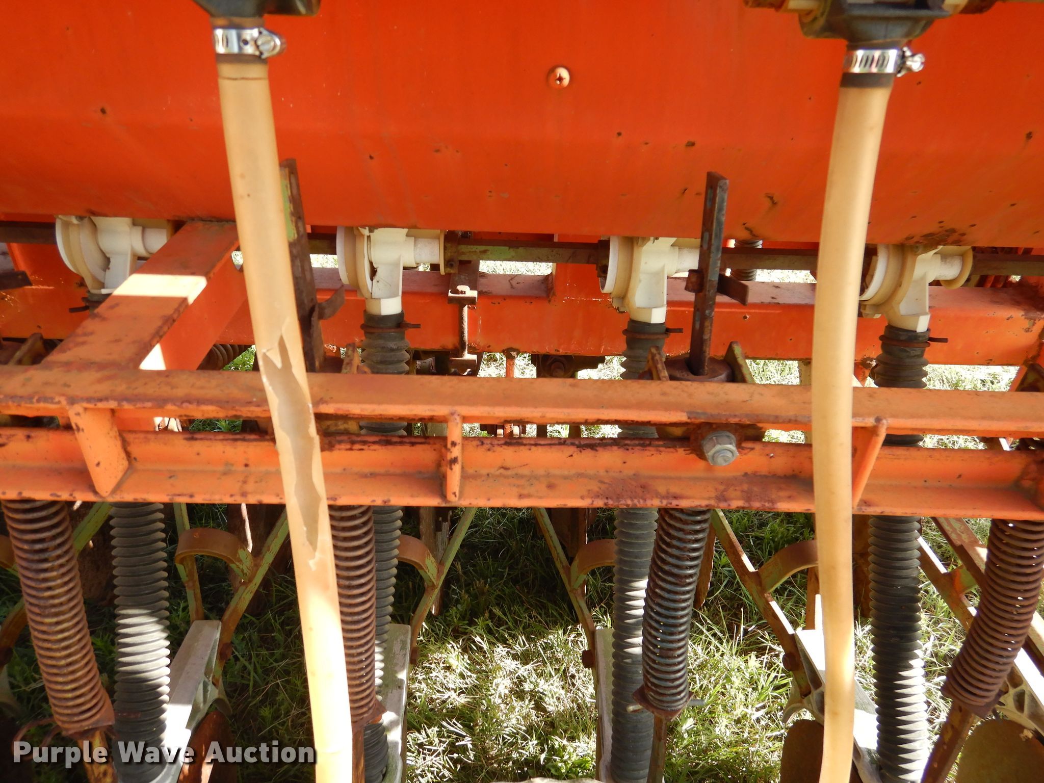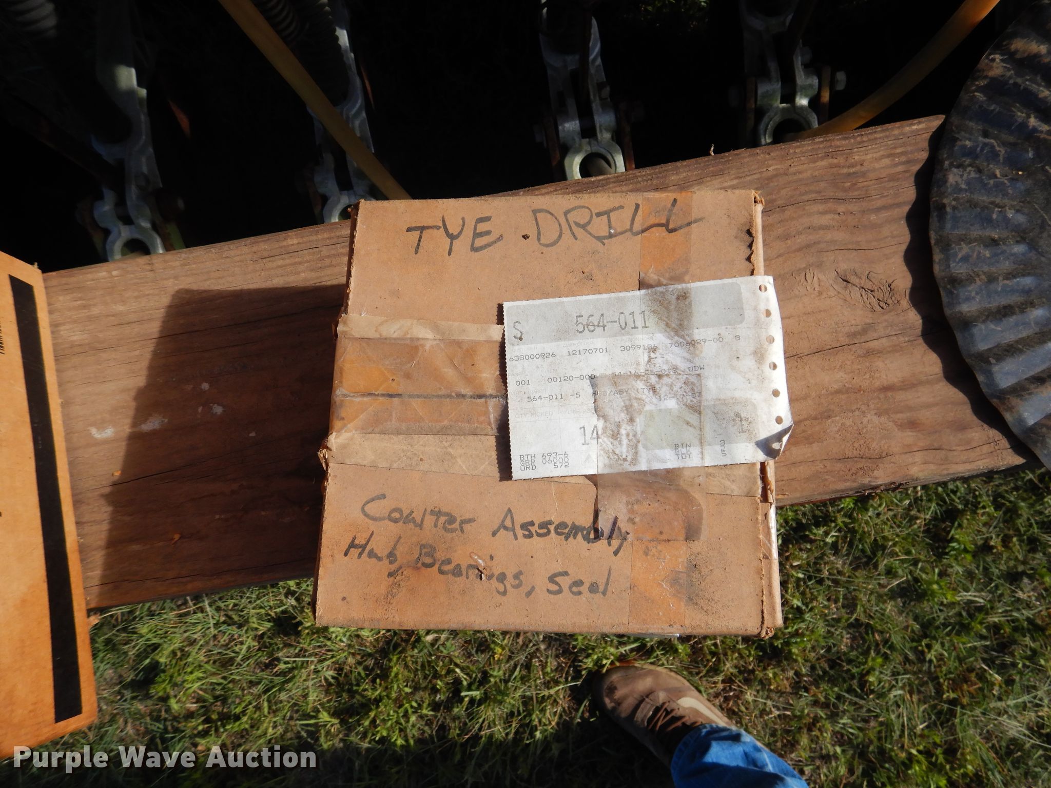Purple Wave is selling a used Grain Drill or Seeder in Oklahoma. This item is a Tye Pasture Pleaser grain drill with the following: 7'W, 8 row units, 11" row spacing, Bulk fill system, Spring down pressure, Single disk openers, Single gauge wheels, Single rubber closing system, Three point, Unknown operating condition