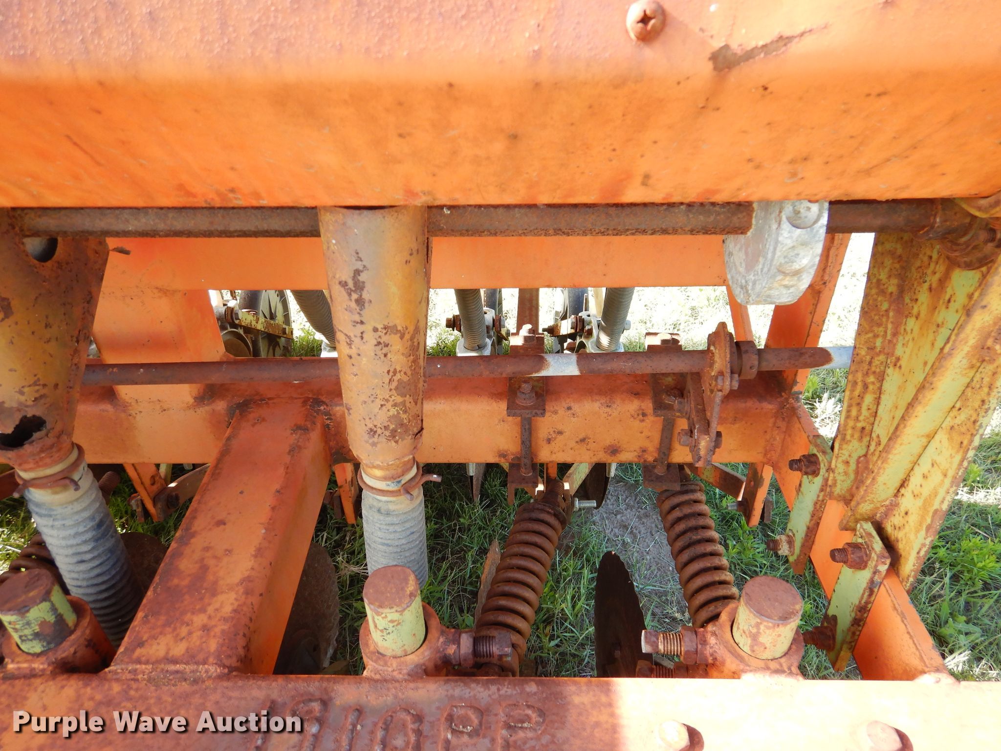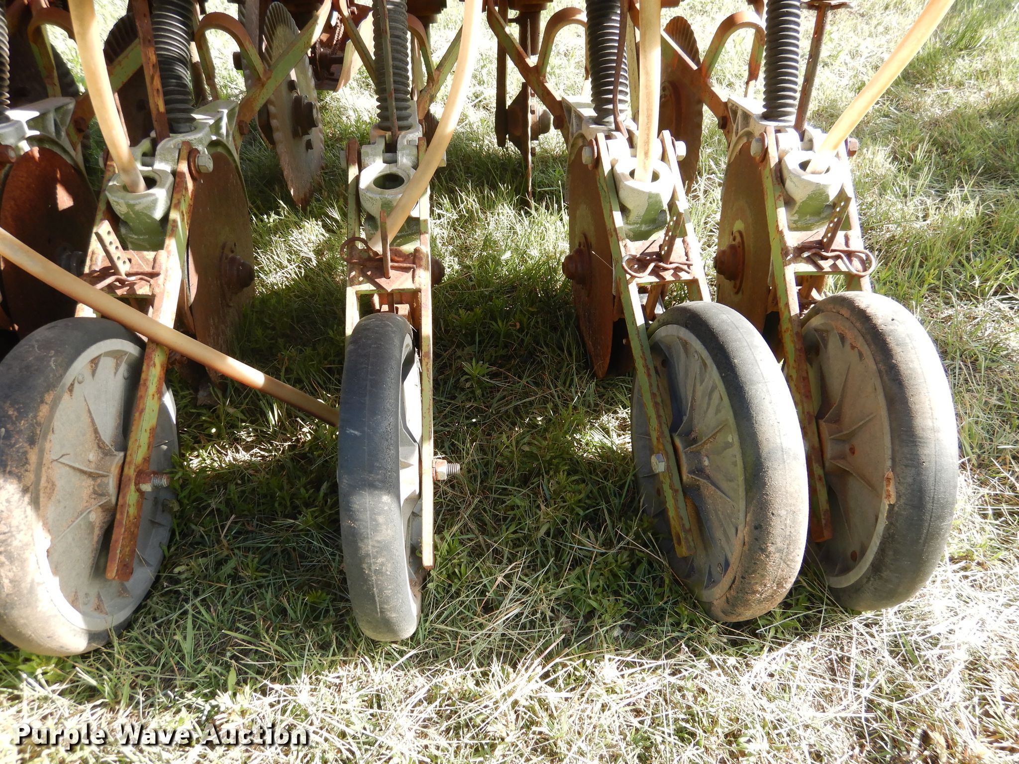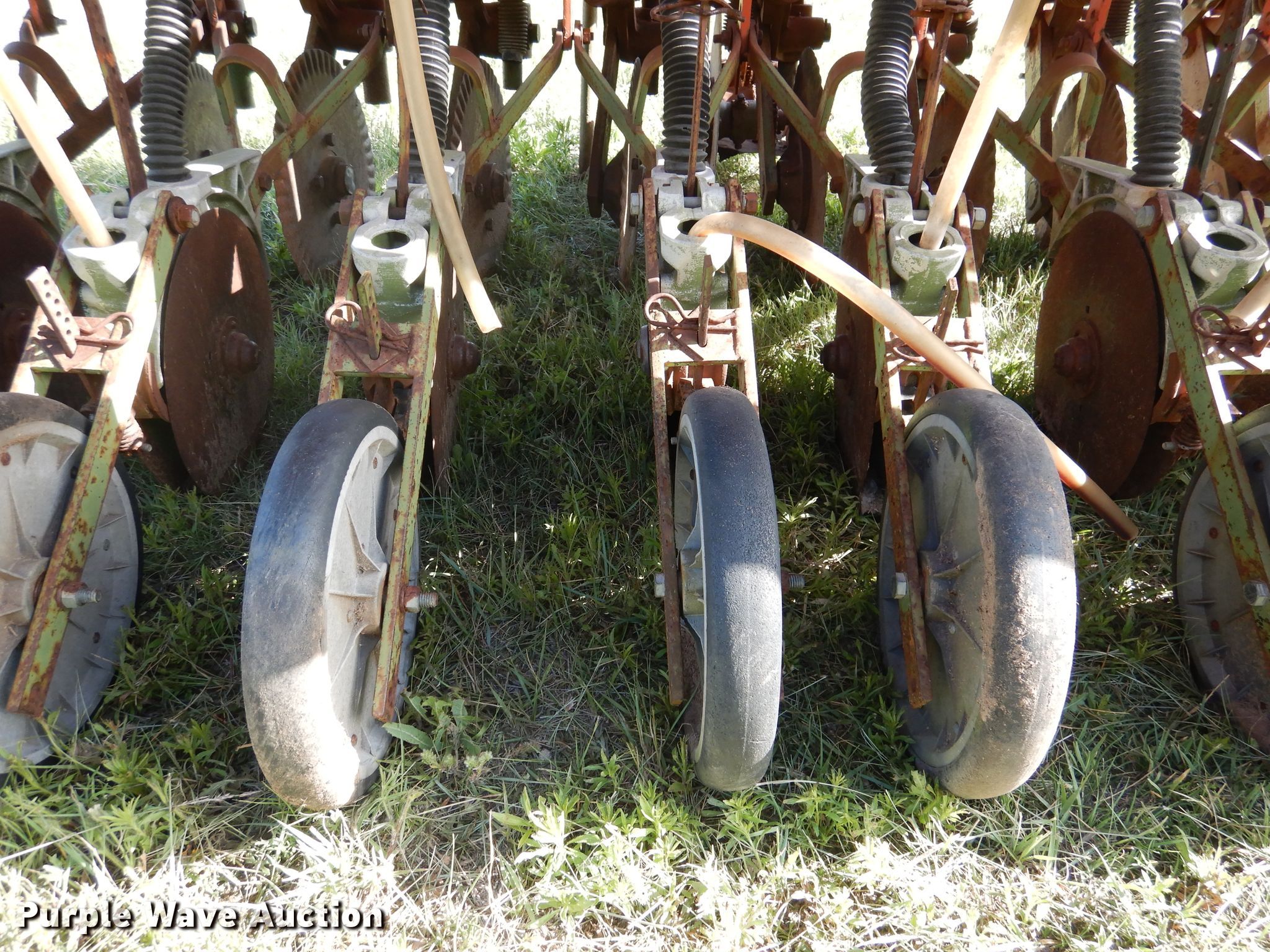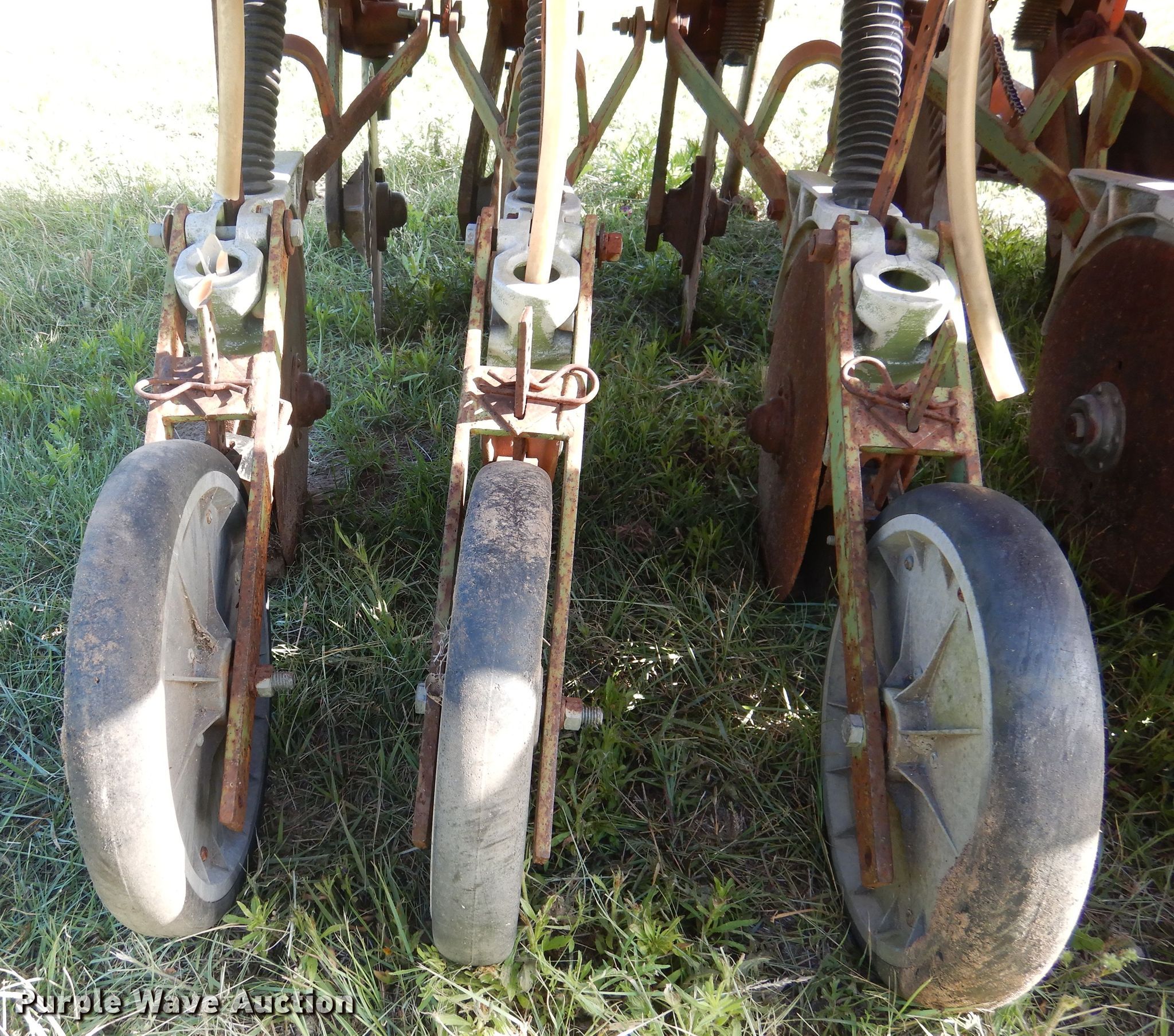 Purple Wave is selling a used Grain Drill or Seeder in Oklahoma. This item is a Tye Pasture Pleaser grain drill with the following: 7'W, 8 row units, 11" row spacing, Bulk fill system, Spring down pressure, Single disk openers, Single gauge wheels, Single rubber closing system, Three point, Unknown operating condition